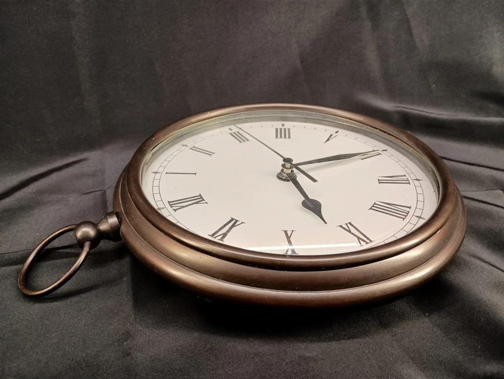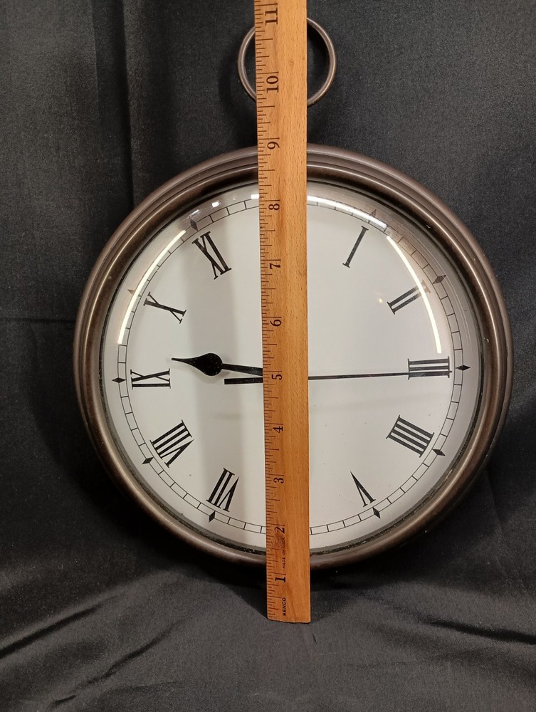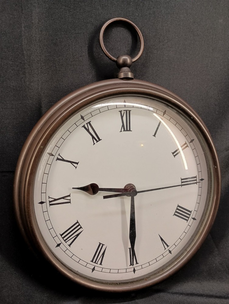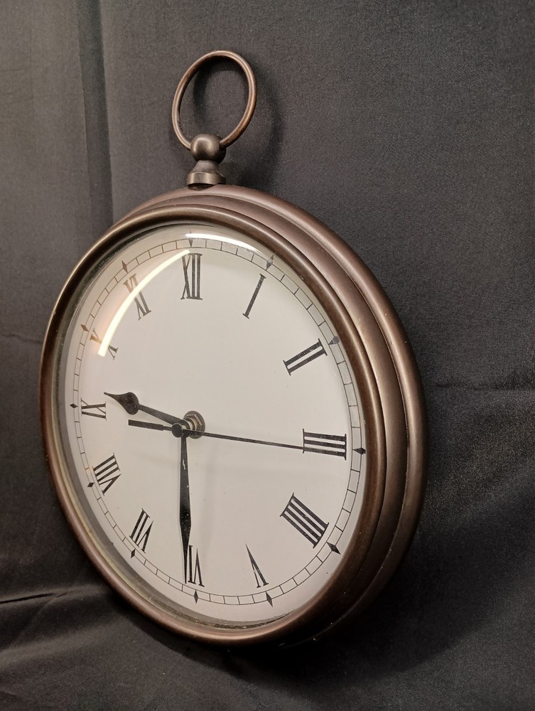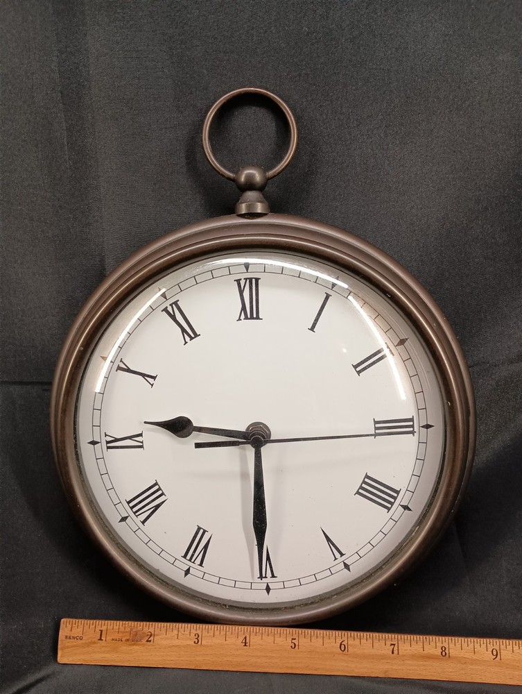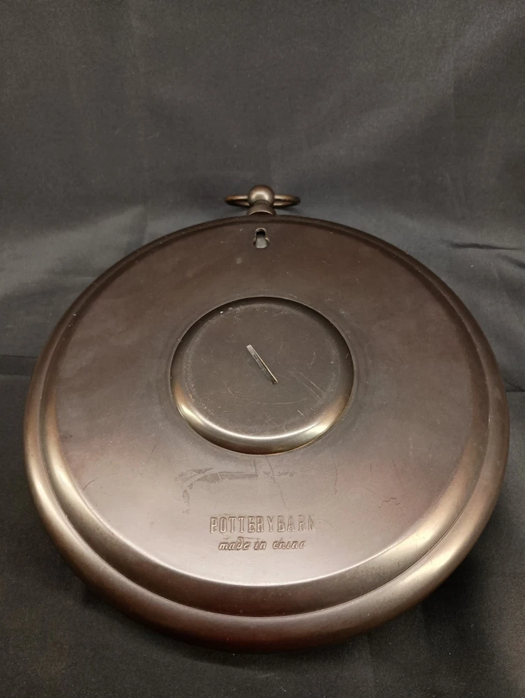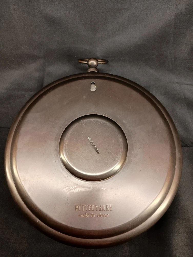This is a vintage Pottery Barn hanging wall clock designed in the style of a pocket watch, measuring 9 inches in diameter. It is a heavy clock that operates using batteries, making it convenient for hanging on the wall without the need for a power outlet. The clock features a classic design that adds a touch of charm to any home décor setting. Perfect for those looking for a unique and stylish timepiece to enhance their living space. Thank you for visiting my listing today and thank you for your interest in this item! My goal is to have a pleasant transaction resulting in a satisfied customer. I hope any transaction between us leaves you with a feeling of confidence knowing you can trust me and the items I offer here. *Most if not all my listings are set to accept offers. Feel free to send an offer and I will be happy to consider it!! *Please contact me with any questions or concerns and I will be happy to help. *Always examine the photos carefully, and if in doubt, email me with any questions you may have. *Please note that condition statements are offered as a guide only. They will always be somewhat subjective and reflect our opinion, which may not necessarily agree with someone else's opinion. PLEASE READ: I aim to please and I want my buyers to have a positive transaction with me. If you have questions, concerns, or special requests related to any of my items I hope you will contact me so we can work them out to your satisfaction. I sell my items to give you a great item at a decent price while making a little profit at the same time. If you feel the item you are interested in is too pricey do not hesitate to send me a fair offer and I will consider it. My goal is to satisfy your needs and mine so both parties can benefit. SHIPPING: If you prefer a different shipping method or company please contact me and I will do all I can to make that happen. If you have concerns or requests about the packaging of your item contact me and I will do all I can to accommodate them. Shipping costs are based on location in each state or country, the costs always differ. After I have received your payment I will ship your item out within 3 business days or less excluding weekends and holidays. BEFORE PURCHASING & BIDDING: **Please see all the pictures. I do not have great photography skills but I try to get the most accurate photos I can. If you are unsure about something you see in a photo contact me so I can do what I am able to answer your concern about the item. **I cannot stress enough that if you have any questions or concerns please contact me before purchasing and bidding. Communication can solve so much. **As a customer myself, I understand the meaning of customer satisfaction and my goal is to have nothing but satisfied customers. If you are not unsatisfied with your purchase I ask that you please contact me so I can take care of your issue. My goal is for you to be 100% satisfied. INTERNATIONAL BUYERS WELCOMED - PLEASE NOTE: I welcome International buyers! Please be aware that any custom/duties/taxes that the parcel might incur once it is out of the USA are the responsibility of the buyer. Please check with your country's customs office to determine what these additional costs will be prior to bidding or buying. Please refer to the eBay Site Map for more information if needed.