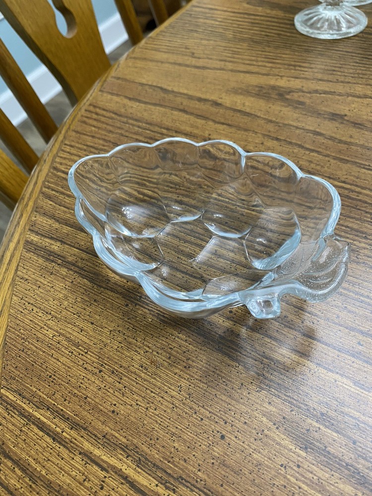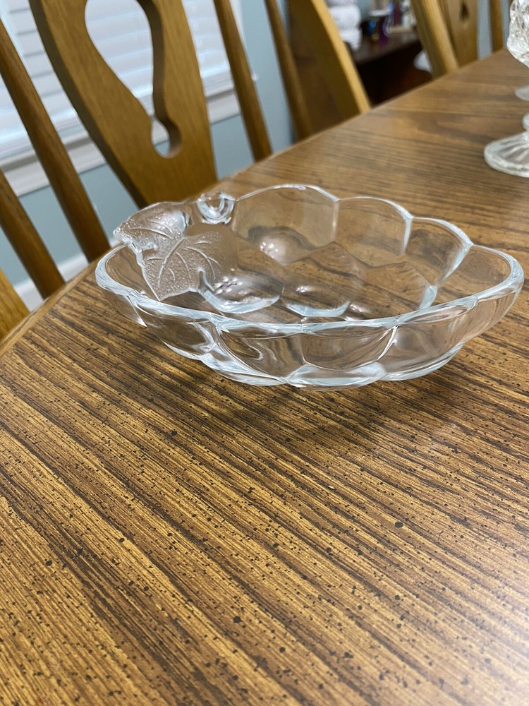 This vintage Studio Nova dessert bowl is a charming addition to any kitchen or dining room. The clear glass and decorative harvest pattern make it a perfect choice for serving fruit or other desserts. It is a small bowl, but its size is just right for a single serving. The brand is known for its quality pottery and this dessert bowl is no exception. Whether you are a collector or just looking for a unique piece to add to your tableware collection, this vintage bowl is a great choice.