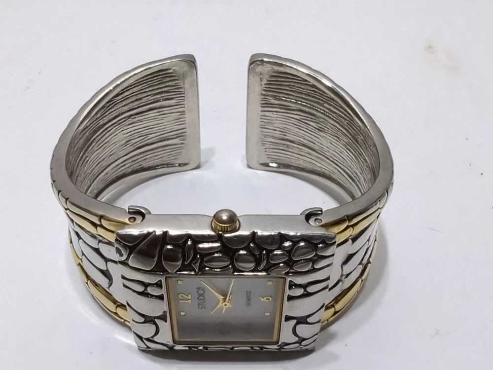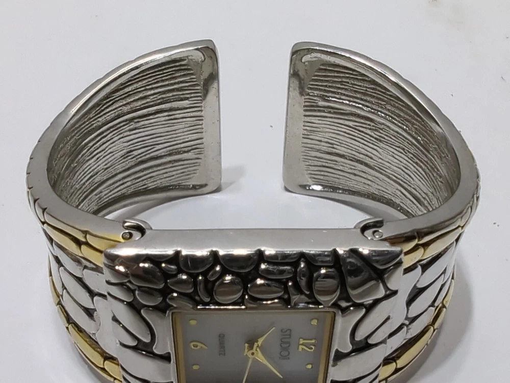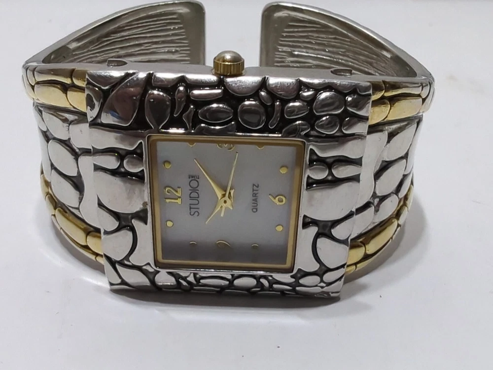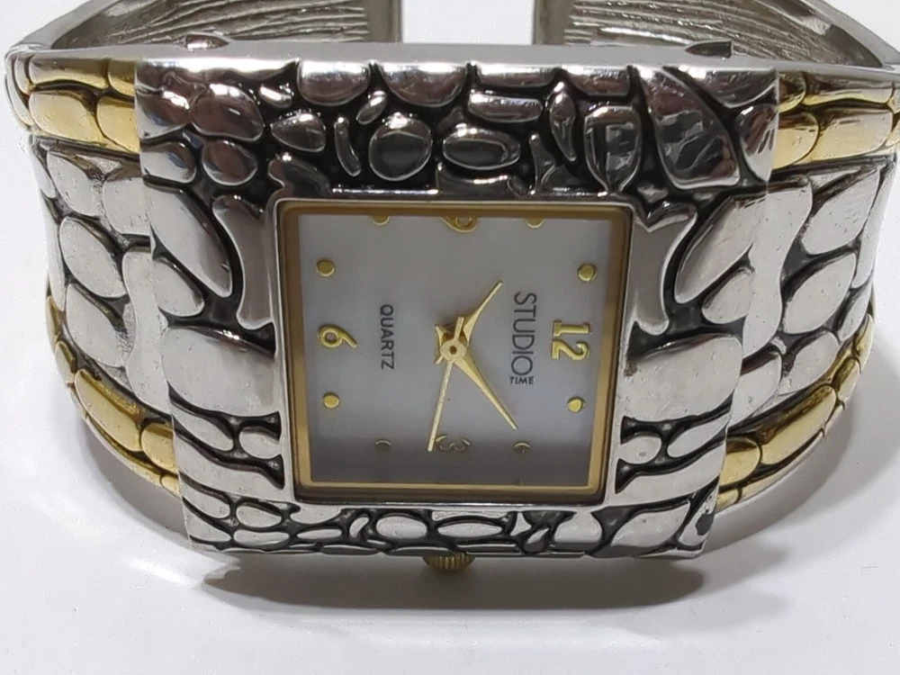 Add a touch of elegance to your outfit with this stunning ✨VINTAGE✨ Studio Time wristwatch. The bracelet features a beautiful mother of pearl design, with Arabic numerals and a white dial color. The watch is powered by a quartz movement and has a snap caseback. This dress/formal, casual, and classic watch is not water-resistant and comes with a 25mm case size. The bracelet is made of metal and features a gold and silver color. This watch is a perfect addition to your collection. ** THIS WATCH IS UNTESTED! ** → I have many other watches up for auction now and going up for auction over the next couple days! ← ♥ → ATTENTION: Be sure to check out our STOREWIDE SALE - Nearly Everything is on sale for 15% - 65% OFF! We need to clear room for new merchandise so feel free to MAKE A REASONABLE OFFER or BUY IT NOW because this sale WON'T LAST LONG! Once the sale is over everything will get taken down and sold in my brick and mortar Multi-vendor co-op so it's now or never! ←♥ ✦ Please examine pictures closely to see EXACTLY what you will be receiving... Bar Codes, Lot Numbers and Expiration Dates (If applicable) are all shown. As well as any DEFECTS, MARKS, SCUFFS or any other imperfections for that matter. The item in the pictures is the EXACT item you will be receiving... In all it's glory! ✦ SHIPPING: I normally ship orders within 48 hours (Monday-Friday) via USPS, UPS or Fedex. Please notify me upon purchasing if you would prefer one of these carriers over the others. I will combine shipping on all orders. Win multiple auctions and pay ONE LOW PRICE for shipping your items! RETURNS: The return policy here at DLL is the best you will ever find, anywhere - Bar None. Returns are accepted for 60 days, no questions asked! All you have to do is pay the return shipping. ✓ Are you in search of more items like this vintage watch? Well, we have more! ADD OUR EBAY SELLER PAGE NOW: ✦ 10+ items are being listed EVERYDAY! ✦ NEXT DAY SHIPPING & 60 DAY RETURNS! ✦ We specialize in ANTIQUES and VINTAGE items! ✦ Auctions start at $9.90 or LESS with NO RESERVE! LOT: D-RSL (173)
