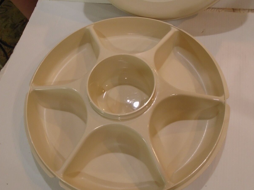 TUPPERWARE 6 DIVIDED VEGETABLE FRUIT CHIP AND DIP SERVING TRAY WITH LID no cracks or stains