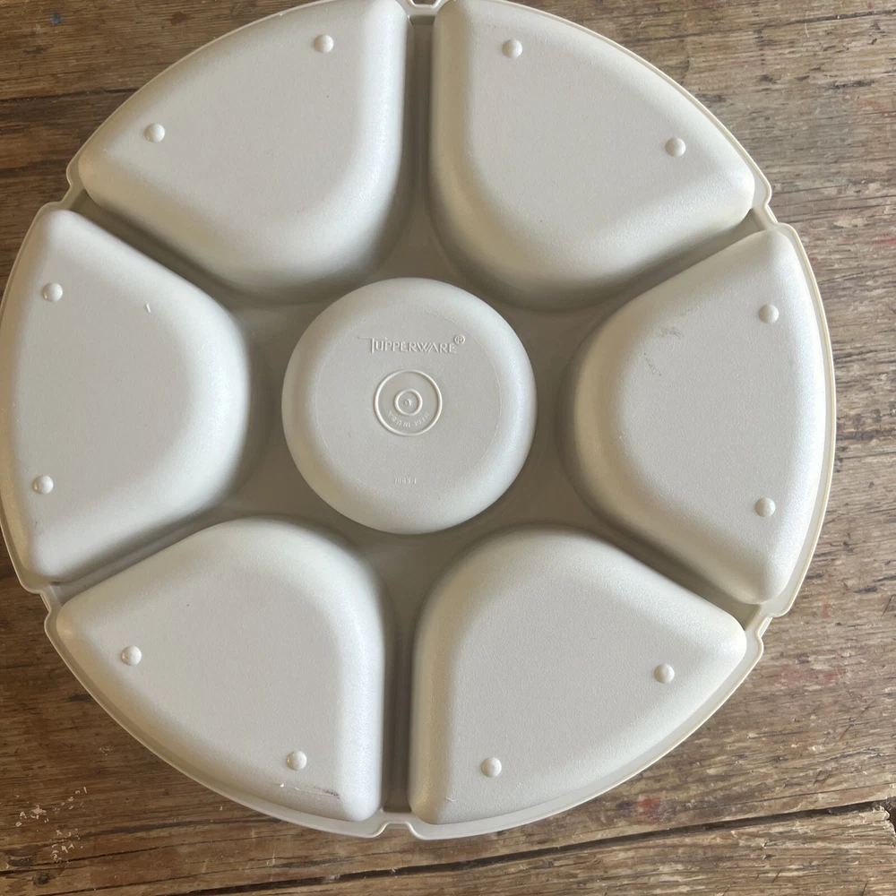 VINTAGE TUPPERWARE 6 Section Divided CHIP AND DIP SERVING TRAY WITH LID & Bowl. Excellent condition in off white color- With cover and insert bowl- Seals perfectly...