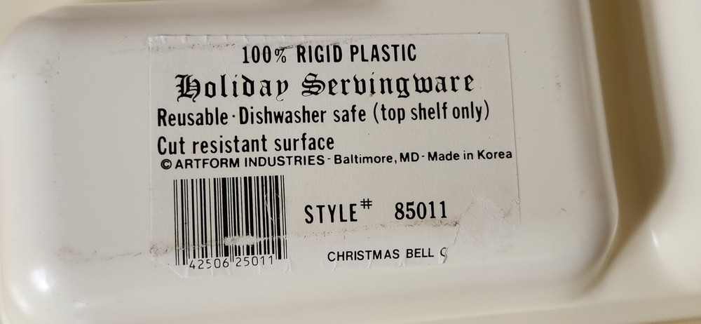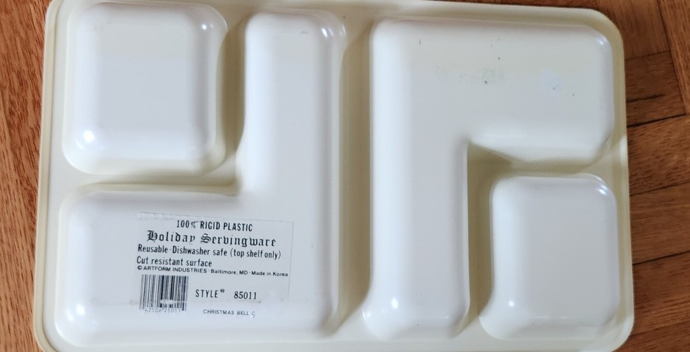 Vtg Art Form #85011 Divided Christmas Tree Crackers, Cheese, Appetizer Tray Excellent condition! Great tray for your Holiday Festivities, whether it's cheese & crackers for the work party, or veggies and dip. Or perhaps fudge & cookies?? Versatile and fun with that old fashioned retro flair. Also perfect for gifting cookies and treats to your friends. 16" long by 10" wide. No cracks, sturdy. Possible scuffing or yellowing spots, on bottom from sitting in storage so long. Overall, very nice. Smokefree home. I will ship the same day that payment is received as long as it is early enough in the day otherwise it will be the following business day. I am always willing to consider reasonable offers.