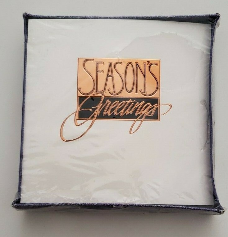 ~~~~~~~~~~OUTSIDE: "SEASON'S GREETINGS"~~~~~INSIDE:"..AND GOOD WISHES FOR THE NEW YEAR"~~~~~~~~~~~~~~~~~~~ VINTAGE 1990's but BRAND NEW~FACTORY SEALED~SUPER RARE~STUDIO SQUARE~COPPER GILTED~3-D ETCHED~HI-QUALITY UNIQUE SIZE (5 1/2" X 5 1/2") and DESIGN~SATIN FINISH~16 CHRISTMAS CARDS w/ ENVELOPES~THAT ORIGINALLY COST OVER $16.00 w/TAX~PLUS THESE HI-QUALITY XMAS CARDS WERE MADE IN OUR BEAUTIFUL COUNTRY THE U.S.A. (CLEVELAND, OHIO)!! VERY COOOL, VERY UNIQUE and VERY RARE and FREE SHIPPING!! ALSO I COMBINE SHIPPING TO SAVE YOU EVEN MORE $MONEY$ ON ALL MY LISTINGS!! SO WHEN YOU GET A CHANCE~CHECK-OUT ALL MY LISTINGS~IT NEVER HURTS TO TAKE A LOOK!!