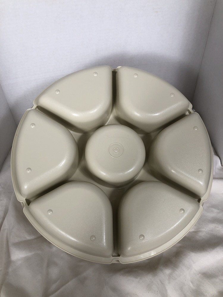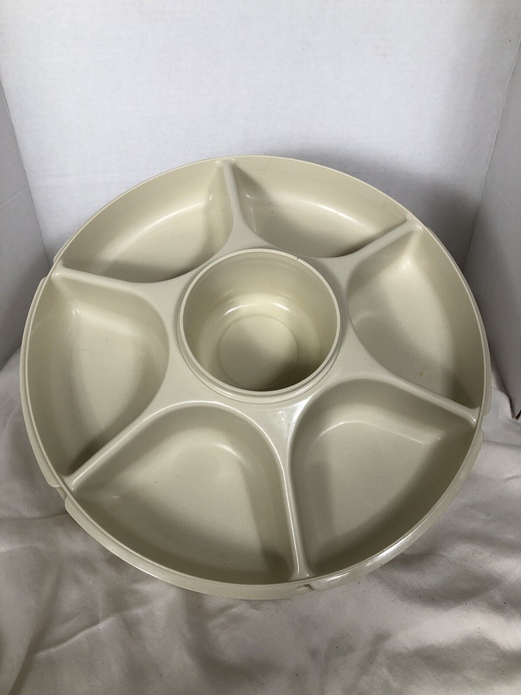 VTG 3Pc Tupperware Divided Veggie Fruit Party Tray Dip Bowl #1665 1666 1667. NO LID FOR DIP BOWL May have scratches and scuffs No damage, chips or cracks 1