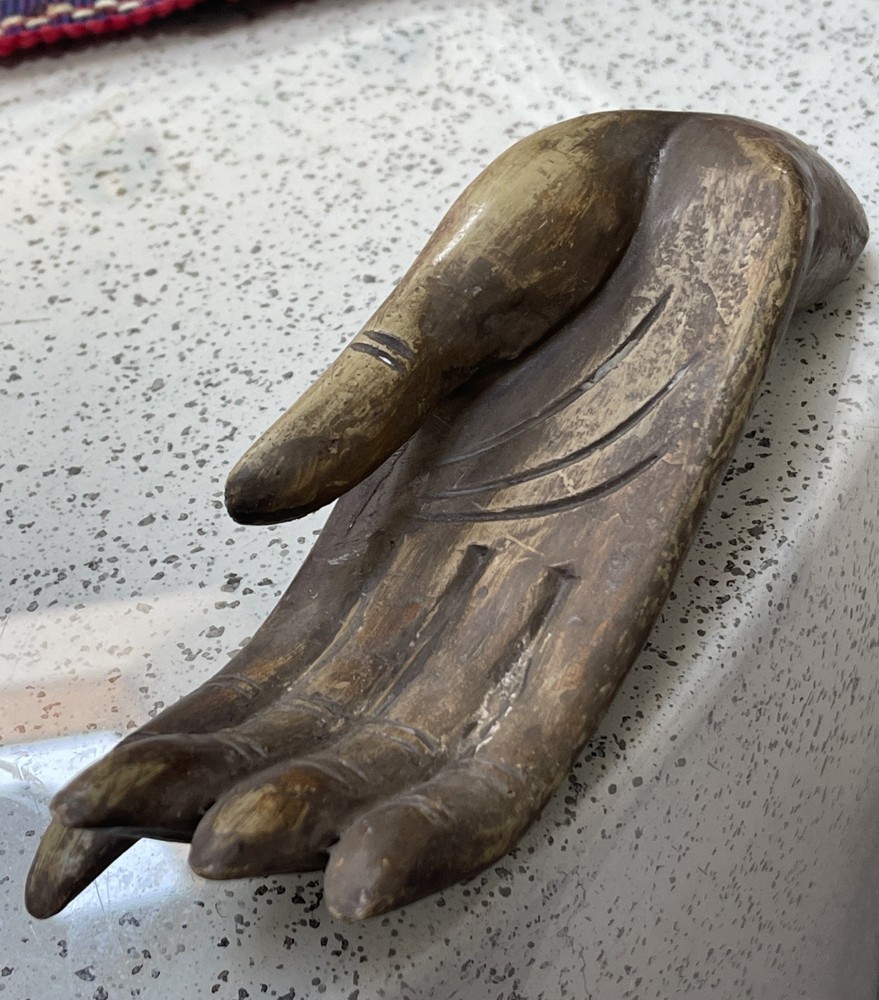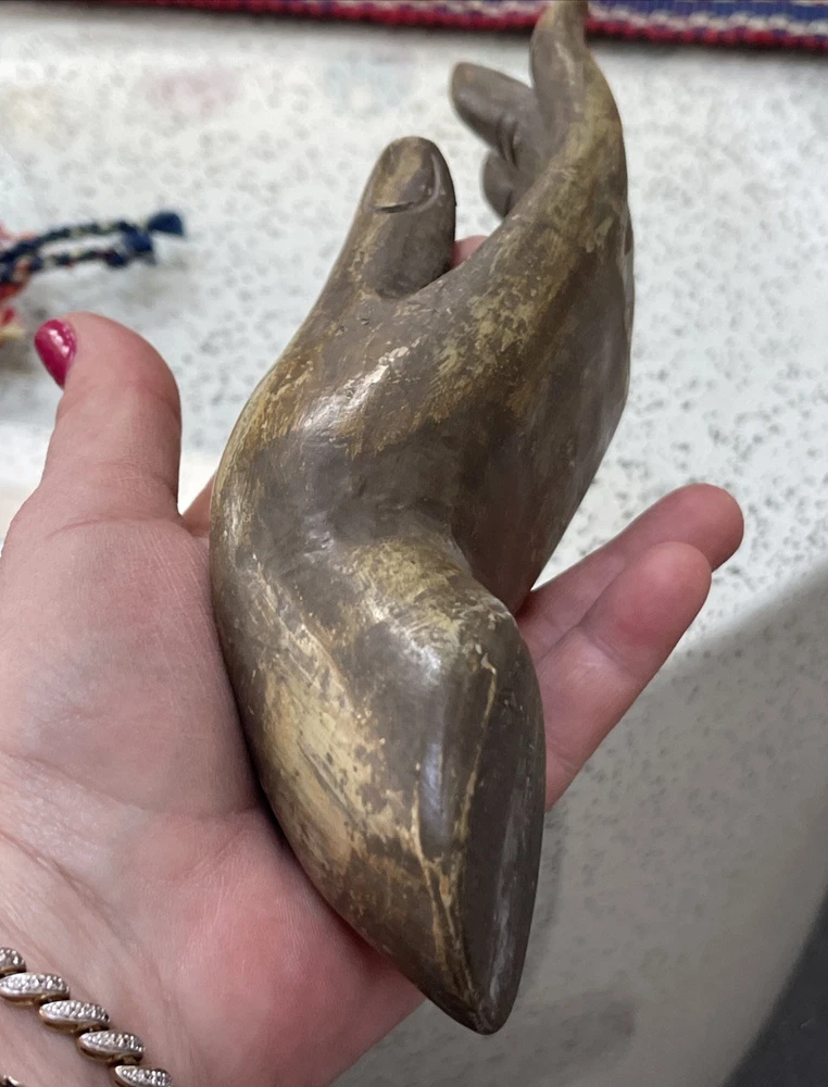 AWESOME VTG Antique Style Stoneware Hand Shaped Trinket Jewelry Ring Dish Art Studio Co. Very good condition and exactly as pictured from my smoke free very clean home. MEASUREMENTS: length 8.75”, width 3”, weight 1 lbs. THANK YOU SO MUCH FOR VISITING MY STORE!