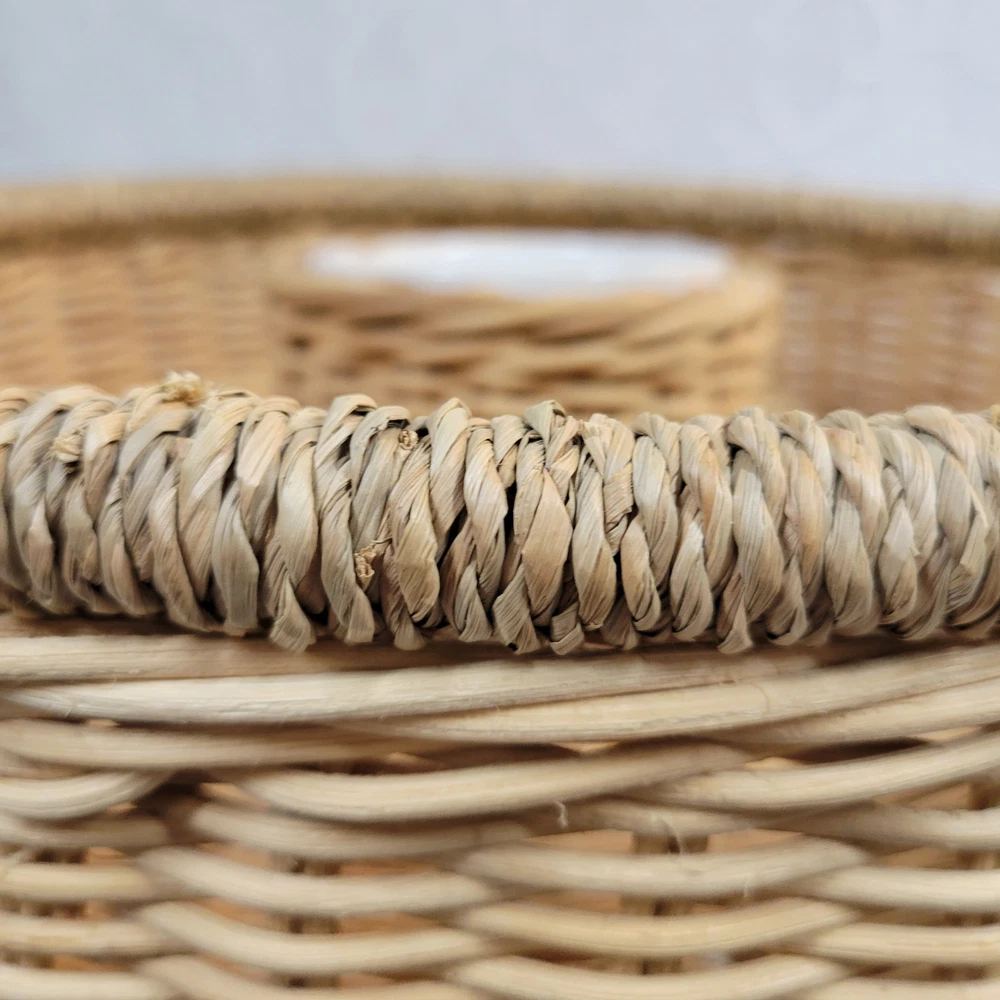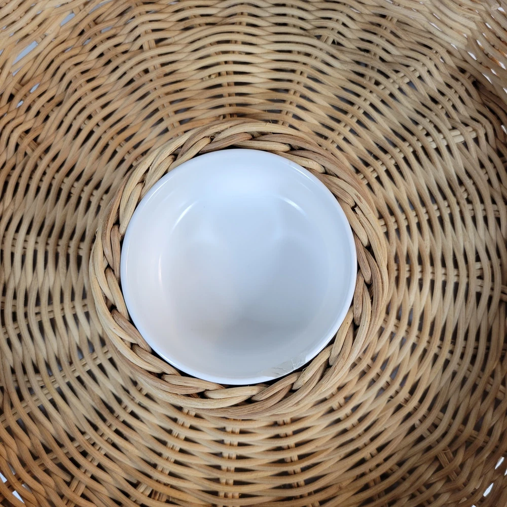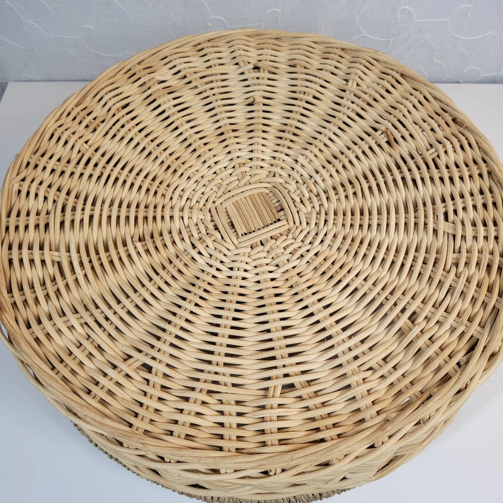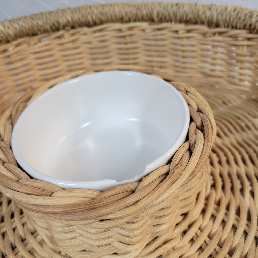 This vintage rattan chip and dip basket is a stylish and functional addition to any gathering! The woven wicker platter is beautifully crafted with a deep moat for dips and a matching ramekin. Its boho-chic design adds rustic charm, perfect for chips, veggies, or even decorative display. The sturdy construction and excellent condition make it a great find—ideal for entertaining or as a unique serving piece. Love the natural tan color and spacious 15.5" size! Ships fast too. Highly recommend!