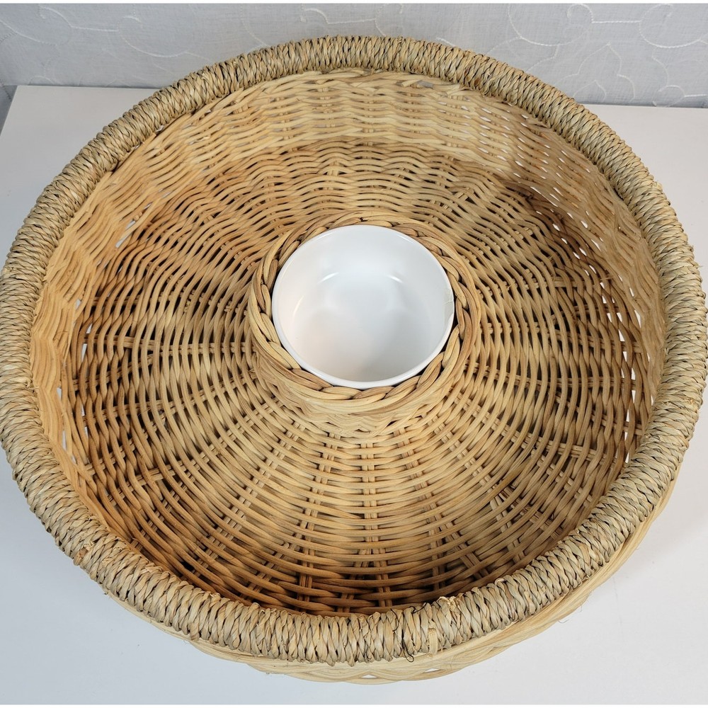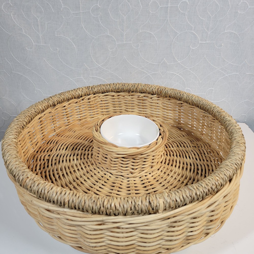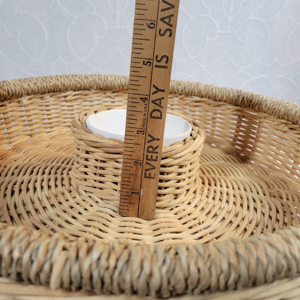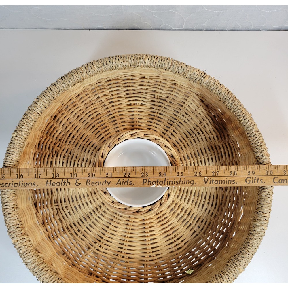 <![CDATA[<div>VTG Rattan Wickeer Chip and Dip Basket 15.5" Brown Woven Platter 4" Ramakin Boho Product Description: -Measurements: 15.5" diameter 4" side height 5" moat x 4" ramakin diameter -Brand: Vintage -Condition: Excellent -Native -Bohemian -Rattan -Wooden Platter -Color: Tan -Materials/Content: Wood, Rattan Thanks for shopping with me today! I ship on orders received by 3pm each day. Most items are lovingly used and therefore show appropriate signs of wear. I do my best to make note of any irregularities with *. Please feel free to inquire