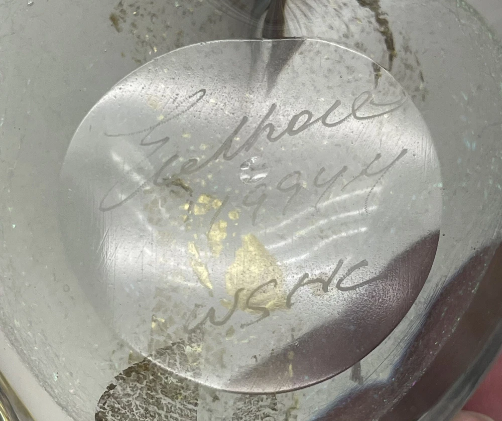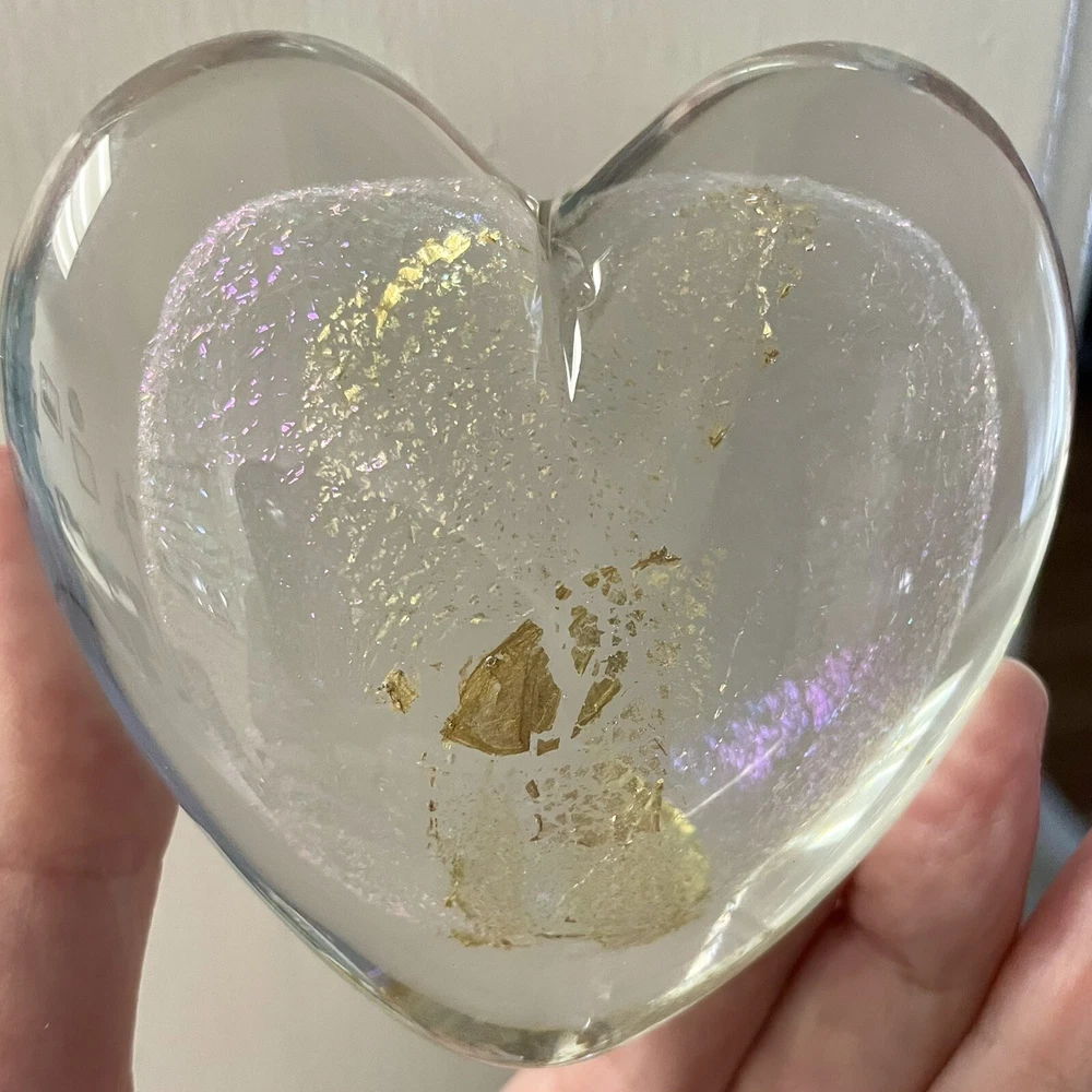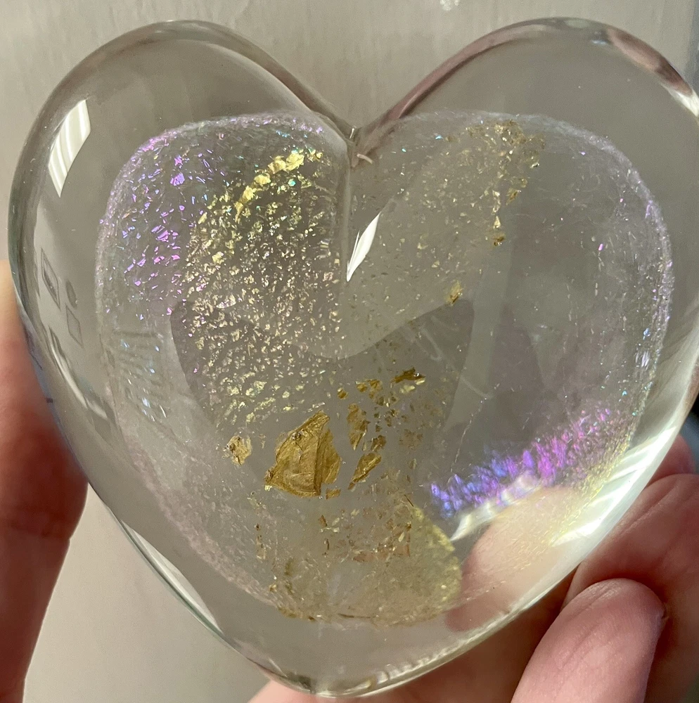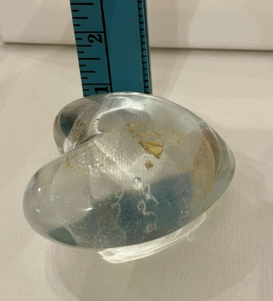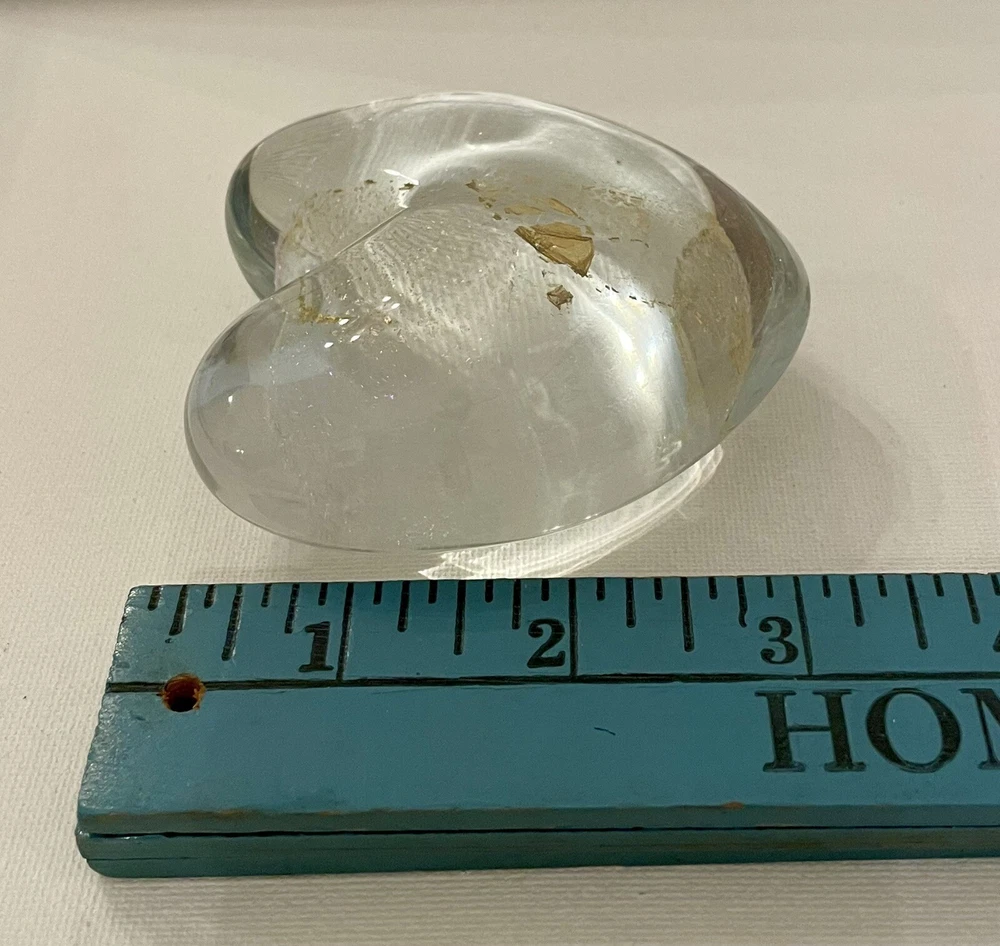 This is a Vintage Eickholt Studio Hand Blown Heart Shaped Art Glass Paperweight. It is signed & dated. Eickholt 1994H WSHC It’s predominantly gold leaf/flakes with subtle twinkles of blue, purple & green accents. It is absolutely beautiful! I used different backgrounds to show the color variance of the paperweight. The intensity of the colors also depends on the angle it is observed & the angle that the light hits. It is in good condition. There are no chips or cracks. It measures approximately 3 1/4”L x 3”W x 1” thick. If you have any questions, please don’t hesitate to ask. Thank you!