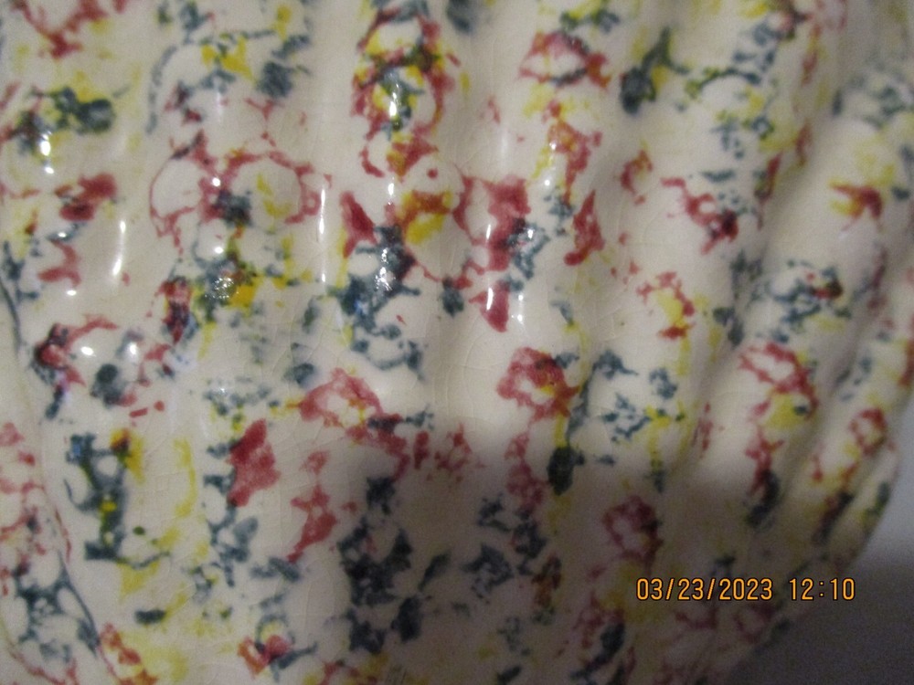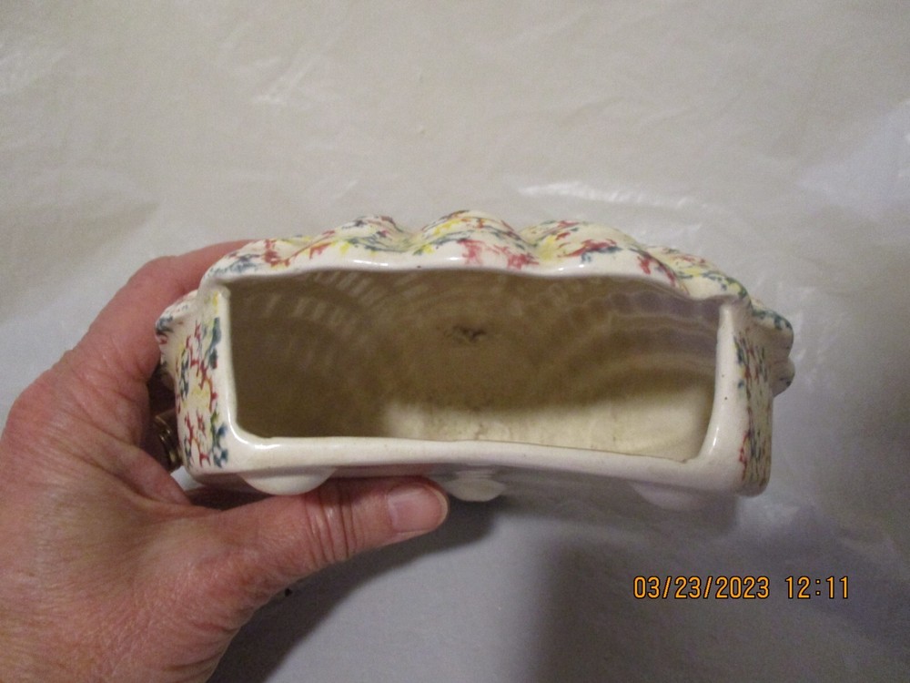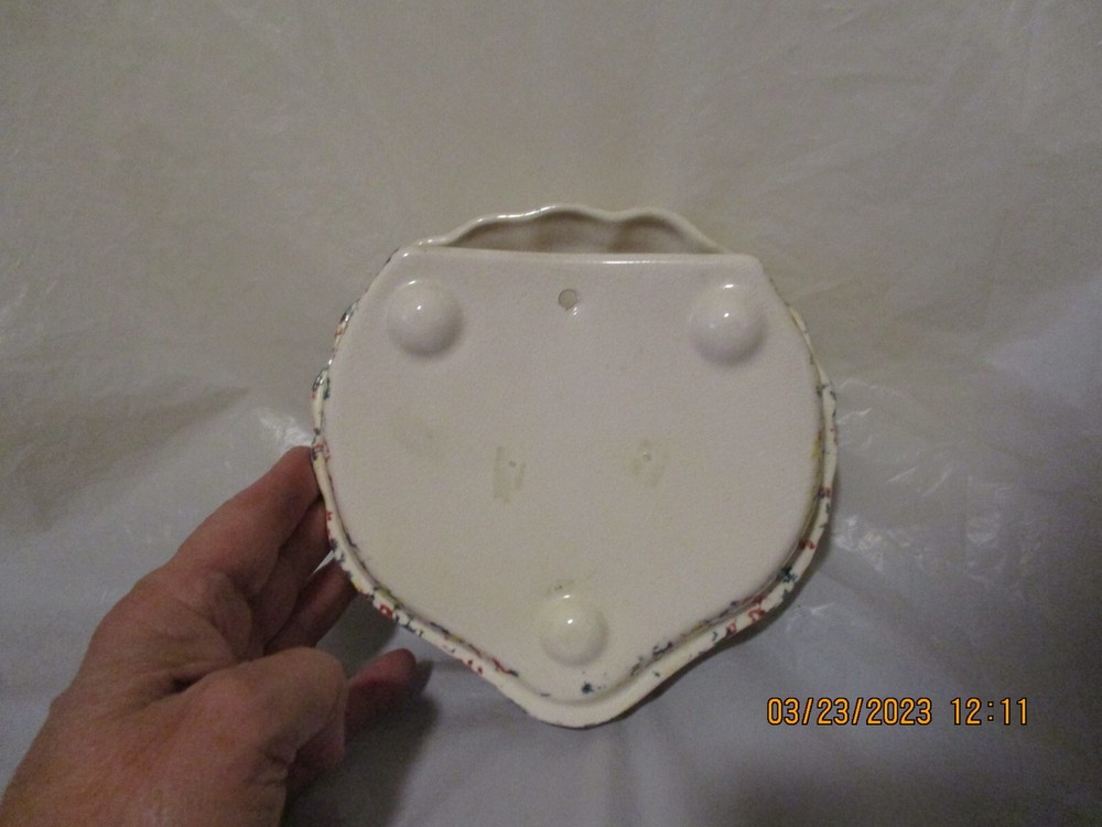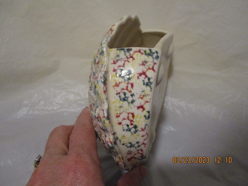 VTG Home Studio Art Pottery Handmade Shell Shaped Wall Pocket Spongeware Style....