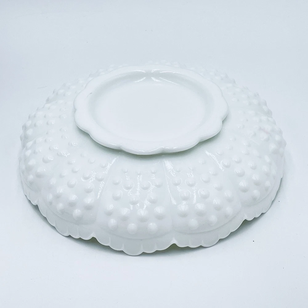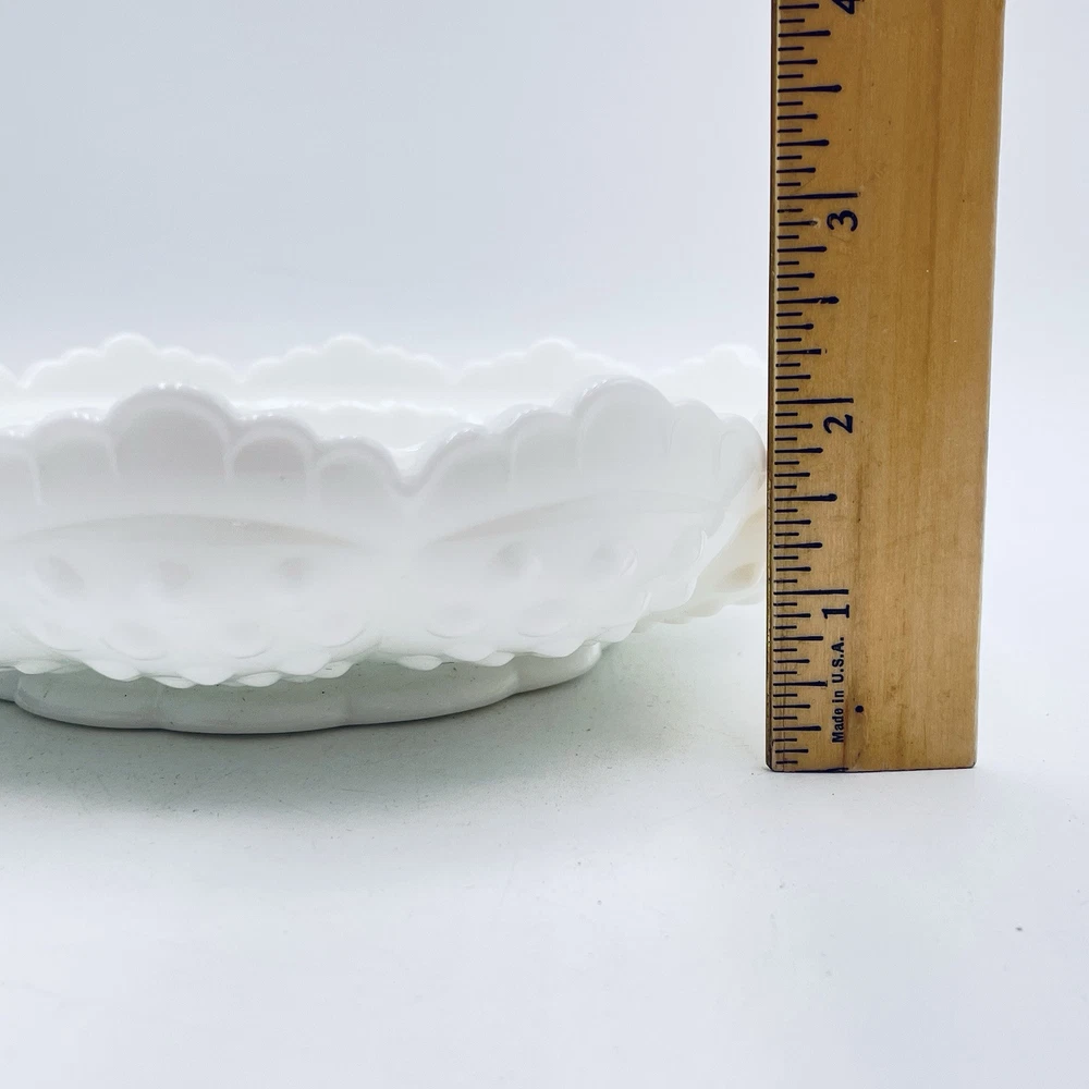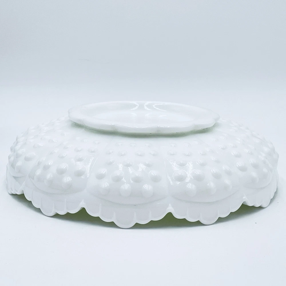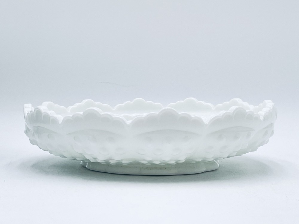 Thank you for your interest in my items. Up for sale is another great estate sale find and a Wonderful addition/collectible display piece! Elevate your home decor with the vintage charm of a Fenton Hobnail White Milk Glass Ashtray, a versatile piece that can seamlessly function as a chip and dip bowl or a candle bowl. Crafted in the United States, this classic round bowl showcases the timeless elegance of milk glass with a glossy finish, complemented by the distinctive hobnail pattern that adds a touch of traditional farmhouse flair. Ideal for various occasions from birthdays to Christmas, this 8-inch diameter bowl is a testament to the craftsmanship of North American art glass. The piece, which is an original and unbranded, weighs 2 pounds 6.7 oz, and is designed to add both functionality and a nostalgic aesthetic to your living space. Carefully hand wash only to maintain its pristine appearance. THIS DISH IS GREAT FOR SERVING CHIPS, FRUIT, OR VEGETABLES WITH DIP! VINTAGE FENTON WHITE MILK GLASS HOBNAIL ROUND WITH A RAISED CENTER IN THE MIDDLE. MODEL: 3778 MI - CHIP N' DIP, ASHTRAY, CANDLE BOWL BOWL, DISH SCALLOPED TOP EDGE FENTON LOGO BRIGHT WHITE, CLEAN, AND DISPLAYED ONLY! 2 1/4 INCHES TALL 8 1/4 INCHES WIDE 3 INCHES WIDE RAISED CENTER DAMAGE FREE, PERFECT / NEAR PERFECT CONDITION! NO CHIPS, CRACKS, REPAIRS, DAMAGE, OR ISSUES. PLEASE SEE PHOTOS!! ANY QUESTIONS PLEASE EMAIL FOR A PROMPT RESPONSE. VISIT OUR EBAY STORE FOR MORE GREAT ITEMS. Most all of my items are vintage, which means they have been pre-owned and many are quite old. My home is smoke-free, but I can't say where the items have been before I got them. I try to accurately describe any flaws I see, but I am human and may miss something, so please enlarge my photos and look closely at them. (Any white spots in the photos are reflections from the flash and not flaws). Feel free to message me with any questions or if you would like to see more photos or close-ups. I want you to be 100% thrilled with your purchase! She will be packaged with special care to arrive safely to you. I do believe in reusing packing materials as there is way too much in our landfills already. This also helps me pack and ship without adding any handling fees. All you pay for is the actual shipping cost, which includes insurance and tracking number. I do my best to describe my item as accurately and clearly as possible so you know exactly what you are potentially purchasing. Please have a look at all photos and enlarge to provide the best description and condition. I want you to be confident in what you buy, so please feel free to contact me with any questions you may have before purchasing. The actual color may appear different than on your monitor. A picture is worth a thousand words, so Please look at all pics before bidding. Combined Shipping Please see my other items, I will COMBINE SHIPPING for multiple items, please contact me prior to making payment for arrangements. Payment Payment is appreciated within a timely manner after purchase. If you are unable to make payment within 48 hours, please contact me. Any items not paid for or communicated about in regards to late payments will have a non payment case opened after 3 days. RETURNS If a return is accepted buyer has 14 days to return the item, buyer pays return shipping. Thank you. Feedback I leave feedback for every buyer as soon as your item is delivered. If for some reason you have an issue with your item, please contact me through eBay before leaving your feedback. I will make every effort to have a mutually agreeable outcome. It is always my goal to have a satisfied customer. 100% feedback is always a good thing and the goal.