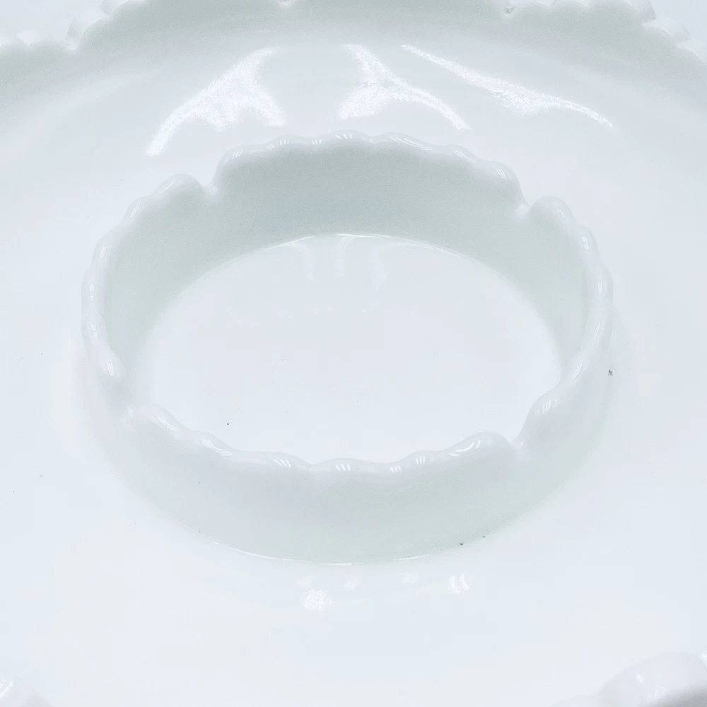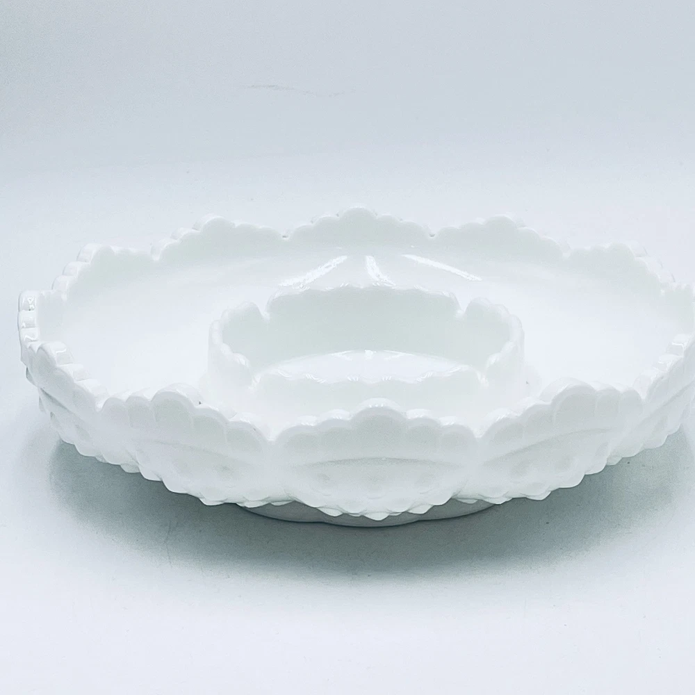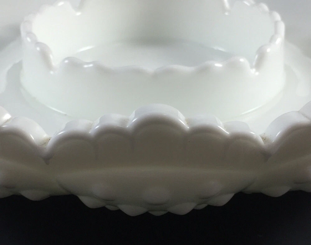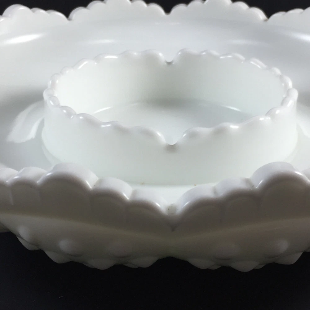 Thank you for your interest in my items. Up for sale is another great estate sale find and a Wonderful addition/collectible display piece! Elevate your home decor with the vintage charm of a Fenton Hobnail White Milk Glass Ashtray, a versatile piece that can seamlessly function as a chip and dip bowl or a candle bowl. Crafted in the United States, this classic round bowl showcases the timeless elegance of milk glass with a glossy finish, complemented by the distinctive hobnail pattern that adds a touch of traditional farmhouse flair. Ideal for various occasions from birthdays to Christmas, this 8-inch diameter bowl is a testament to the craftsmanship of North American art glass. The piece, which is an original and unbranded, weighs 2 pounds 6.7 oz, and is designed to add both functionality and a nostalgic aesthetic to your living space. Carefully hand wash only to maintain its pristine appearance. THIS DISH IS GREAT FOR SERVING CHIPS, FRUIT, OR VEGETABLES WITH DIP! VINTAGE FENTON WHITE MILK GLASS HOBNAIL ROUND WITH A RAISED CENTER IN THE MIDDLE. MODEL: 3778 MI - CHIP N' DIP, ASHTRAY, CANDLE BOWL BOWL, DISH SCALLOPED TOP EDGE FENTON LOGO BRIGHT WHITE, CLEAN, AND DISPLAYED ONLY! 2 1/4 INCHES TALL 8 1/4 INCHES WIDE 3 INCHES WIDE RAISED CENTER DAMAGE FREE, PERFECT / NEAR PERFECT CONDITION! NO CHIPS, CRACKS, REPAIRS, DAMAGE, OR ISSUES. PLEASE SEE PHOTOS!! ANY QUESTIONS PLEASE EMAIL FOR A PROMPT RESPONSE. VISIT OUR EBAY STORE FOR MORE GREAT ITEMS. Most all of my items are vintage, which means they have been pre-owned and many are quite old. My home is smoke-free, but I can't say where the items have been before I got them. I try to accurately describe any flaws I see, but I am human and may miss something, so please enlarge my photos and look closely at them. (Any white spots in the photos are reflections from the flash and not flaws). Feel free to message me with any questions or if you would like to see more photos or close-ups. I want you to be 100% thrilled with your purchase! She will be packaged with special care to arrive safely to you. I do believe in reusing packing materials as there is way too much in our landfills already. This also helps me pack and ship without adding any handling fees. All you pay for is the actual shipping cost, which includes insurance and tracking number. I do my best to describe my item as accurately and clearly as possible so you know exactly what you are potentially purchasing. Please have a look at all photos and enlarge to provide the best description and condition. I want you to be confident in what you buy, so please feel free to contact me with any questions you may have before purchasing. The actual color may appear different than on your monitor. A picture is worth a thousand words, so Please look at all pics before bidding. Combined Shipping Please see my other items, I will COMBINE SHIPPING for multiple items, please contact me prior to making payment for arrangements. Payment Payment is appreciated within a timely manner after purchase. If you are unable to make payment within 48 hours, please contact me. Any items not paid for or communicated about in regards to late payments will have a non payment case opened after 3 days. RETURNS If a return is accepted buyer has 14 days to return the item, buyer pays return shipping. Thank you. Feedback I leave feedback for every buyer as soon as your item is delivered. If for some reason you have an issue with your item, please contact me through eBay before leaving your feedback. I will make every effort to have a mutually agreeable outcome. It is always my goal to have a satisfied customer. 100% feedback is always a good thing and the goal.