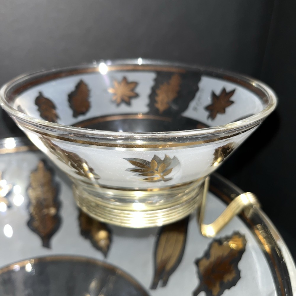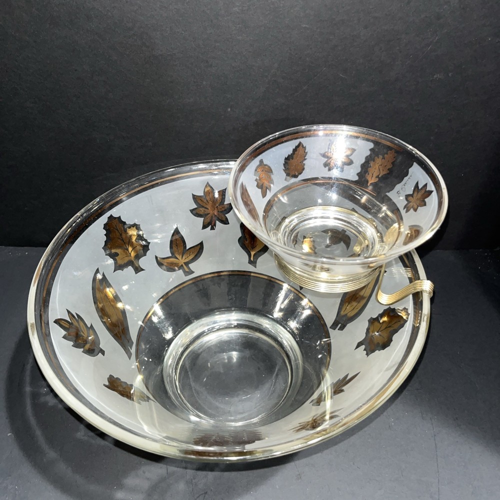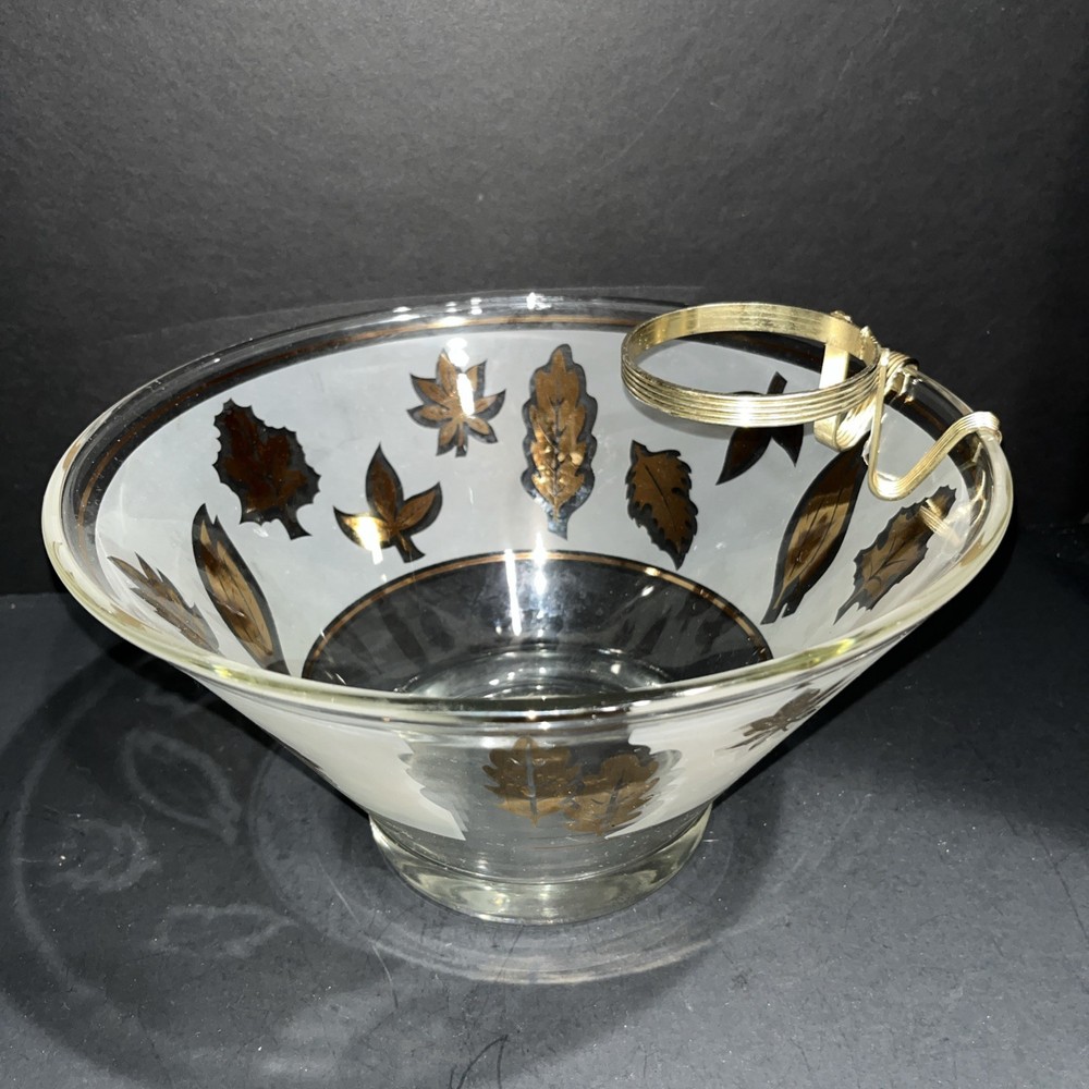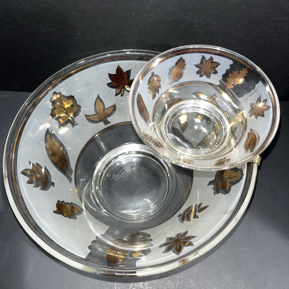 VTG Libbey Large Salad Chip & Dip Bowl Set Cradle Frosted Gold Rose Leaf Pattern. In good condition with no chips or cracks. Please see pictures for condition and measurements. Ships next business day...