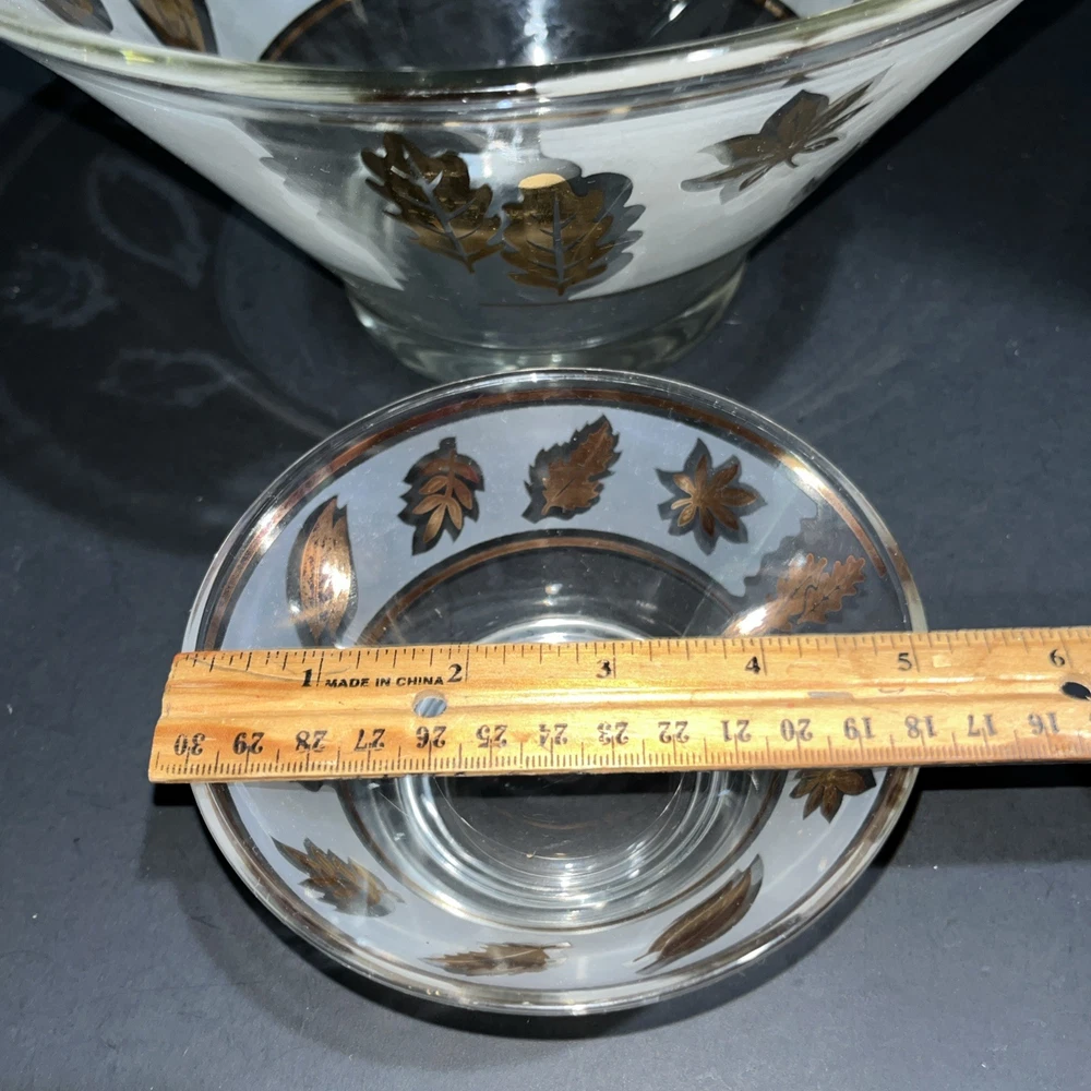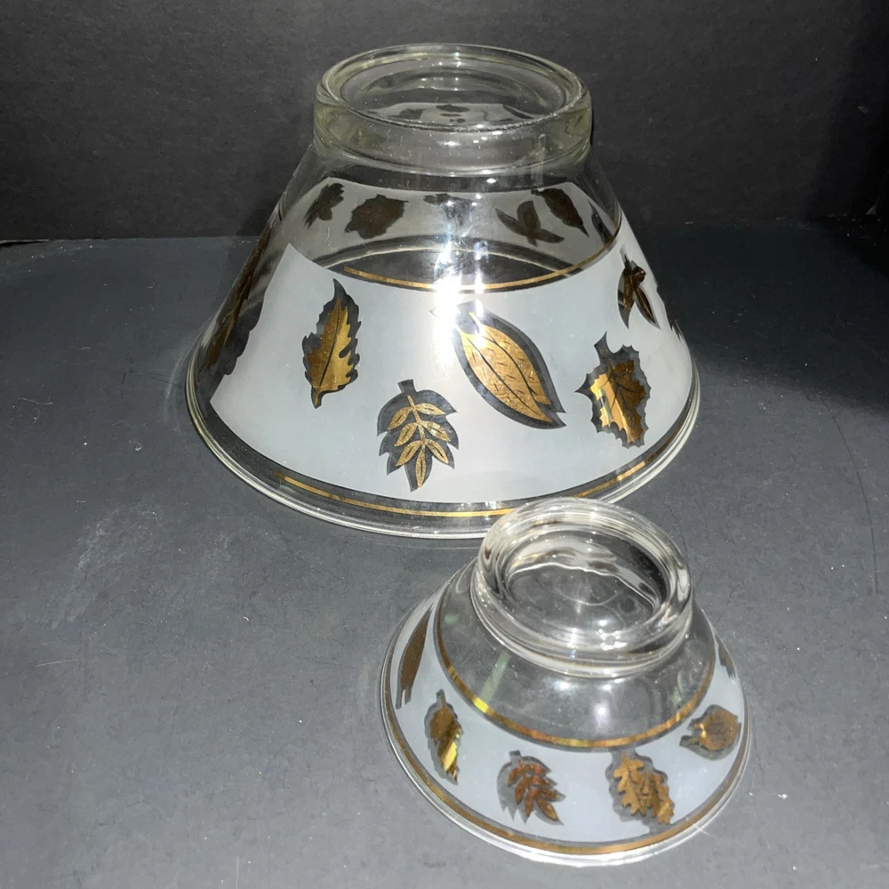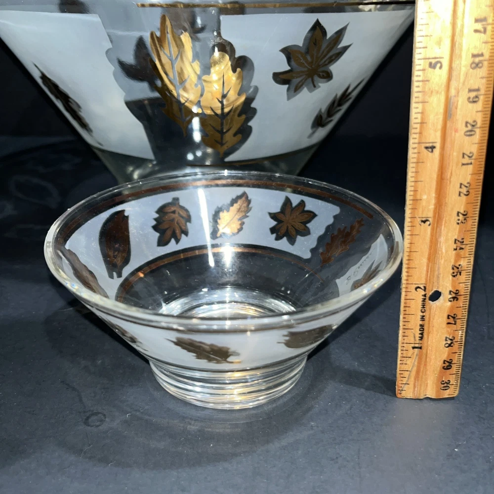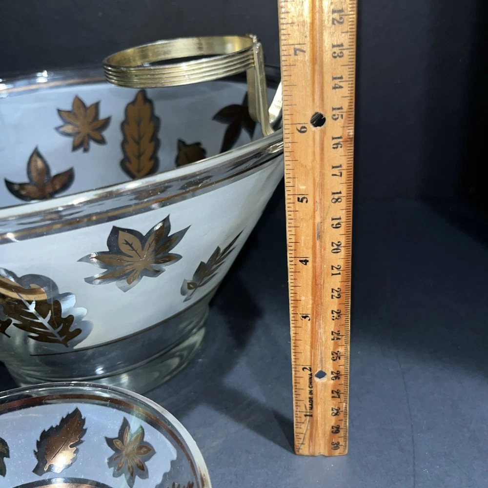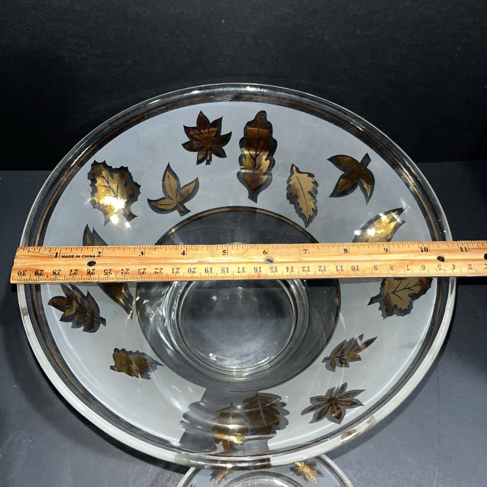 VTG Libbey Large Salad Chip & Dip Bowl Set Cradle Frosted Gold Rose Leaf Pattern. In good condition with no chips or cracks. Please see pictures for condition and measurements. Ships next business day after payment. 😊
