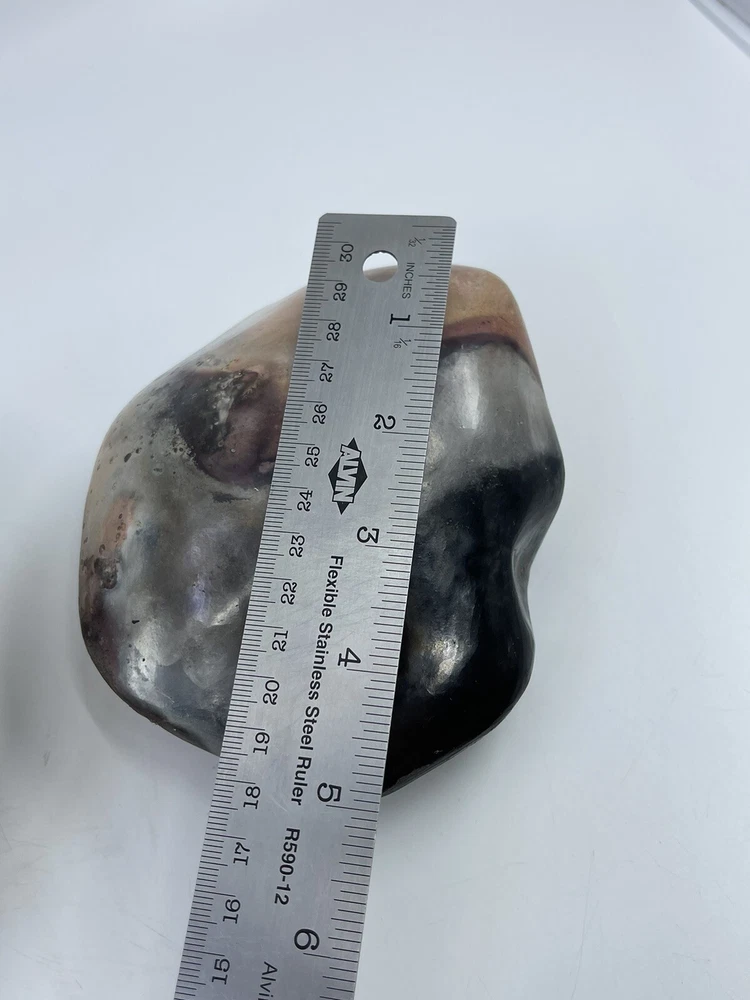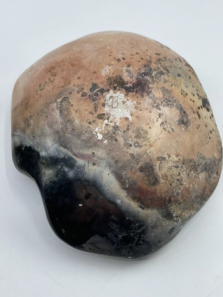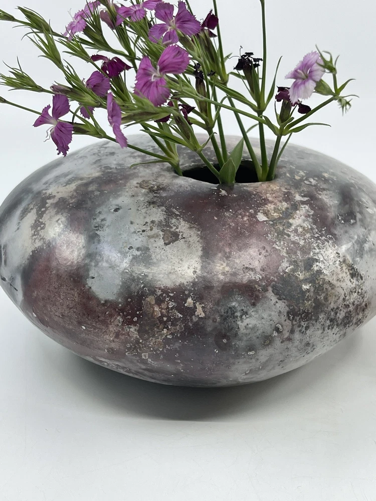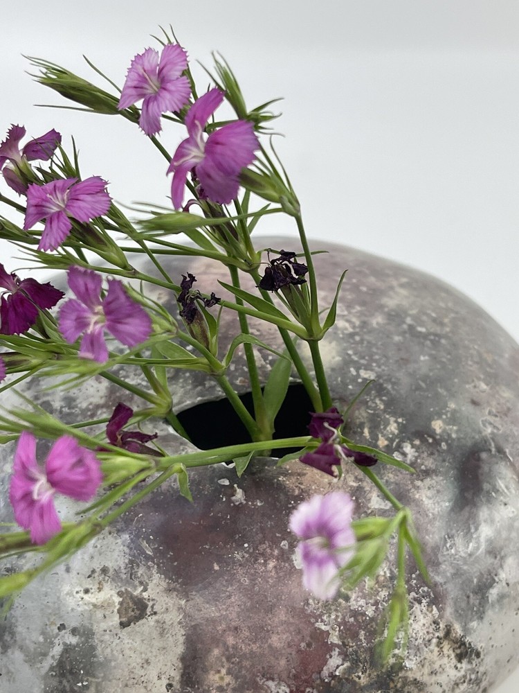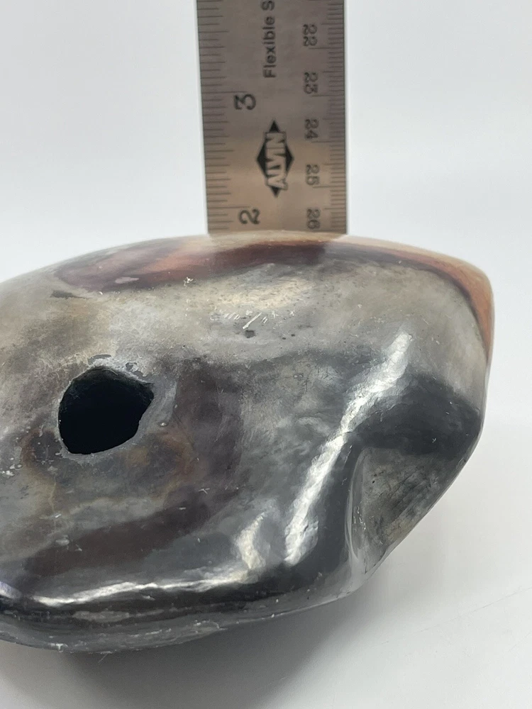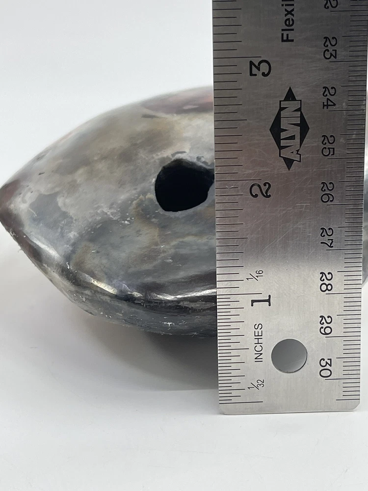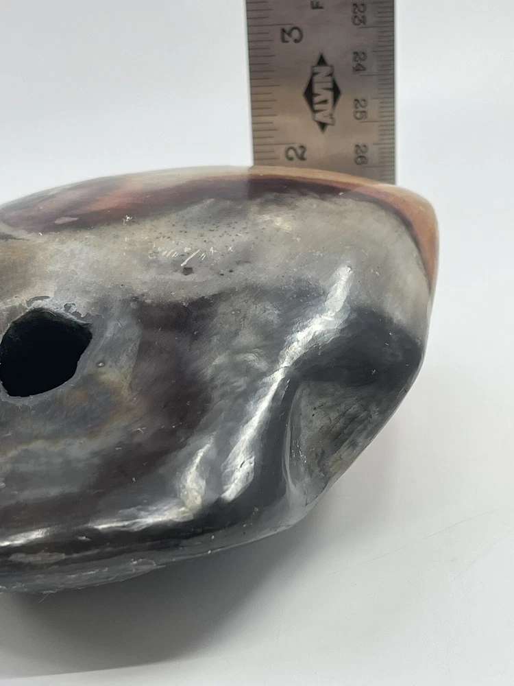 These are absolutely so unusual beautifully made the larger one. The hole is a little bit rougher. I don’t know if that was naturally that way, but it seems fine. Please look up clothes. It could be a little chipped, but I don’t think so. The glaze on these is amazing. It does look like River rock in the water, you can put water or dried flowers, sunny, or by themselves selling as is as a lot
