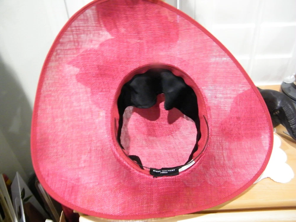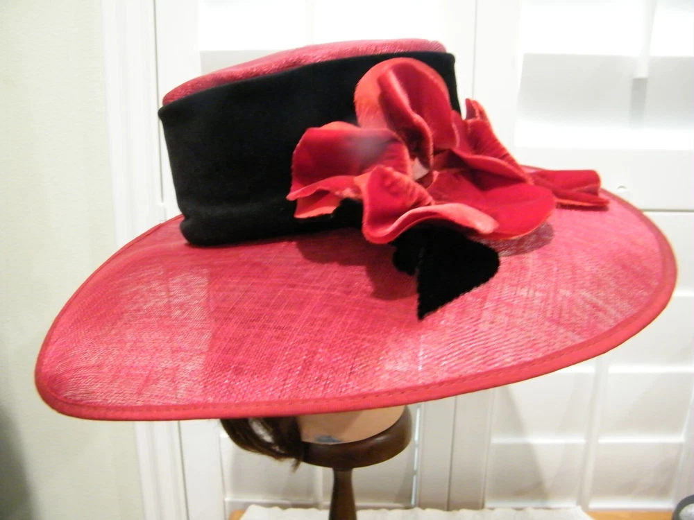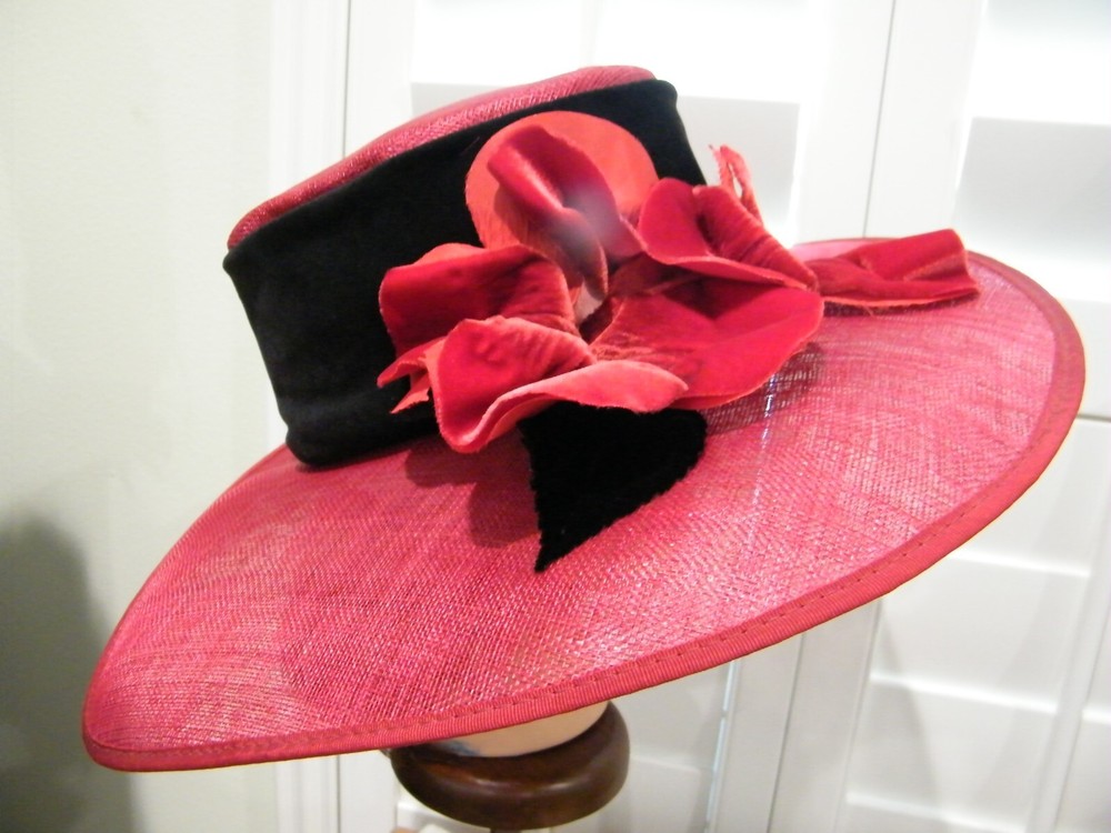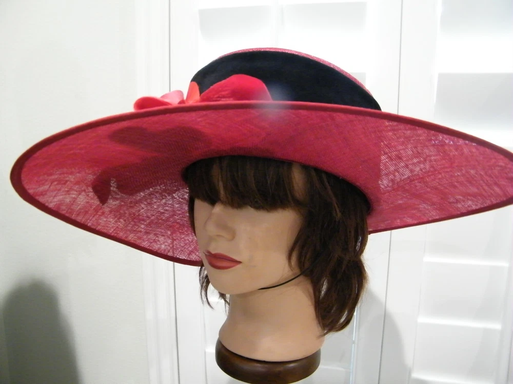 **NIGEL RAYMENT milliner** VINTAGE...ORIGINAL LARGE UNIQUE BRIM HAT SIZE MED ************ RED NATURAL FIBER STUNNING CLASSIC DESIGN DIPPED BRIM 3"-4" to 5" 4" CROWN with BLACK FELT BAND LOWER DIP TWO VELVET FLOWERS ****** INNER 3" BLACK CLOTH BAND && ATTACHED ELASTIC THIN BLACK STRAP TAG; NIGEL RAYMENT MILLINER md in ENGLAND A MUST HAVE BUY NOW POLICIES..POLICIES..POLICIES. SORRY NO LONGER INTERNATIONAL SHIPPING ~Buy more than one item at the same time from our eBay store and save in shipping costs!~ (If buying different items, just put them all in your cart before paying, to get the combined shipping discount!) It is YOUR Responsibility To Know The TERMS Laid Out Below! YOU AGREE TO ALL THESE TERMS WHEN YOU CLICK (CONFIRM BID) ON ANY OF MY ITEMS…AND ARE OBLIGATED TO HAVE READ MY POLICIES & ARE UNDER OBLIGATION TO MAKE PAYMENTS WITHIN THE REQUIRED TIME We Reserve the Right to Refuse Service to Anyone I DO NOT ACCEPT BUYERS REMORSE NOR CHANGE OF MIND ON A SALE, THIS IS A BINDING CONTRACT WITH EBAY AND SELLER FOR PAYMENT..DOES NOT FIT DOES NOT CONSTUTE A NOT AS DESCRIBED NOR RETURN OR REFUND ON PURCHASE PLEASE BE SURE TO VIEW ALL PICTURES AND READ ALL DETAILS OF THIS LISTING PRIOR TO BIDDING. WE WILL NOT CANCEL ANY BIDS AFTER PLACED OR ANY TRANSACTIONS AFTER AUCTION HAS ENDED. Payment is due within 3 days of invoicing. Returns Needs to be authorized. Please Contact Seller within 3 days of receiving product for a Return Merchandise Authorization Number. Buyer is responsible for Return Shipping Costs. A 10% Re-Stocking Fee WILL BE deducted from your Refund. Returns are accepted if there is a Gross Mistake in the Listing on the part of the Seller. Buyer's Remorse, Use then Return or any alteration of said Product constitutes a NO RETURN Issu E IF YOU REQUIRE MORE PHOTOS FEEL FREE TO ASK We try to show the exact color but colors may different slightly depending on your monitosettings PRE-OWNED= Items have been well cared for & loved. May show usual wear, tarnishes or scratches as explained in item description. If you are expecting a perfect used item, you may not want to bid as the product is not new unless it says so. A handling fee of $2.00 is added to orders. USED TO IRON ALL MY ITEMS FOR PHOTO SHOOTS BUT THEN REALIZED I FOLD THEM FOR SHIPPING ....ALL ITEMS COME FROM CLEAN..NON SMOKING ENVIRONMENT WATCH FOR YOUR FLORIDA SEA SHELLS POLICIES..POLICIES..POLICIES. SORRY NO LONGER INTERNATIONAL SHIPPING ~Buy more than one item at the same time from our eBay store and save in shipping costs!~ (If buying different items, just put them all in your cart before paying, to get the combined shipping discount!) It is YOUR Responsibility To Know The TERMS Laid Out Below! YOU AGREE TO ALL THESE TERMS WHEN YOU CLICK (CONFIRM BID) ON ANY OF MY ITEMS…AND ARE OBLIGATED TO HAVE READ MY POLICIES & ARE UNDER OBLIGATION TO MAKE PAYMENTS WITHIN THE REQUIRED TIME We Reserve the Right to Refuse Service to Anyone I DO NOT ACCEPT BUYERS REMORSE NOR CHANGE OF MIND ON A SALE, THIS IS A BINDING CONTRACT WITH EBAY AND SELLER FOR PAYMENT..DOES NOT FIT DOES NOT CONSTUTE A NOT AS DESCRIBED NOR RETURN OR REFUND ON PURCHASE PLEASE BE SURE TO VIEW ALL PICTURES AND READ ALL DETAILS OF THIS LISTING PRIOR TO BIDDING. WE WILL NOT CANCEL ANY BIDS AFTER PLACED OR ANY TRANSACTIONS AFTER AUCTION HAS ENDED. Payment is due within 3 days of invoicing. Returns Needs to be authorized. Please Contact Seller within 3 days of receiving product for a Return Merchandise Authorization Number. Buyer is responsible for Return Shipping Costs. A 10% Re-Stocking Fee WILL BE deducted from your Refund. Returns are accepted if there is a Gross Mistake in the Listing on the part of the Seller. Buyer's Remorse, Use then Return or any alteration of said Product constitutes a NO RETURN Issu E IF YOU REQUIRE MORE PHOTOS FEEL FREE TO ASK We try to show the exact color but colors may different slightly depending on your monitosettings PRE-OWNED= Items have been well cared for & loved. May show usual wear, tarnishes or scratches as explained in item description. If you are expecting a perfect used item, you may not want to bid as the product is not new unless it says so. A handling fee of $2.00 is added to orders. USED TO IRON ALL MY ITEMS FOR PHOTO SHOOTS BUT THEN REALIZED I FOLD THEM FOR SHIPPING ....ALL ITEMS COME FROM CLEAN..NON SMOKING ENVIRONMENT WATCH FOR YOUR FLORIDA SEA SHELLS