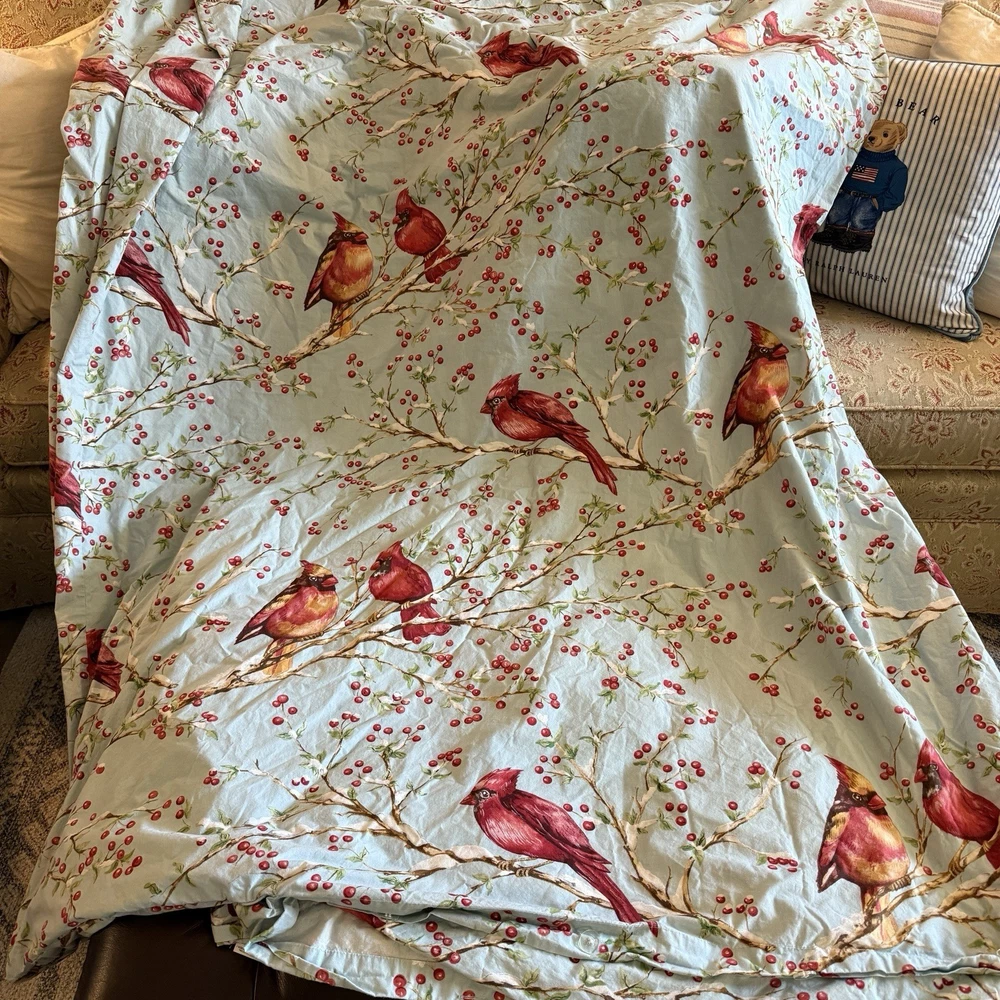 Add a touch of nature-inspired elegance to your bedroom with the vintage Pottery Barn King Duvet Cover. This charming cottage-style duvet cover features a vibrant multicolor bird pattern with a focus on the beautiful cardinal berries, bringing a winter birds theme to your space. Made from 100% cotton, it provides both comfort and durability, ensuring a cozy and refreshing sleep every night. Crafted with care in Israel, this one-piece set includes a king-sized duvet cover that effortlessly fits your bedding setup. The timeless design blends seamlessly with various bedroom decor styles, making it a versatile addition to your home. Whether you're updating your own bedroom or gifting it to an adult who appreciates the beauty of seasonal motifs, this duvet cover is sure to be a delightful touch to any bedroom setting.