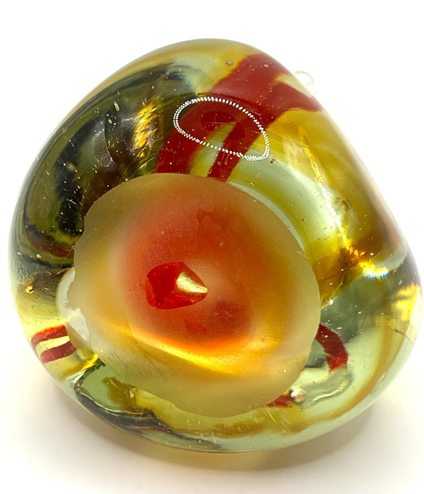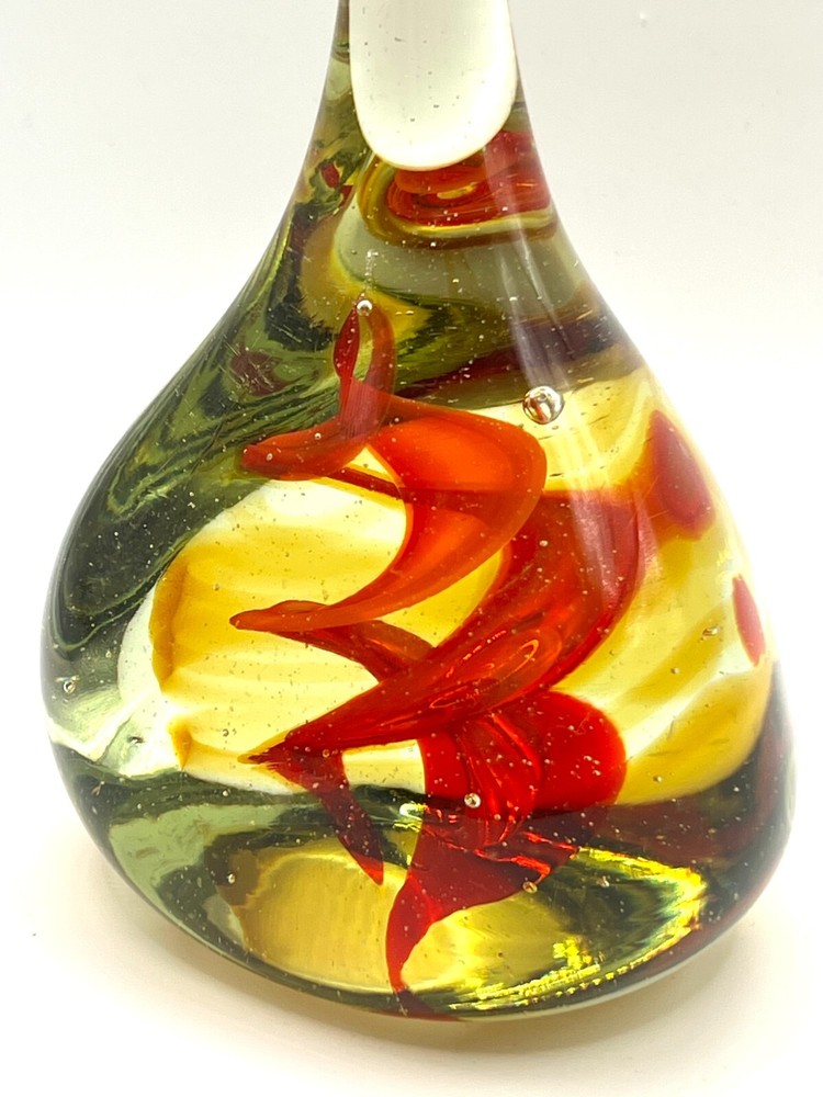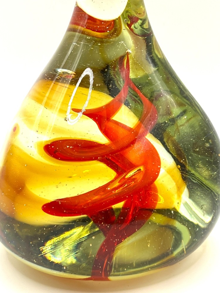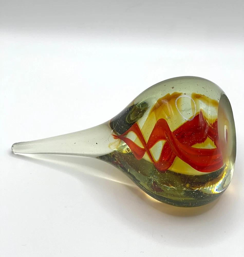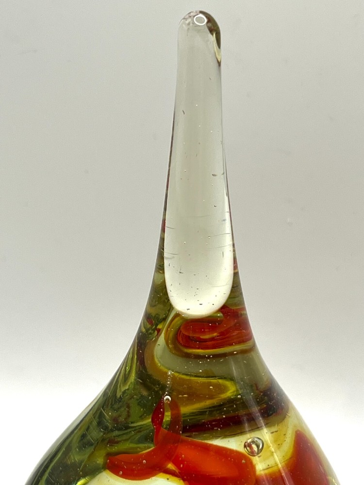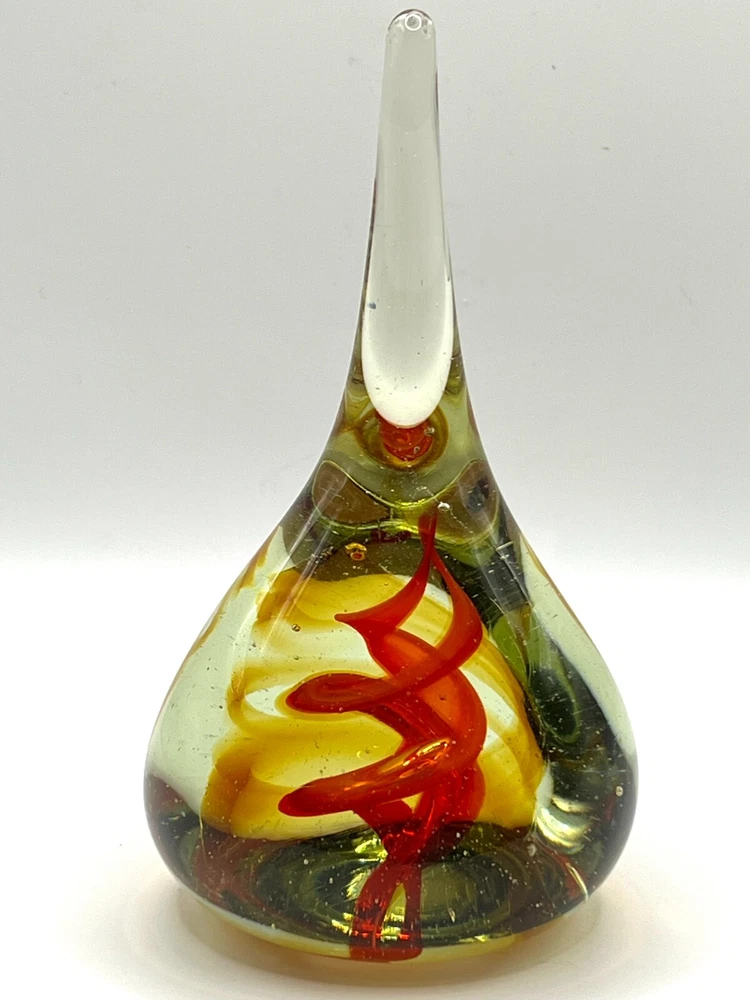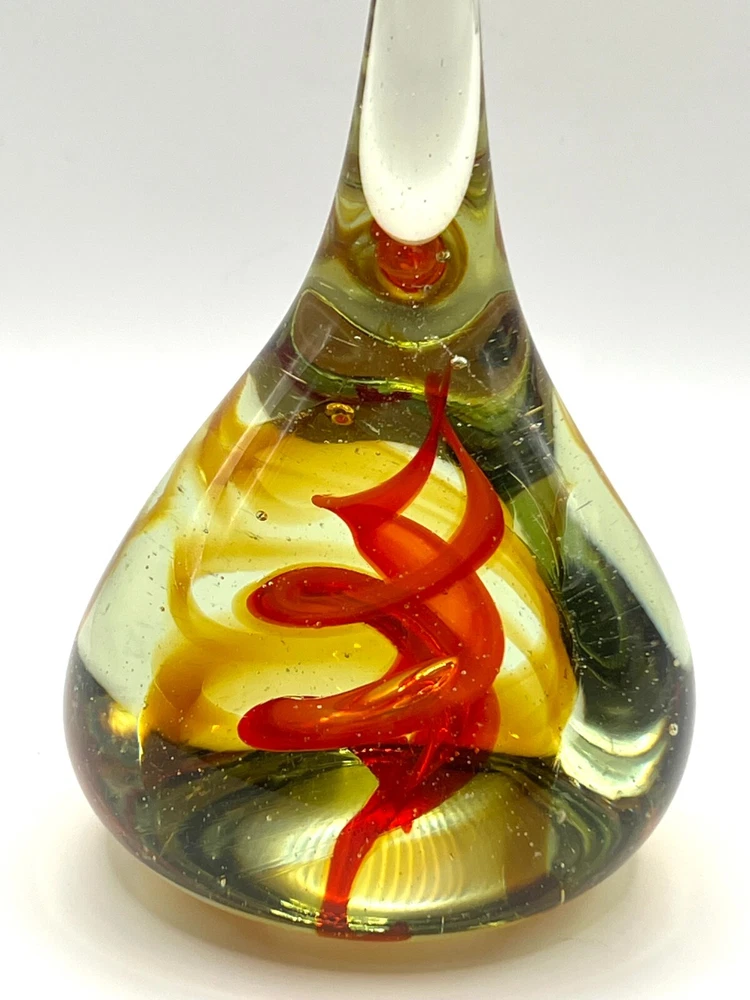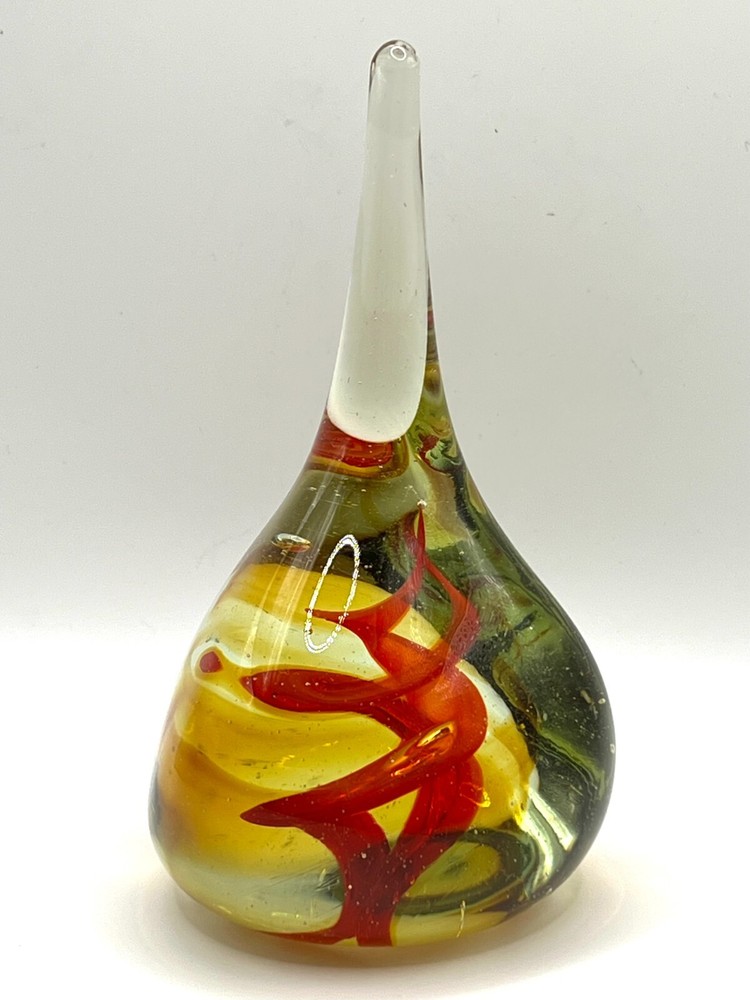 VTG Studio Art Glass Waterdrop Shaped Handblown Paperweight Abstract Red Spiral Design. 6 in height, 3 in bottom diameter. No chips. Excellent condition