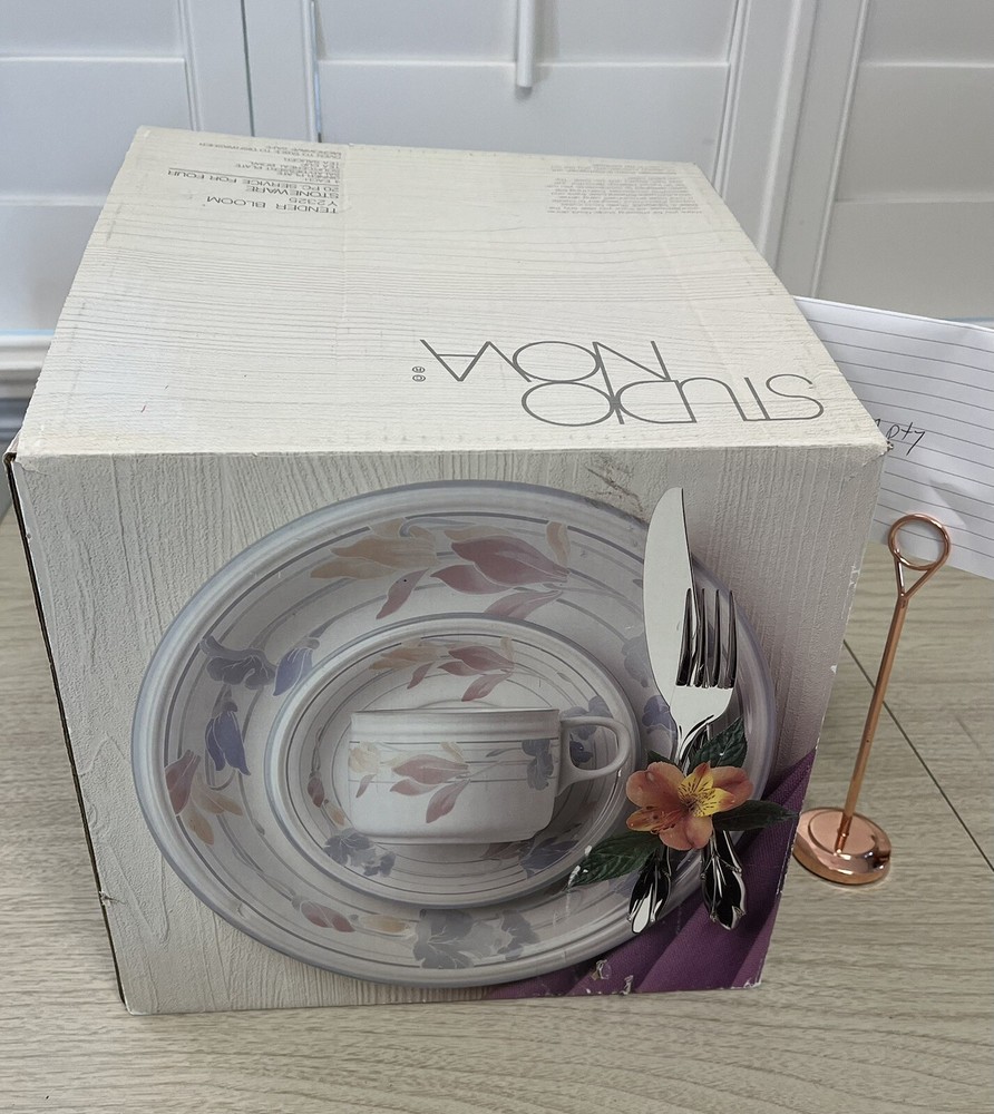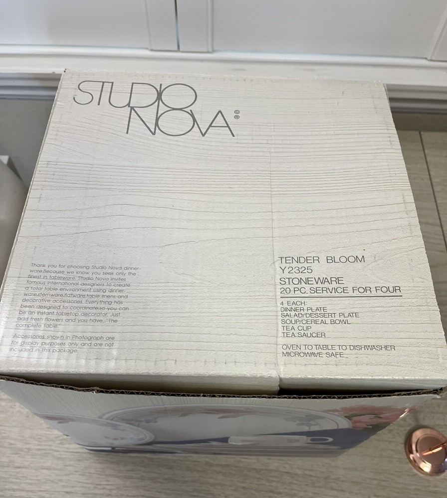 This vintage Studio Nova Tender Bloom box is perfect for stoneware storage—charming and sturdy! The seller provides clear shipping options and cares about sustainability by reusing materials. Even though it's from a pet-friendly home, it's well-kept. Great for collectors who value both function and eco-conscious packaging. Check the photos for details—lovely addition to any kitchen or display!