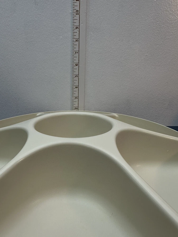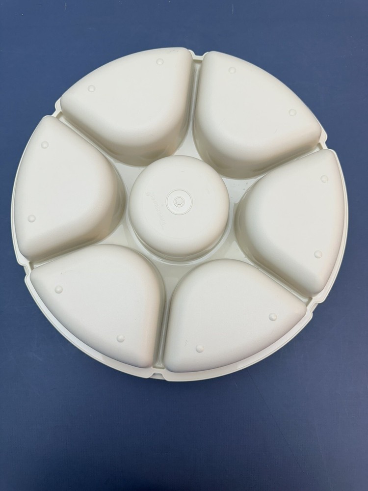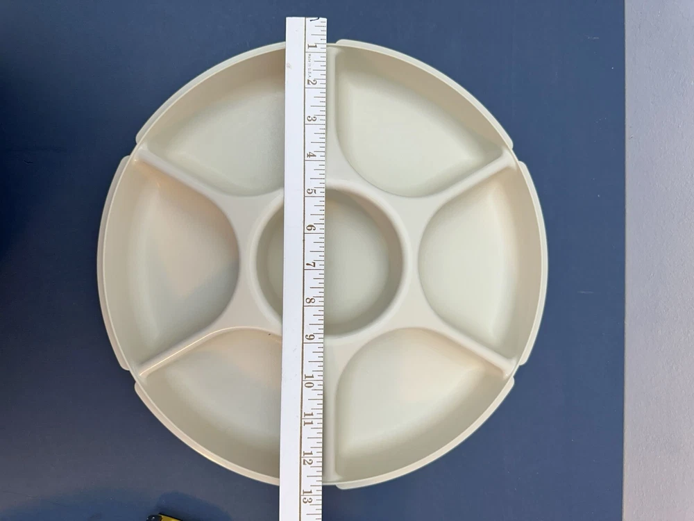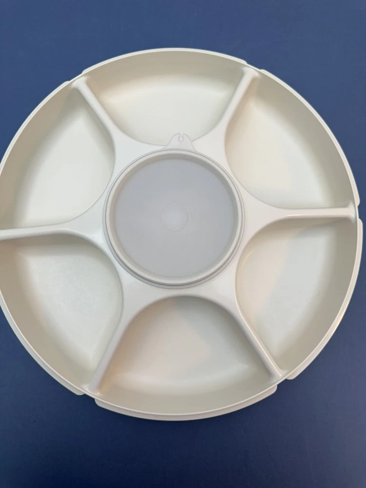 This VINTAGE Tupperware 13.5" Divided Veggie, Fruit or Chip Serving Tray & lid has the original Dip Bowl & Lid included! All pieces are in excellent condition....