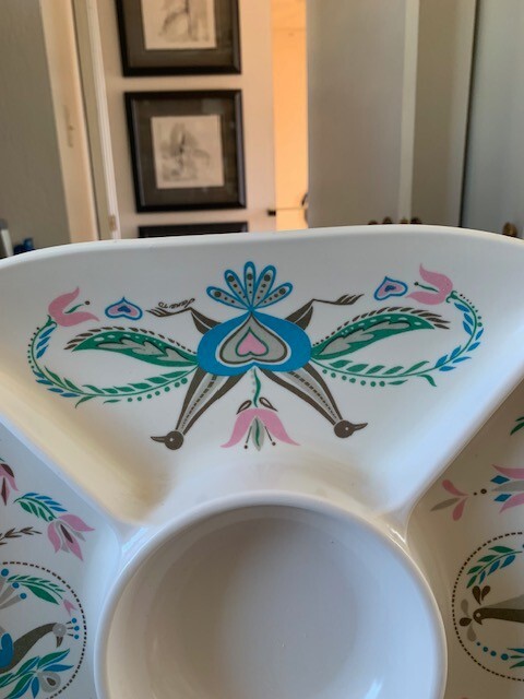 Offered for purchase is this chip/dip serving tray. It is in wonderful condition and measures approx 14" sq. Please email questions before purchase. Buyer pays shipping....