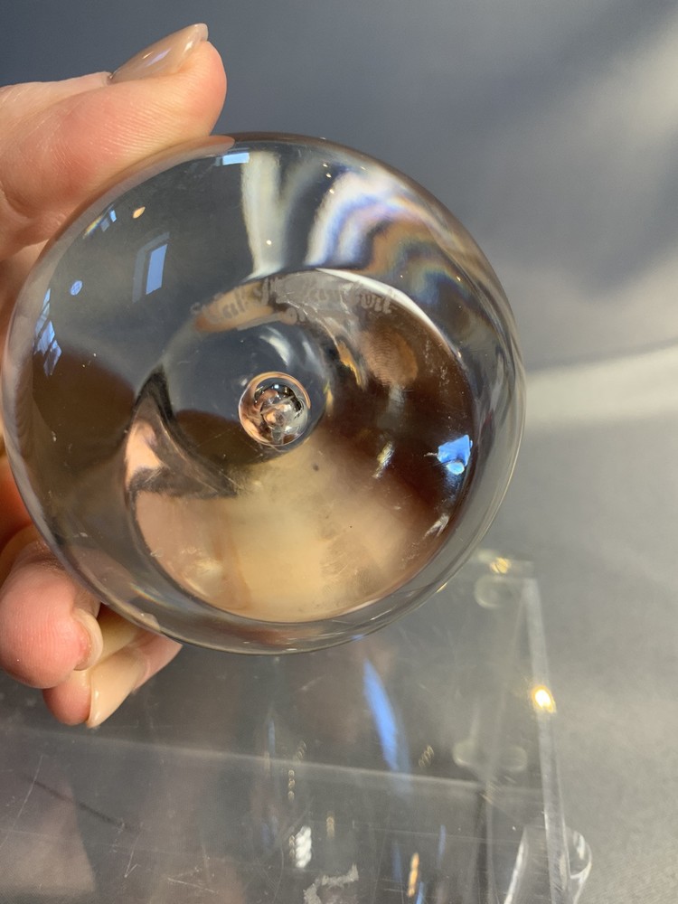 Val St. Lambert Egg Shaped Controlled Teardrop Bubble Clear Paperweight. Approximately 3.5” high. Signed/Incised on the bottom. Excellent pre-owned condition....