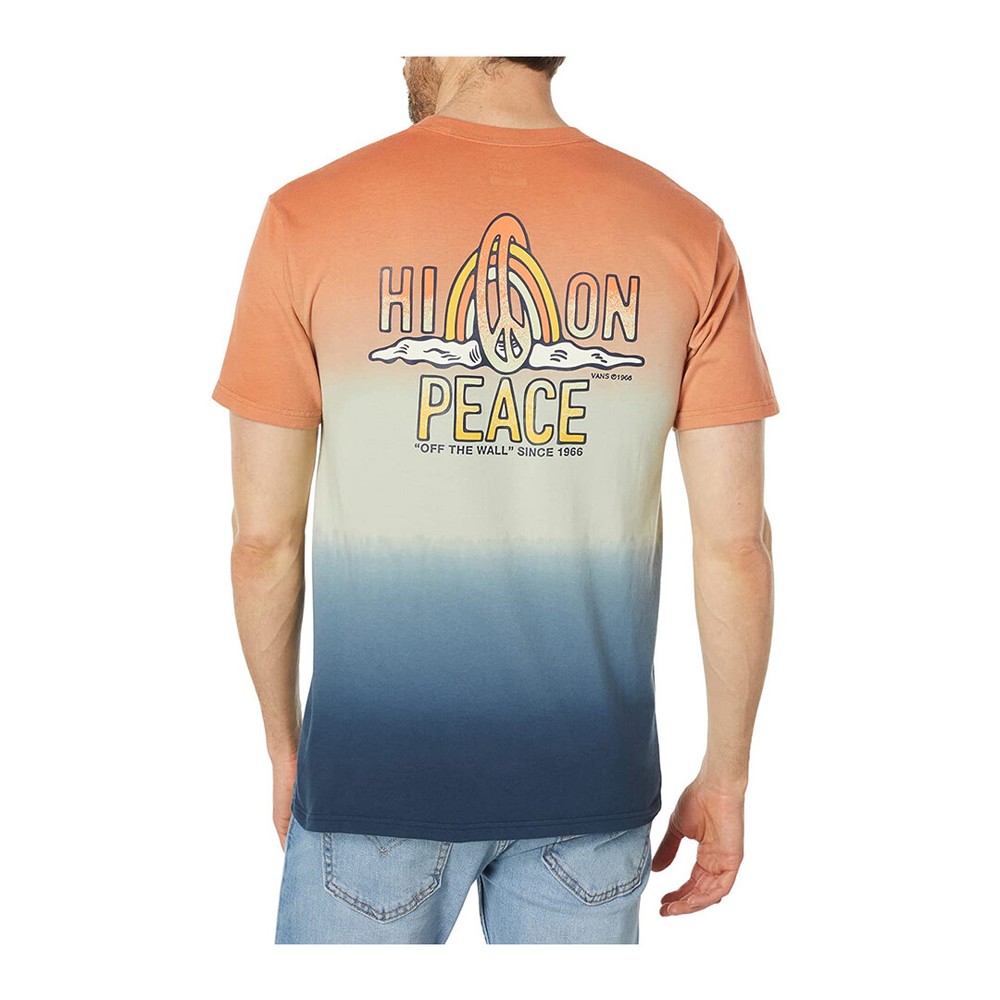New Era Hats and Shoes Vans "Peace Of Mind Dip Dye" Short Sleeve Tee (Melon/Celadon Green) T-Shirt This is an original and authentic Vans "Peace Of Mind Dip Dye" short sleeve t-shirt. This shirt is melon and celadon green color, and features screen printed Vans art work.