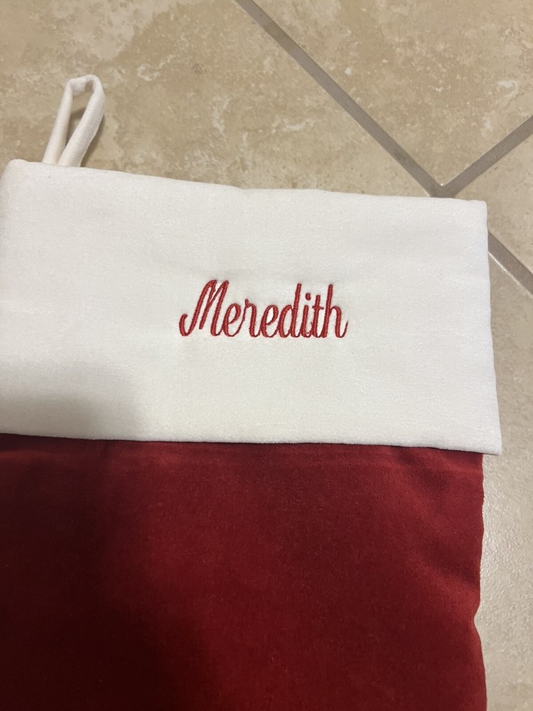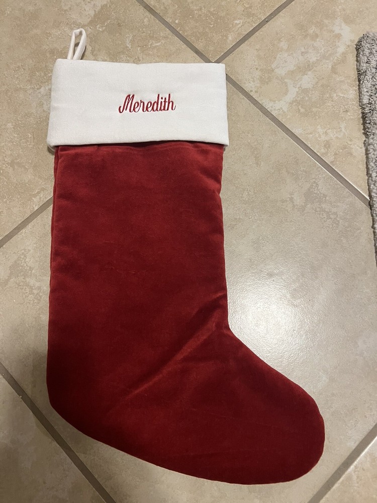 Velvet Classic Christmas Stocking Ivory Monogram Pottery Barn ‘Meredith’ (New). Condition is New. Shipped with USPS Ground Advantage....