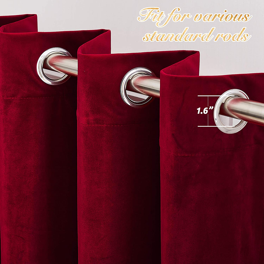 Velvet Curtains 102 Inches Long, Red Velvet Curtains and Drapes, Red Thermal Insulated Curtains for Holiday Season Home Decoration (Set of 2, Grommet Top Design, 102 Inches Long) 100% Polyester READY MADE: Package includes a pair of panels of W52"x L102" each | W104"x L102" in total. The design of silver grommet (1.6 inch inner diameter) creates casual elegance for your house, which makes the curtains easy to install and slide. LENGTH ADJUSTABLE: Don't worry if these velvet curtains are few shorter than your windows. You can hang these curtain panels with rings and hooks. That could be adjustable for height max 3 inches. Hooks space distance around 4-6 inches. LIGHT DIMMING: Show off Selection creats you a disturbe free theater like space by impeding 98% of light that comes from outside. Heavy and thick velvet curtains keep the room at a set temperature by insulating against either heat or cold. SOUND DAMPENING: Plush velvety fabric proves to be good sound absorbers that helps you decrease the outside noise and can get the reflected sound be absorbed. With opulent tones, these luxurious velvet curtains frame your views in pure luxury. EASY CARE: Good quality finishing will withstand years of use. Machine washable and Wash the water temperature below 86℉. Mild detergent no bleaching. Quick ironing when needed. Please be free to if you have any question with our products. NICETOWN Velvet Curtains Item model number _Velvet Style Art Deco Number of Items 2 Pattern Solid Country of Origin China Package Weight 5.49 Pounds Theme Home Curtains Opacity Blackout Inches Room Type Kitchen, Living Room, Bedroom, Home Office, Dining Room Batteries required No Product Dimensions 102"L x 52"W Material Polyester Top Style Grommet Model Name NTGMVTSLD-ALL Seasons Winter Included Components Grommet Curtain Form Drapes Perfume Unscented Item Weight 4.88 pounds Size W52" x L102" Occasion Wedding, New Year Special Feature Self-Propelled, Soundproof, Blackout Color Red Recommended Uses For Product Indoor Fabric Type 100% Polyester Product Care Instructions Machine Wash Number of pieces 1 Shipping Fast shipping is very important for us. Our standard US shipping service is FREE. Your order will be shipped within 2-3 business days upon full payment received. Your order will be delivered within 2-3 business days after the handling time. We only ship to the confirmed PayPal address. We reserve the right to cancel any order for any reason at any time. We are not responsible for undeliverable addresses. Returns and payment We offer a 30 days return policy from checkout winning date. We allow only PayPal as payment method FeedBack Your feedback very important to us, after you get your package and you are satisfied with our service please leave us positive feedback If you have any problem with your order / any questions please before leave any type of feedback For any questions, using eBay contact system Please visit our eBay store to check out other items for sale! Thank you for shopping at our store.