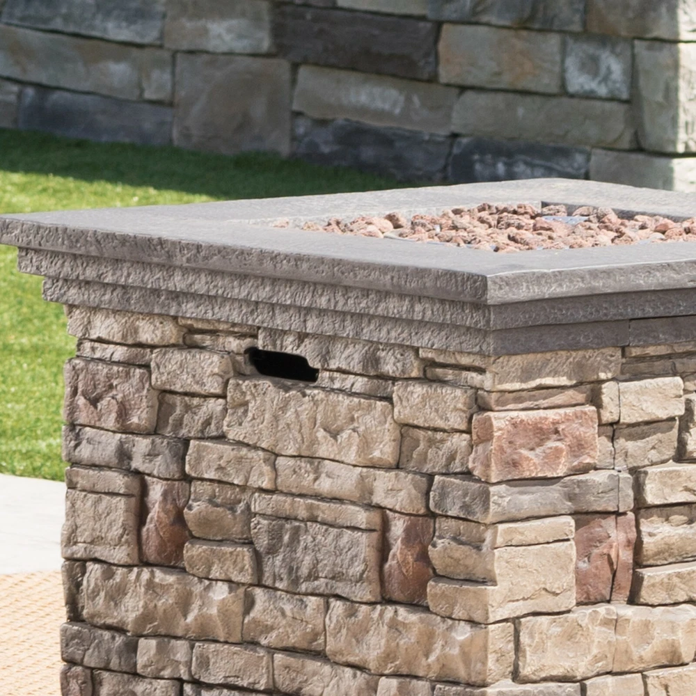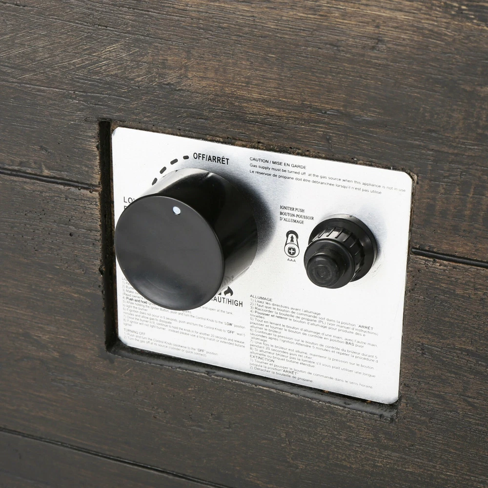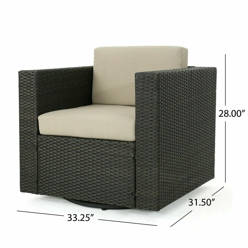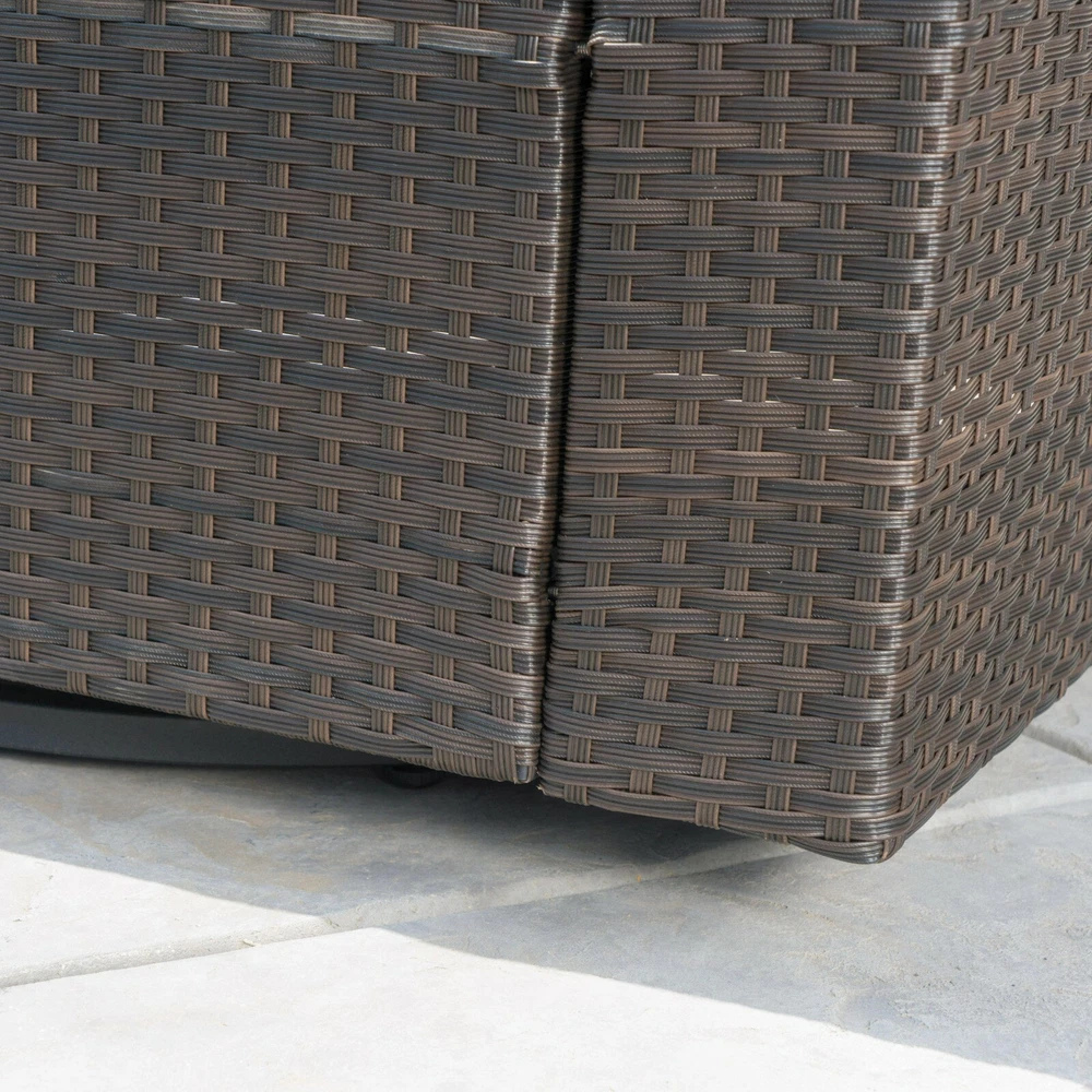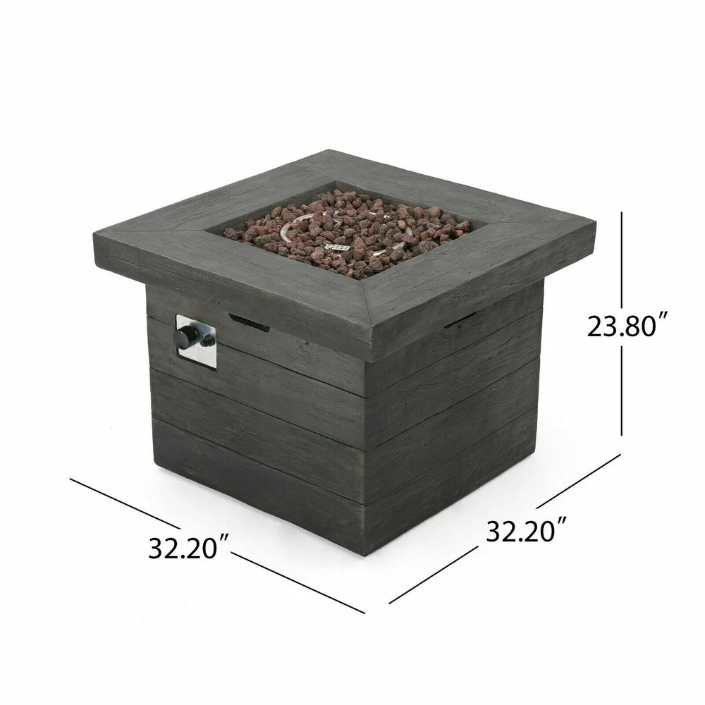 No need to go camping to enjoy all the romance and excitement of an evening spent around the fire. Now you can have a fire pit in your backyard without smelling like smoke. This safe, gas-burning fire pit and four accompanying swivel club chairs means that friends and family have a great way to spend evenings outside enjoying the night air and talking or telling ghost stories. Product Details: Includes: Four (4) Club Chairs and One (1) Fire Table Chair Material: Polyethylene Wicker Chair Frame Material: Iron Chair Cushion Material: Water Resistant Fabric Composition: 100% Polyester Fire Table Material: Magnesium Oxide Wicker Finish: Dark Brown Cushion Color: Beige Table Finish available in Gray, Brown, or Stone/Brown Assembly Required Dimensions: Chair Dimensions: 32.08"D x 30.31"W x 27.95"H Seat Width: 25.25" Seat Depth: 22.75" Seat Height: 15.00" Fire Table Dimensions: 32.20"D x 32.20"W x 23.80"H PROP 65 WARNING