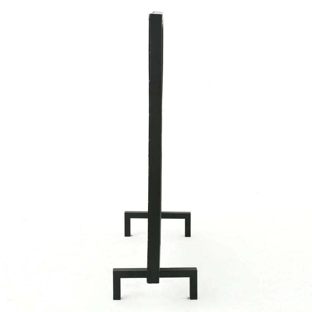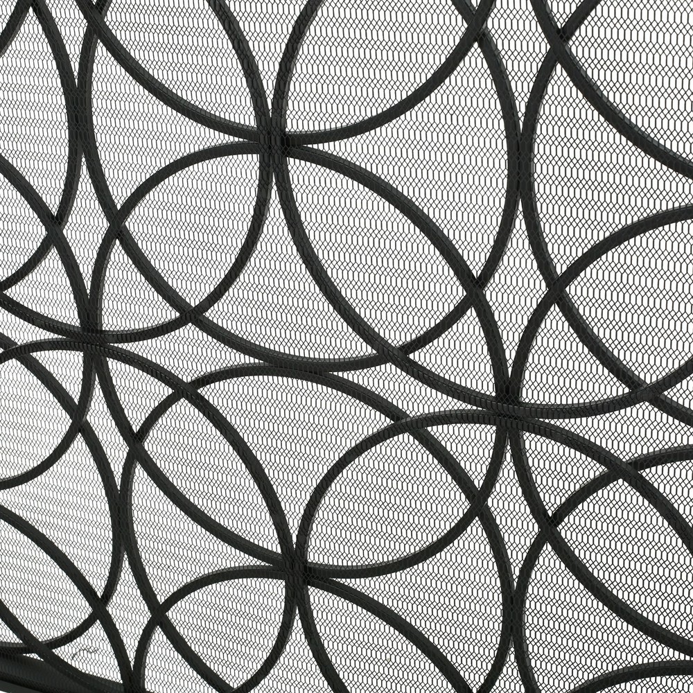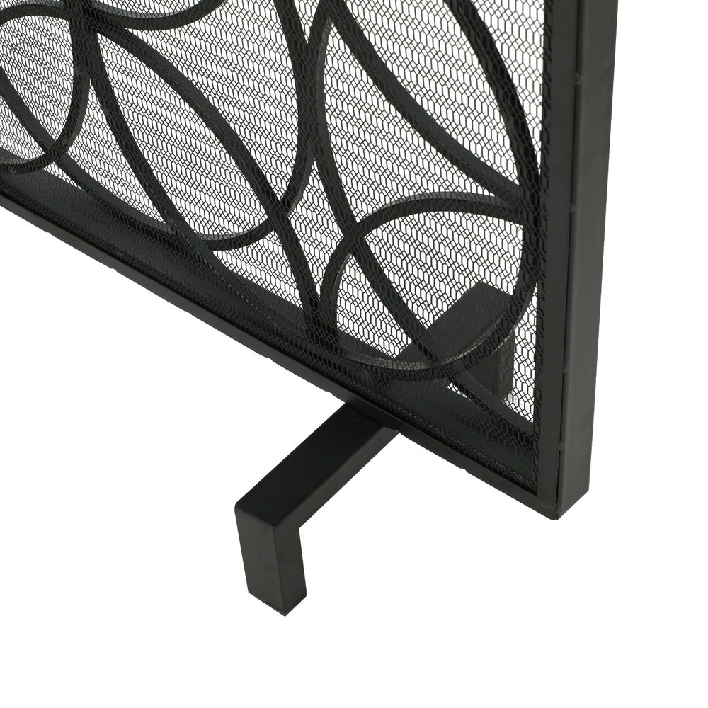 This fireplace screen is a great way to add a bit of flair to your fire place while still being able to enjoy the warmth of the fire. Not only is this screen a conversation piece for your home, but it also serves to protect your home from underlying embers from burning your home or injuring anyone. The screen helps protect you and your home while still being lovely to look at. Product Details Includes: One (1) Fire Screen Material: Iron Finish: Black Assembly Required Dimensions: 9.25"D x 41.10"W x 31.10"H