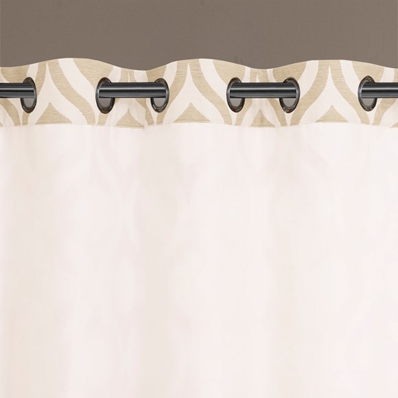 Verona Ogee Window Panels, Ivory, 95" Panels 1 Pair Available DESCRIPTION Update your room with a stylish and modern Ogee window panel. The rich ivory color adds a refreshing touch to the print, while the chenille jacquard fabric creates a beautiful texture. Microfiber lining offers room darkening features and energy saving abilities. Grommet top detail makes it easier to hang, open, and close panels throughout the day. Fits up to 1.25" diameter rod. PRODUCT DETAILS 95" Panel 1 Window Curtain 52x95" MATERIAL DETAILS 100% polyester chenille, Lining: 75gsm micro fiber. Grommet top with lining. CARE INSTRUCTION Machine wash cold, gentle cycle, and separately. Do not bleach. Tumble dry low, remove promptly. Do not iron. If there is no free movement in the washer or dryer, use large capacity commercial washer/dryer.