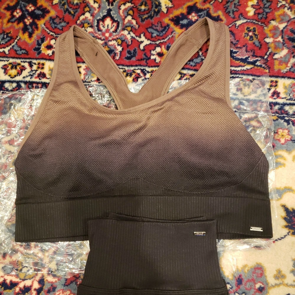 Brand New 2 piece set PINK SEAMLESS HIGH WAIST FULL LENGTH TEXTURED RIB tight Peppercorn Dip Dye Tie and SEAMLESS LIGHTLY-LINED GYM RACERBACK SPORTS BRA PEPPERCORN DIP DYE TIE Large(both) Both same colors PEPPERCORN DIP DYE and both size Large Brand New with tag. Please check the Sizes on the bottom of the page. Pant DESCRIPTION High waist with smoothing waistband Best butt design 4-way stretch breathable fabric Seamless textured rib and pique textures Phone pocket at back waistband Phone pocket fits up to an iPhone 11 Pro Max or Samsung Galaxy S10 26" inseam Imported polyamide/elastane Bra DESCRIPTION Lightly-lined, wireless Removable padding Seamless fabric Mesh strap detail Imported nylon/polyester/spandex 100 % Brand New Contact me for any extra information. I try to accurately describe all my items, however if you have a question don't hesitate to e-mail me to ask. Please check out my other Carters clothes, Victoria's Secret Bags, Clothes, Fragrances and more... Shipments are processed within 2 business day of cleared payment. (excluding holidays).Please make sure your address is correct. If you have a problem with your item, please contact us before leaving feedback. Thank you. Bra Size US ALPHA SIZES 36AA -- Not Applicable 36A M 36B M 36C L 36D L 36DD(E) M-DD 36DDD(F) -- Not Applicable Bra Sizing 38A to 38DDD US ALPHA SIZES 38AA -- Not Applicable 38A L 38B L 38C L 38D XL 38DD(E) L-DD 38DDD(F) -- Not Applicable Victoria's Secret Apparel Size Large 12 Chest 39” Waist 30.5” Hip 41” 14 Chest 40.5” Waist 32” Hip 42.5”