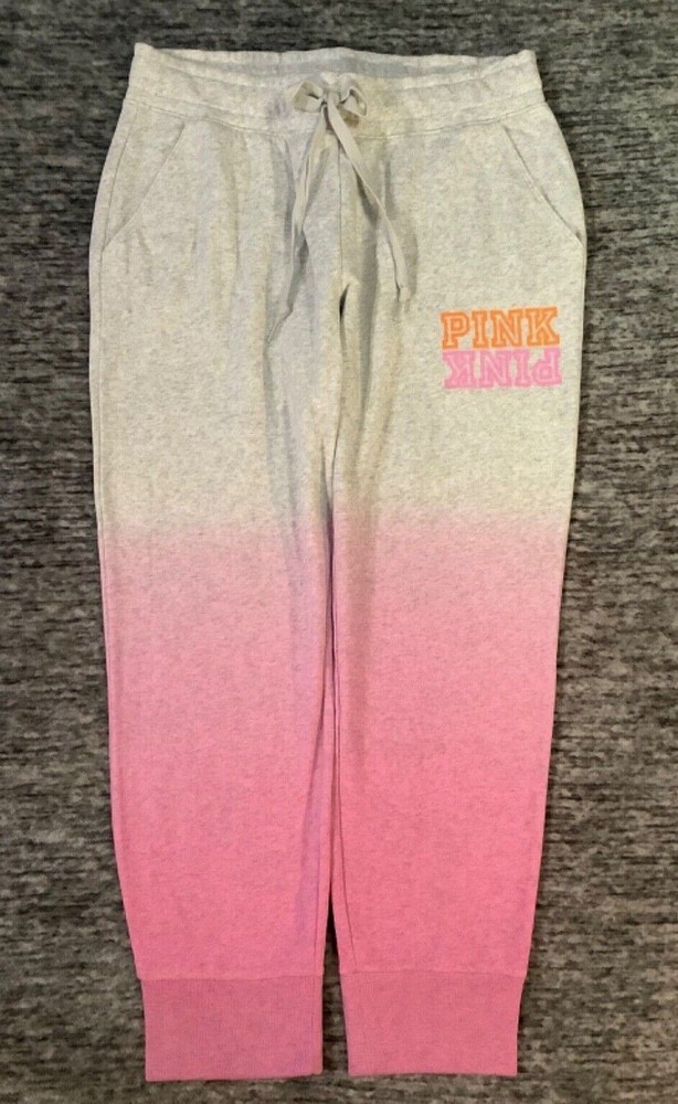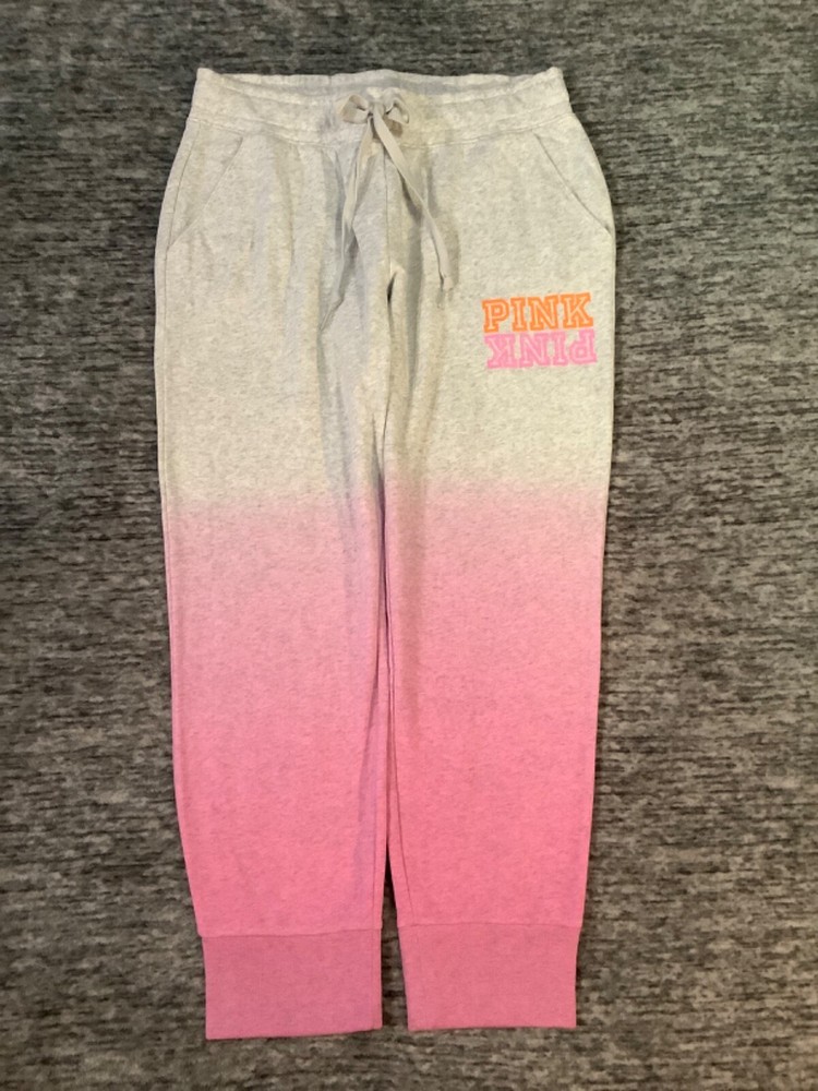 Victoria's Secret Pink Skinny Jogger Pants Color: "Heather Stone Gray" and "Bubblegum Pink" ombre dip dye with neon pink and orange PINK logo Color might look little different depending on your screen, computer operating system, etc . BRAND NEW WITH TAG RELAXED TAPERED SLIM FIT TAPERED FIT - roomier at the top and narrower towards the ankle Adjustable drawstring waist Front pockets Ribbed banded bottom Full length Approx. 28" inseam Super soft fleece Imported 60% cotton 40% polyester SEE MY OTHER AUCTIONS FOR COORDINATING PIECES AND MORE GREAT DEALS!!! β₯ If everything is wonderful as expected kindly leave positive feedback...it will automatically be left for you in return!! β₯ Payment is expected within 2 days after close of the auction. Thank you for looking!