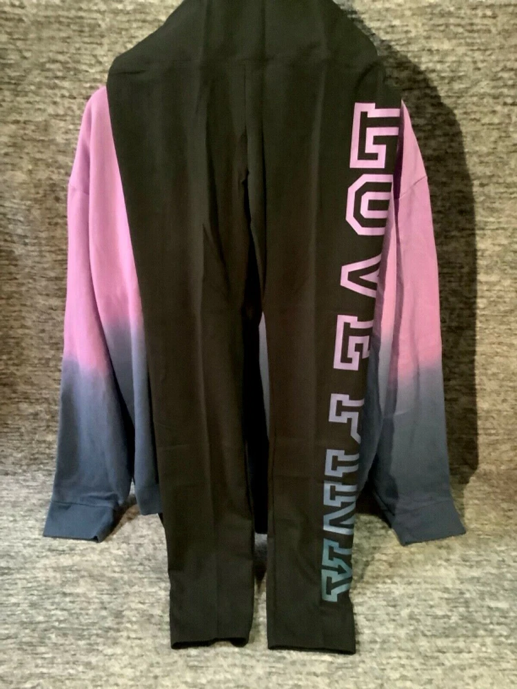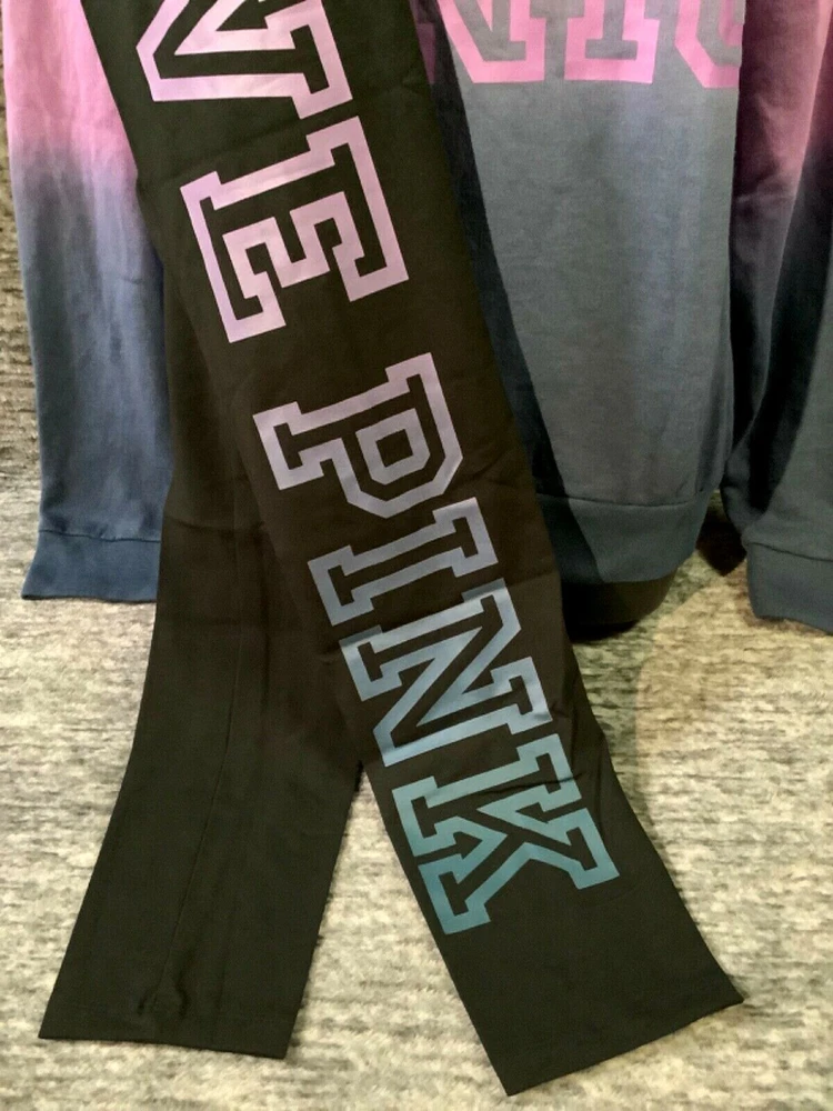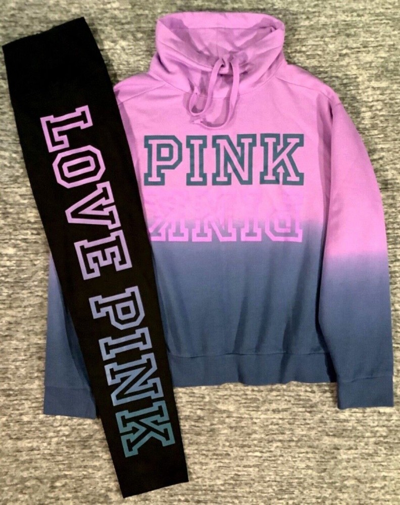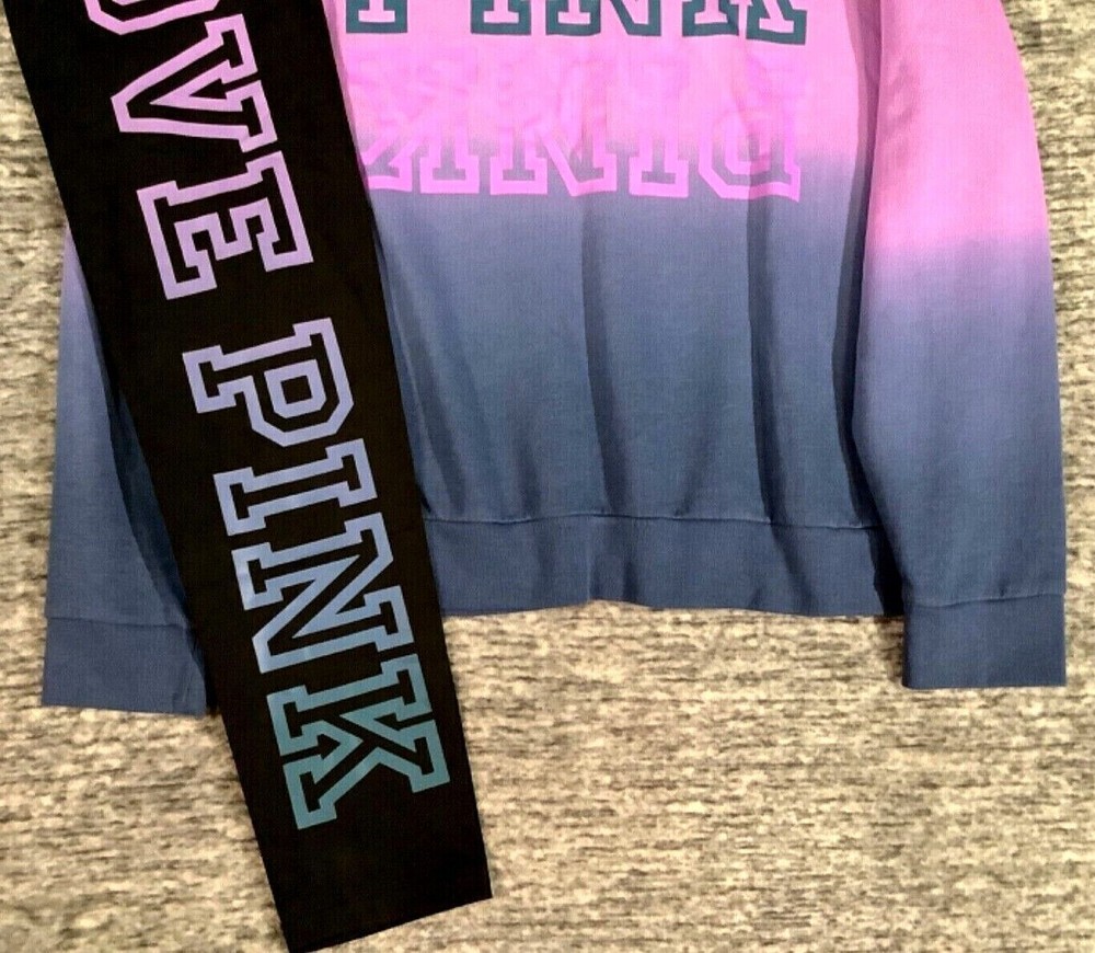 Victoria's Secret Pink Bling Cowl Neck Pullover and High Waist Leggings Set Color: "Amethyst Orchid and Blue Coral" with PINK logo Black with ombre dip dye "Amethyst Orchid and Blue Coral" LOVE PINK logo Color might look little different depending on your screen, computer operating system, etc. BRAND NEW WITH TAGS SET SIZE: LARGE PULLOVER and X-LARGE LEGGINGS PULLOVER: RELAXED OVERSIZED FIT Armpit to armpit approx. 27" Hips approx. 23" Shoulder to hem approx. 26" Cowl neck with adjustable drawstring Long sleeves Ribbed cuffs and hem Super soft fleece Imported 60% cotton 40% polyester LEGGINGS: RELAXED SLIM FIT High waist Large hidden pocket Full length Inseam approx. 28.5" Imported 87% cotton 13% elastane SEE MY OTHER AUCTIONS FOR COORDINATING PIECES AND MORE GREAT DEALS!!! I MAY HAVE *JUST WHAT YOU'VE BEEN LOOKING FOR* Please check out all the pictures and the measurements I have posted to make sure this is exactly what you're looking for!!! β₯ If everything is wonderful as expected kindly leave positive feedback...it will automatically be left for you in return!! β₯ Payment is expected within 2 days after close of the auction. Thank you for looking!