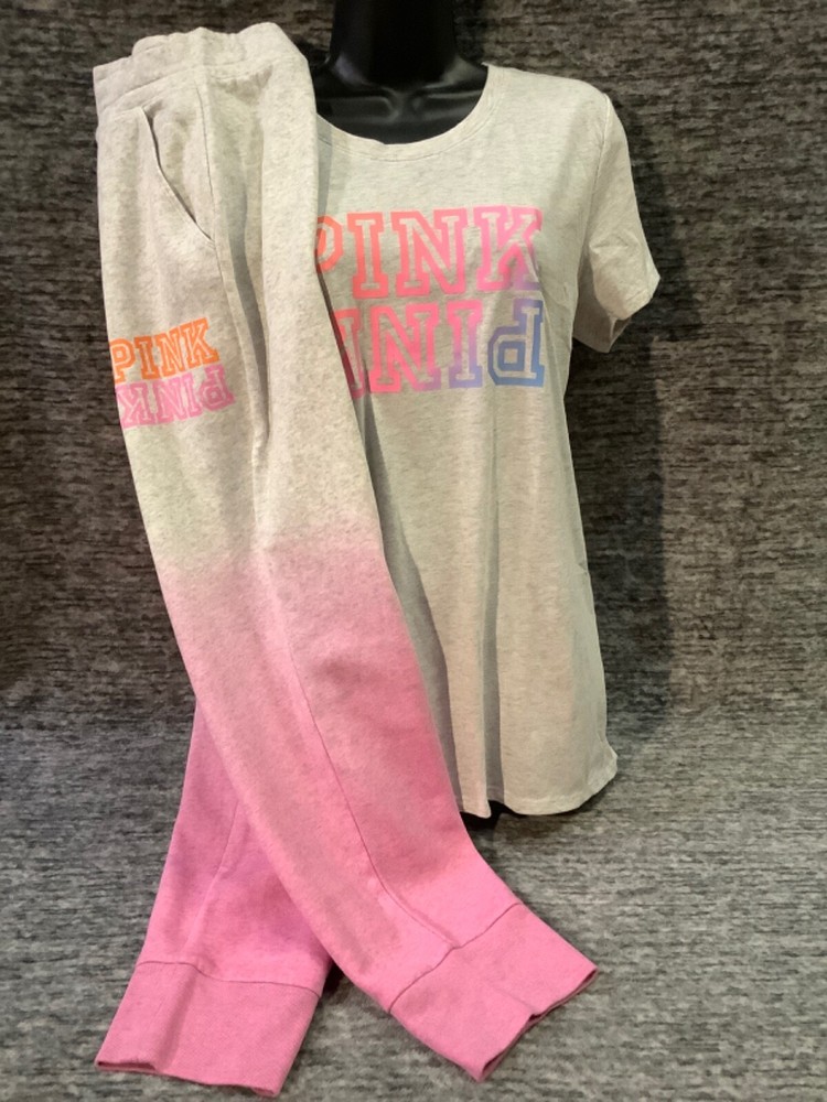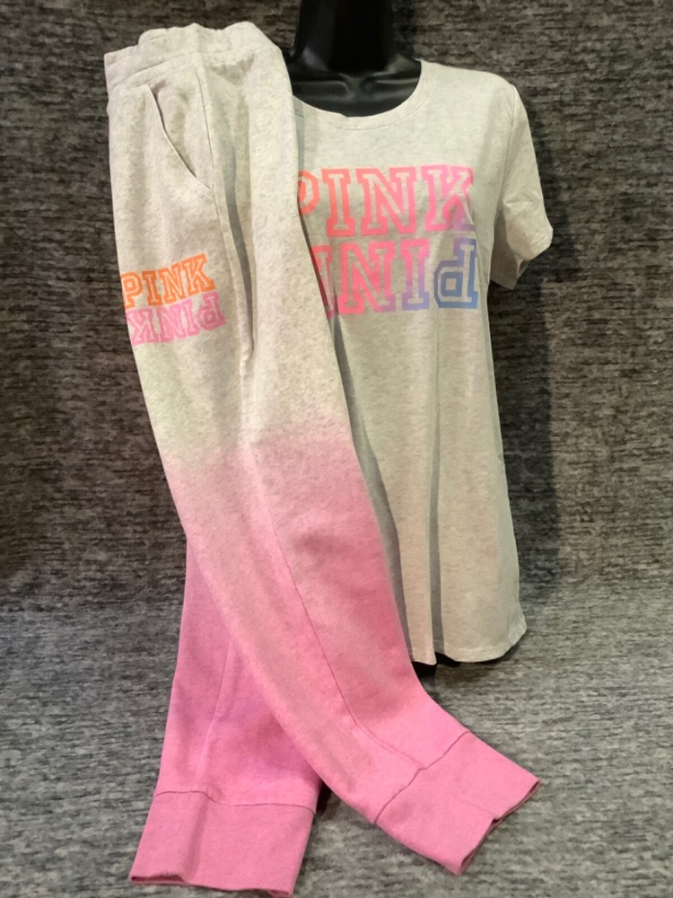 Victoria's Secret Pink Ombre Dip Dye Tee & Joggers Set Bubblegum L XL NWT