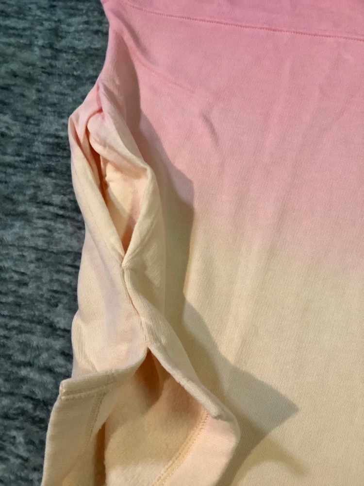 This cozy oversized pullover is so soft and stylish! The ombre dip dye in bubblegum pink and peach aura gives it a fun, unique look—perfect for lounging or adding a pop of color to casual outfits. The relaxed fit is comfy yet flattering, with a flattering tunic length and side slits. Feels high-quality, and the half-zip mock neck adds a chic touch. Definitely a must-have for those who love cozy vibes with a trendy twist!