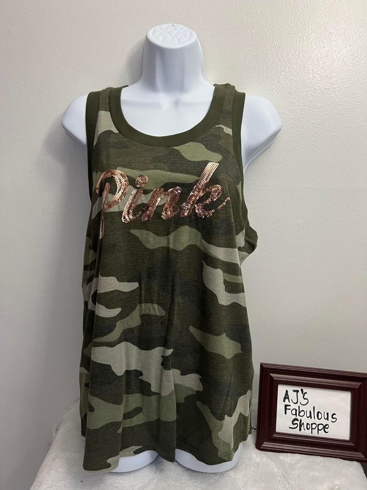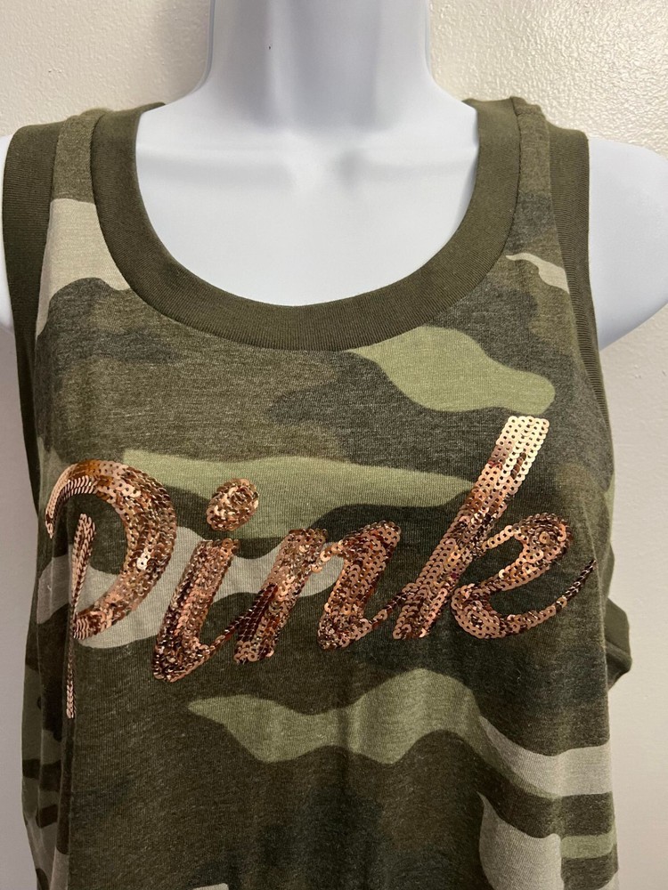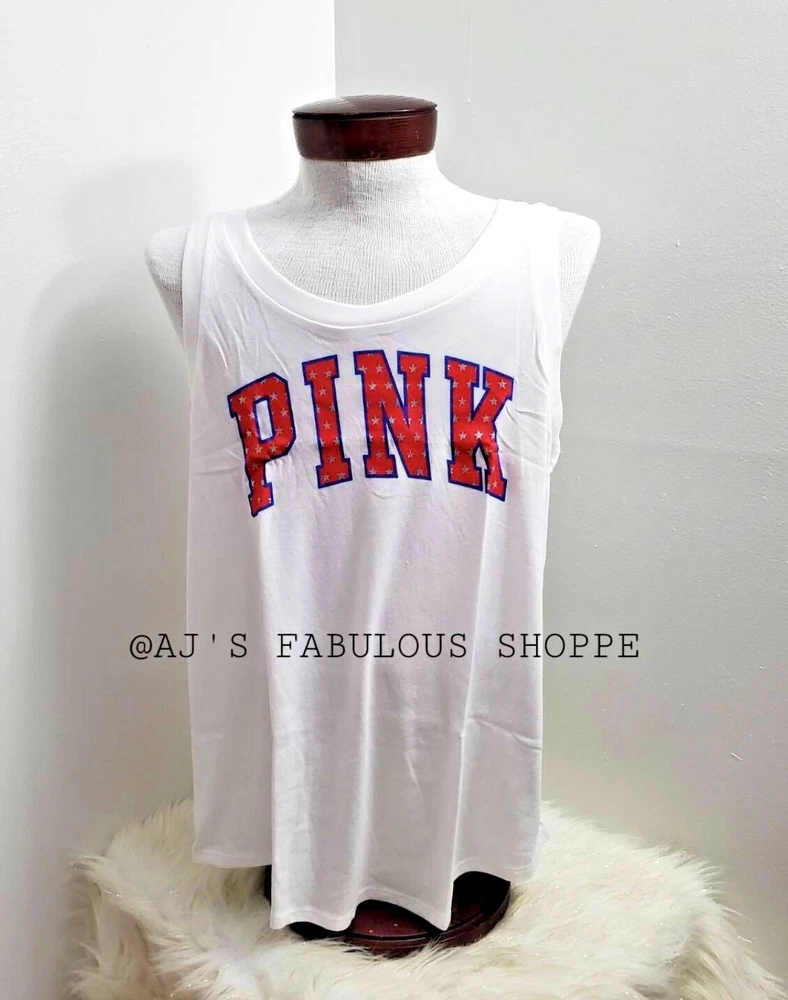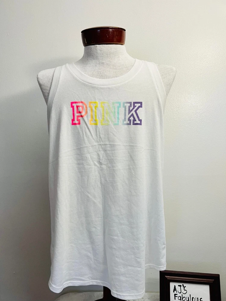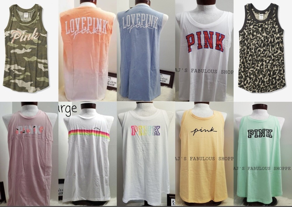 Victoria’s Secret Pink Tank Top New. All brand new never used or try. Some may come to you in their original package sealed only take out for pictorials. If any questions, please send us a message! Leopard Camou - New Sealed in Orig packaging. Only take out for pictorials. Bling Camou is oversized new with tag attached Chalk Rose & Pure white with Rainbow Stripe - is new sealed in original packaging only take out for pictorials. Relaxed fit. Jersey fabric Crew neckline .Twist back detail . Hits at hip .Imported cotton/polyester Mint Green, Yellow, Pure White with Rainbow Logo new with tag attached - Relaxed fit . Crew neckline. Slit back detail Hits below the waist .Imported cotton/polyester Pure White - Sealed in original packaging only take out for pictorials Slim fit. Crew Neckline. Imported Cotton/polyester. l Crew neckline ImporteLLd cotton/polyesteLeopard Camouj Note: This is brand