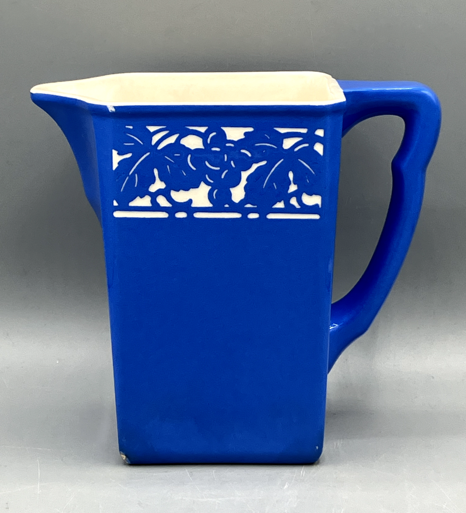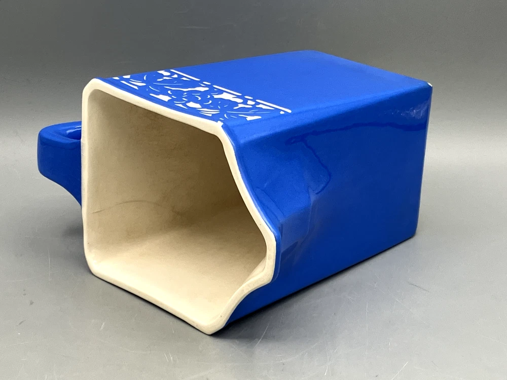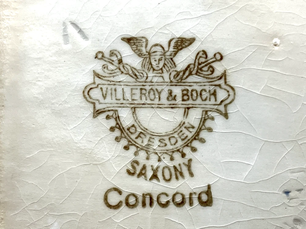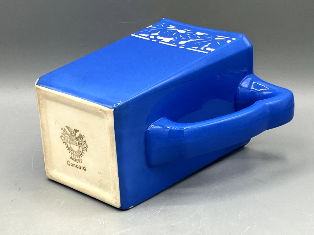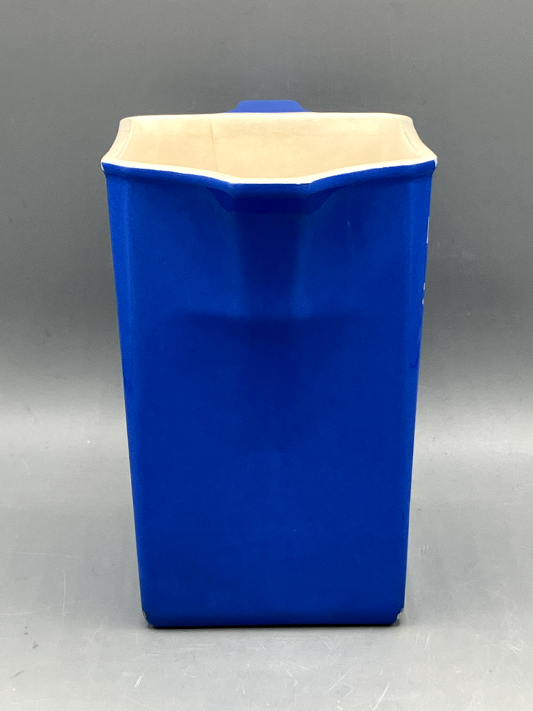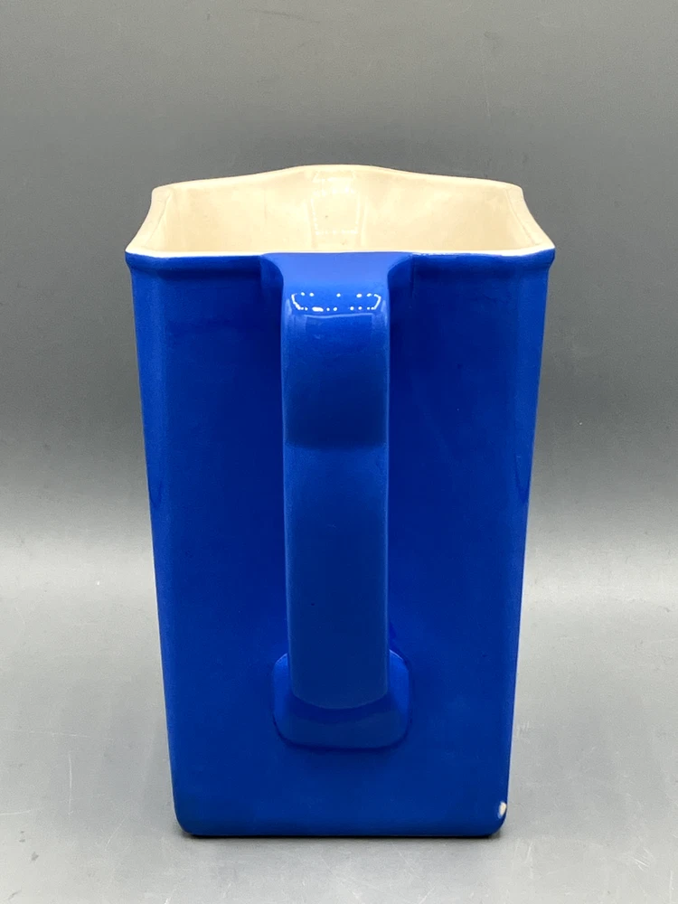Antique Villeroy & Boch Dresden Saxony Pitcher Concord Pattern Blue Square. Mark on the bottom was dated between 1874 to 1909. In fine condition with 2 small chips and crack interior only, see pics. 6499 6" tall 6 1/2" handle to spout 1 lb 7 oz weight