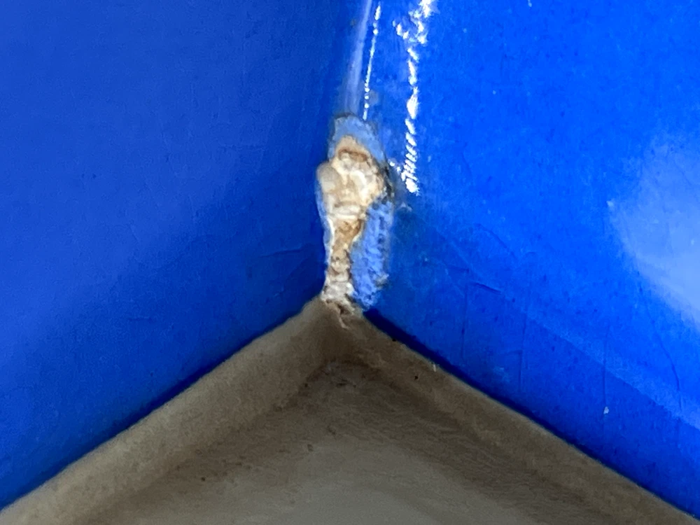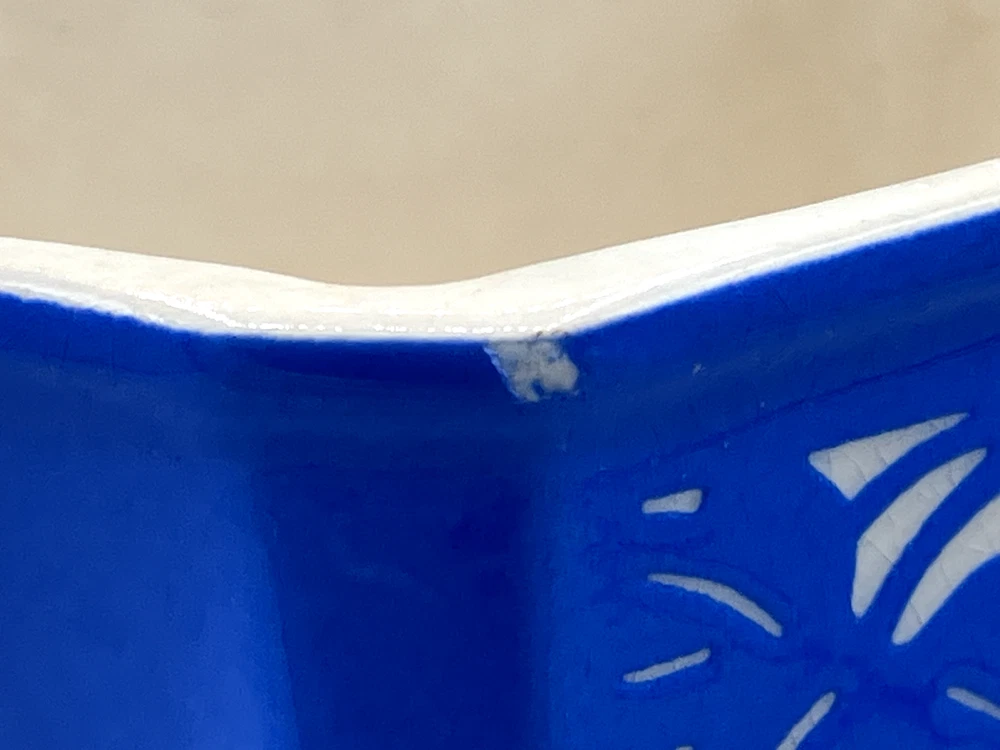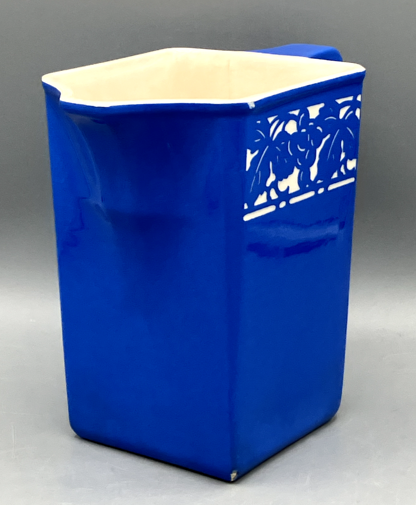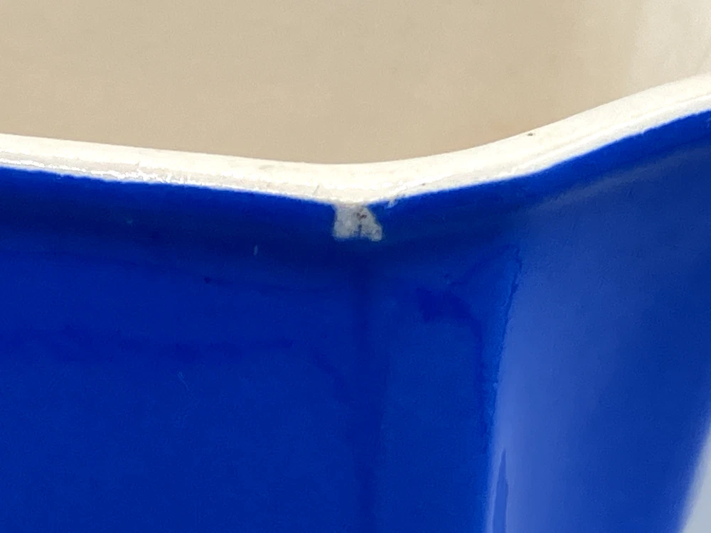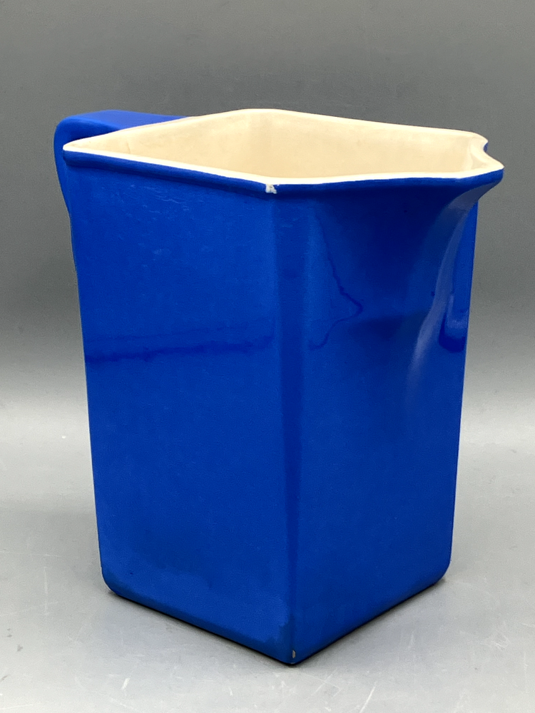 Antique Villeroy & Boch Dresden Saxony Pitcher Concord Pattern Blue Square. Mark on the bottom was dated between 1874 to 1909. In fine condition with 2 small chips and crack interior only, see pics. 6499 6" tall 6 1/2" handle to spout 1 lb 7 oz weight