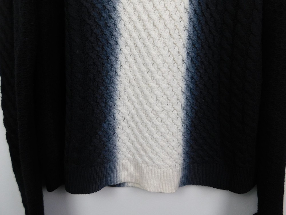 Vince black dip dye hombre cable knit wool sweater Size large Laying flat Underarm to Underarm 21 Top shoulder to bottom down front 22 Free returns; no questions asked Please reach out with any questi...