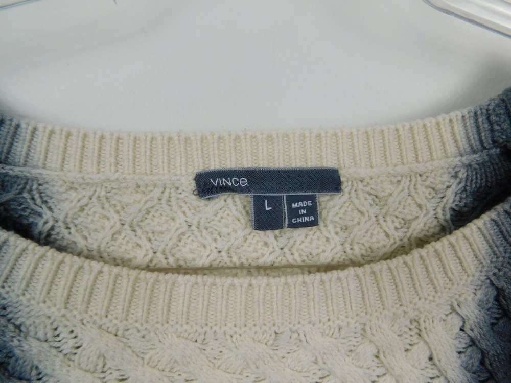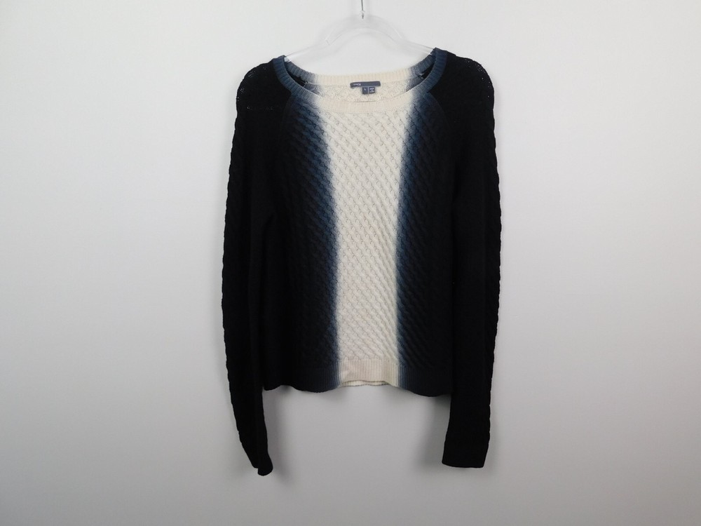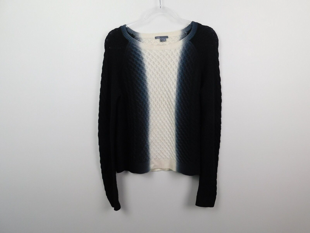 Vince black dip dye hombre cable knit wool sweater Size large Laying flat Underarm to Underarm 21 Top shoulder to bottom down front 22 Free returns; no questions asked Please reach out with any questions New items added EVERY day
