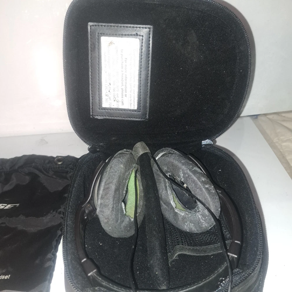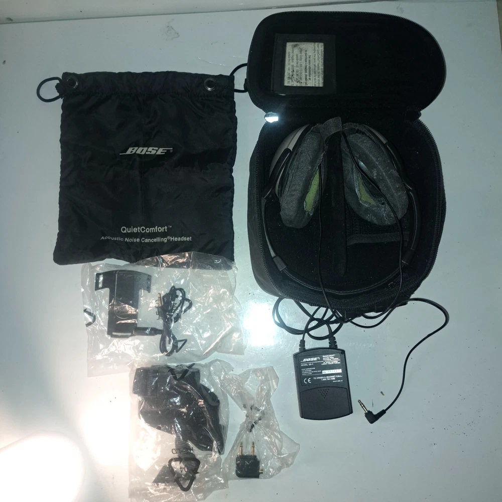 These Bose headphones need replacement ear cushions for the cups , They are not connected to the cups at all . The speakers still sound excellent and the noise cancelling works perfectly. Experience high-quality sound with these Bose Quiet Comfort -1 noise-canceling headphones. Designed with an adjustable headband and over-the-ear form factor, these headphones provide comfortable and secure fit for all-day use. Enjoy your favorite music or take calls with the built-in microphone and volume control features. These headphones are perfect for studio monitoring, live monitoring, and even for use as a DJ. Connect your headphones to your device with the 3.5mm jack and experience the excellent sound quality. With active noise cancellation, extra bass, and noise isolation features, these headphones provide an immersive audio experience. The L-shape plug and built-in on/off switch add to the convenience of these headphones. These headphones are a great addition to your audio accessories collection.