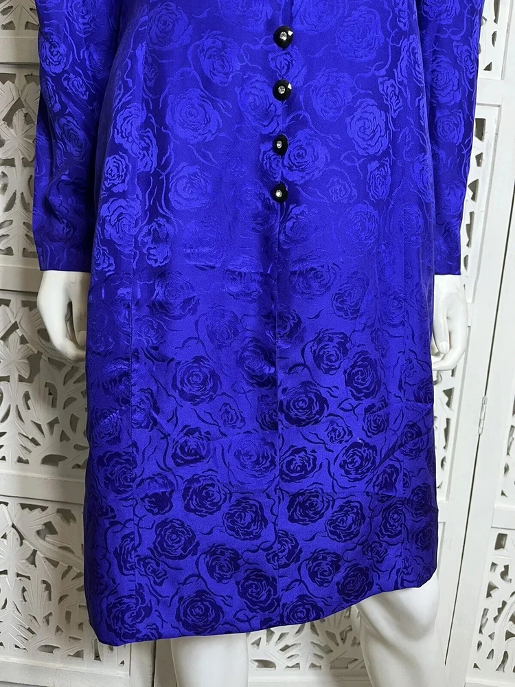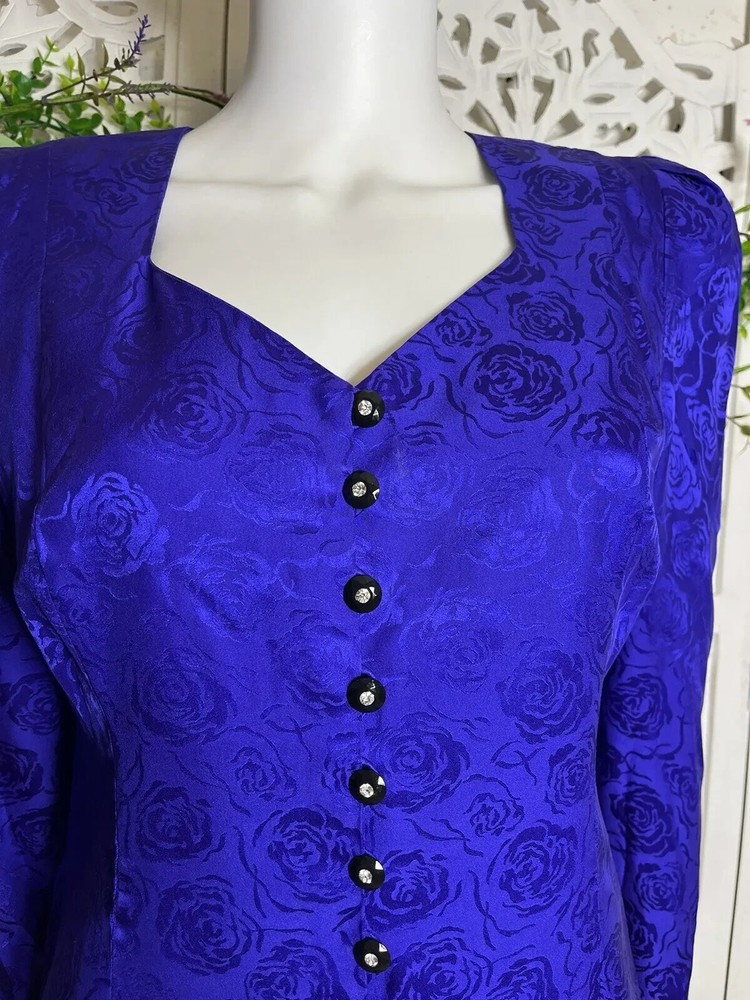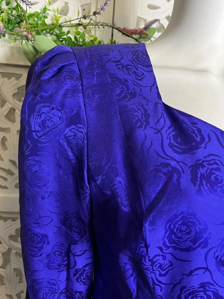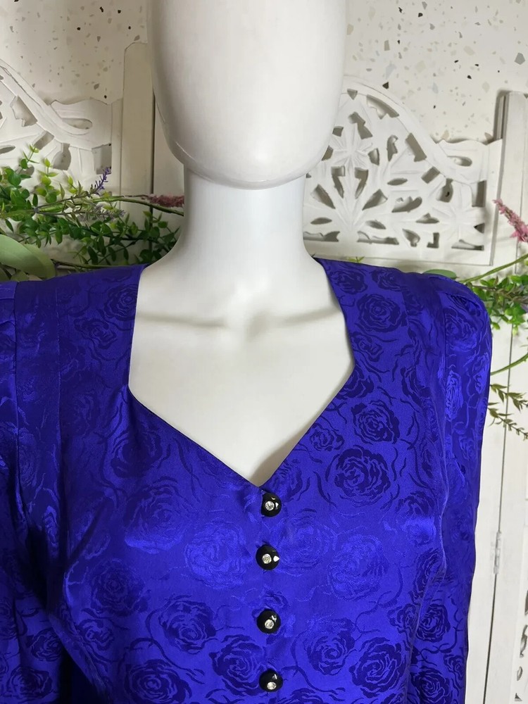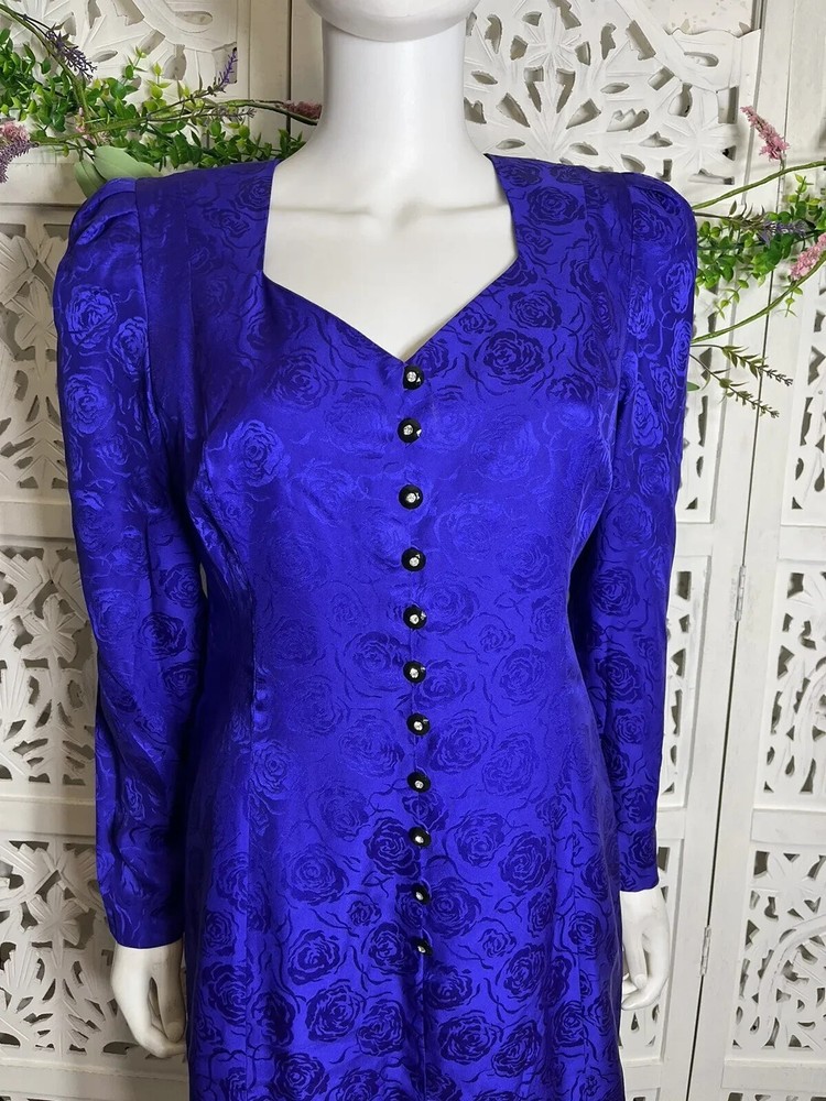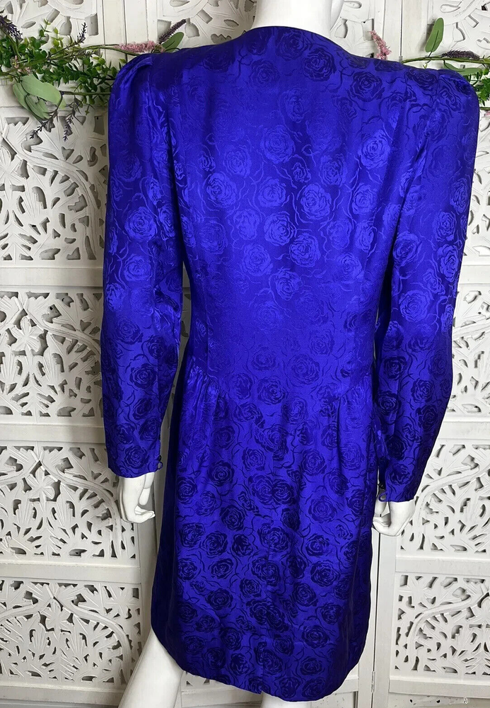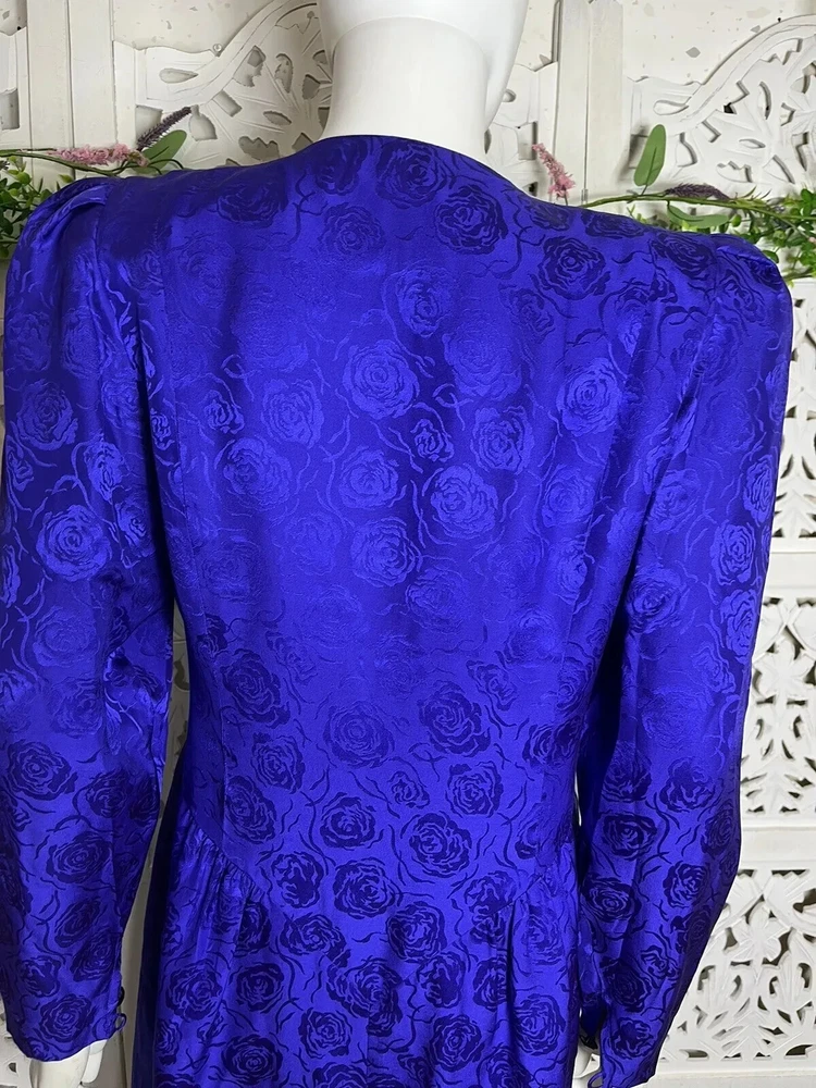Vintage 100% Silk Studio Petites Women’s Purple Floral Dress Size 12. Great Pre-loved condition. Approximate measurements laying flat shoulder 14.5 pit to pit 19.5 waist 16.5 hips 20.5 length 37.5