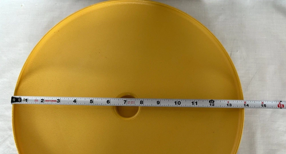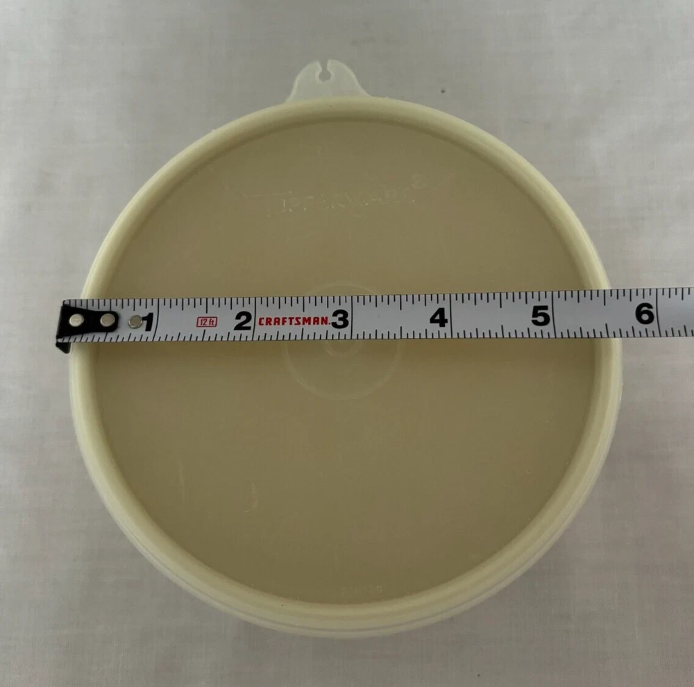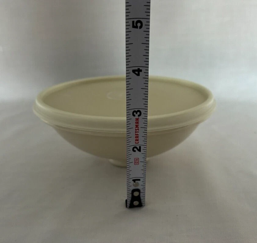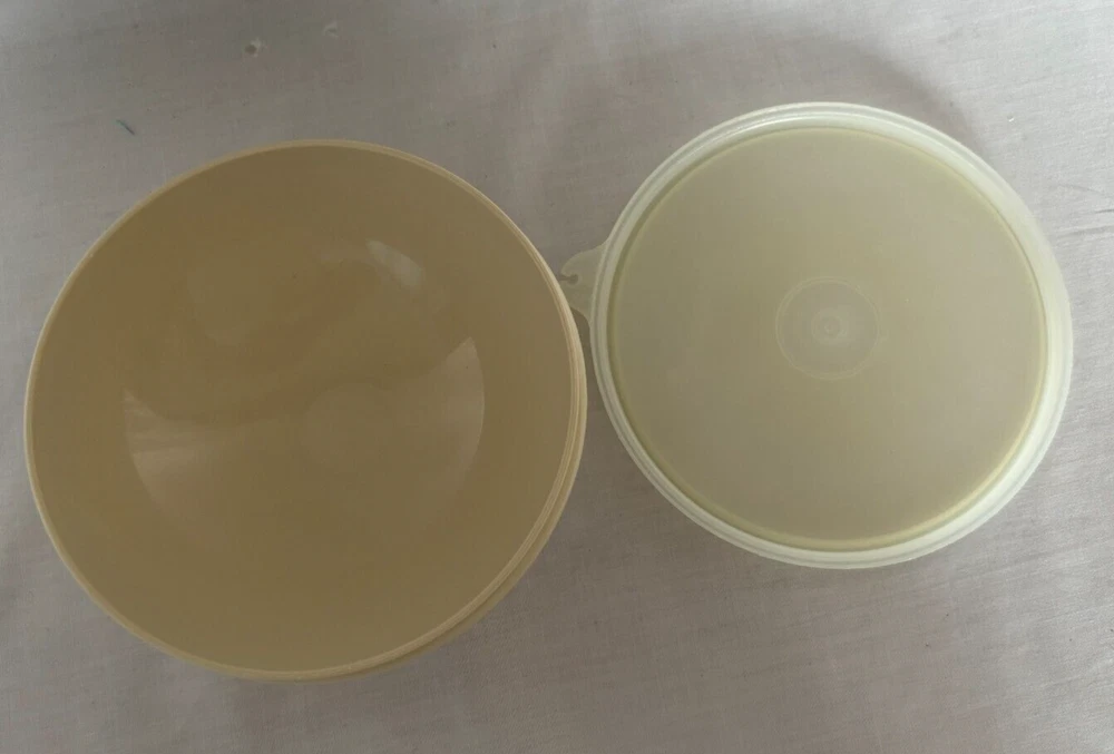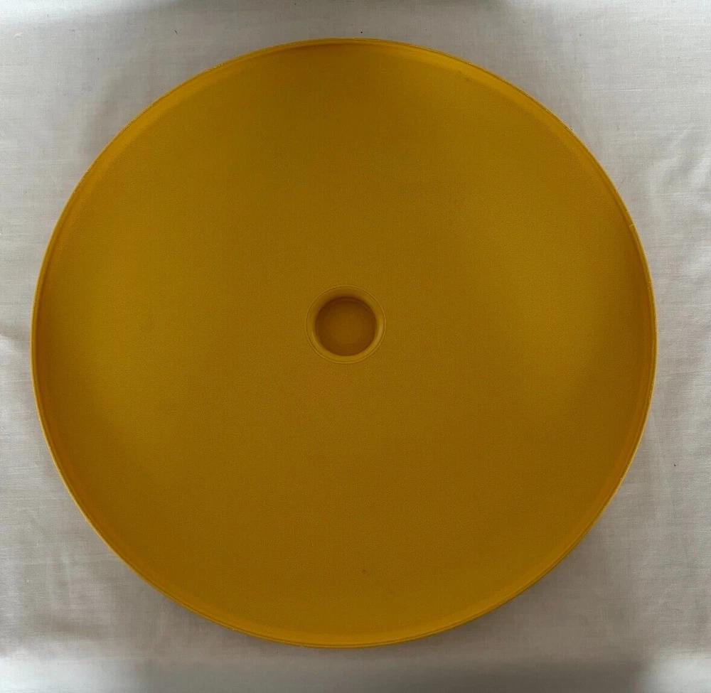 Vintage Tupperware 14-inch diameter tray with center lidded detachable bowl. Like New, no signs of use or wear. No scratches on either tray or bowl. Bowl is shiny, glossy with a tight fitting lid. Useful for chips and dip, relishes, veggies, pastries, cookies, candy etc. A very utilitarian tray in vintage harvest gold color. The bowl is white. See photos for item detail, condition, and measurements. Smoke free, pet free home. Ships U.S. Mail, Ground Advantage. U.S. Only