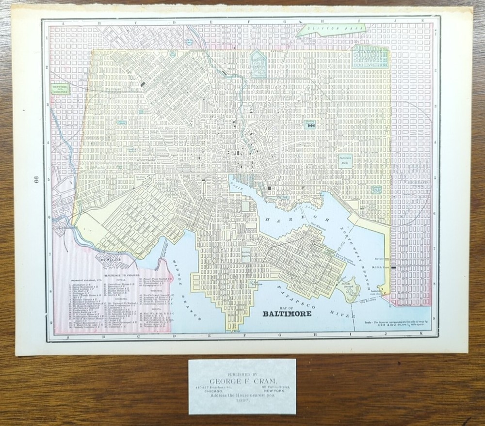 "An Authentic Original Map Not A Reproduction" Offered for your consideration is a beautiful antique original map of Baltimore Maryland. This vintage 14 1/2" x 11 1/2" map is in VERY GOOD condition with light tone, soil and edge wear, from a disbound George F. Cram atlas published 1897. FREE: Acid-free date card (a modern lithographic copy) included with your map. FREE SHIPPING: Maps are shipped in sturdy waterproof tubes with USPS tracking. Please view our happy customer feedback and buy with complete confidence. Please view the other 1000+ maps for sale in our eBay store. We sell antique originals only, no reproductions. Thank you