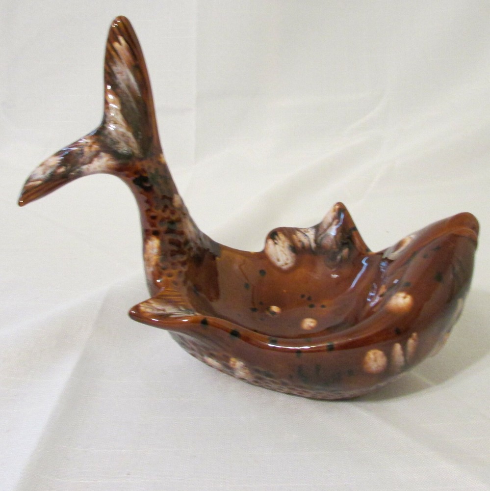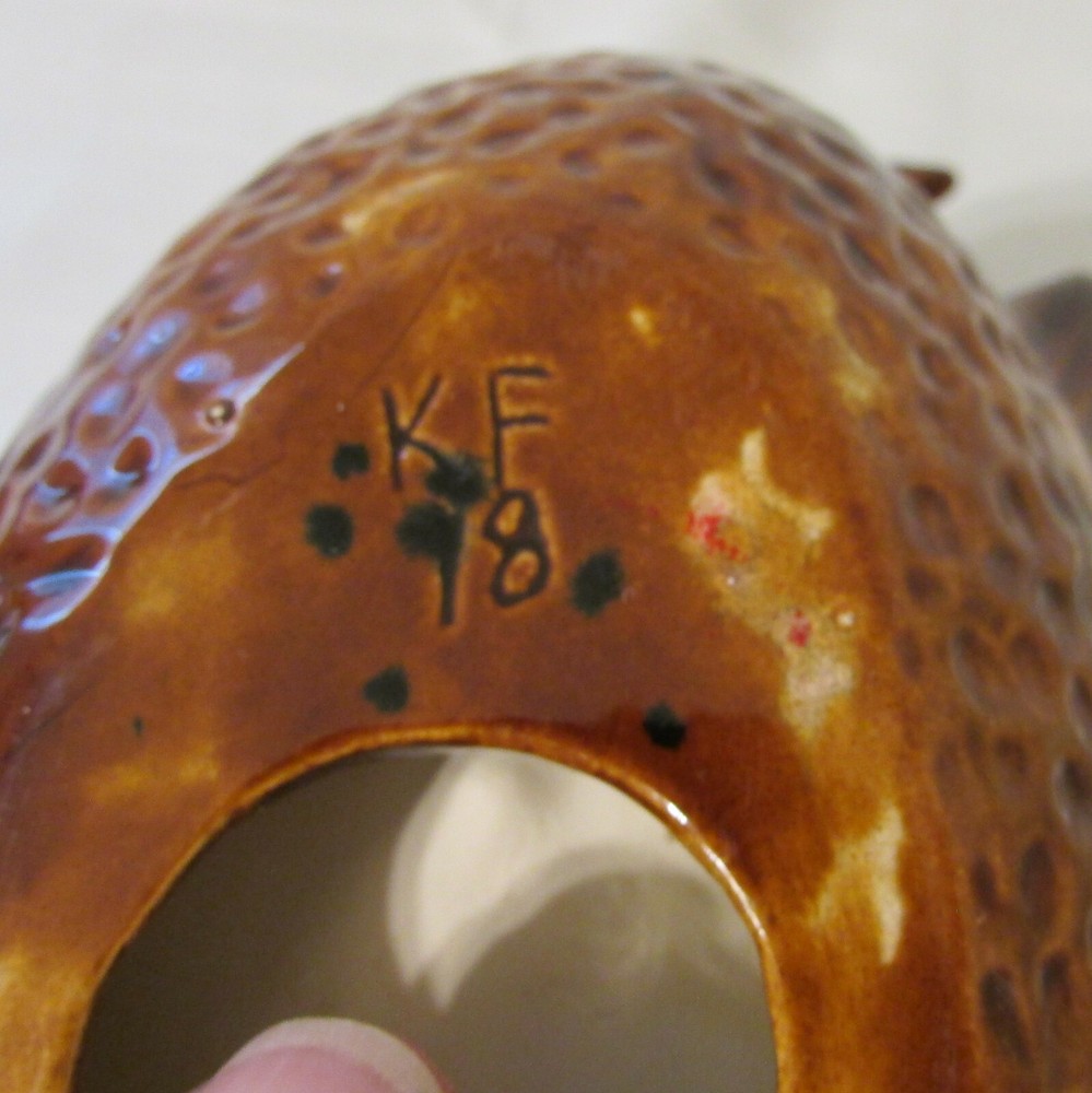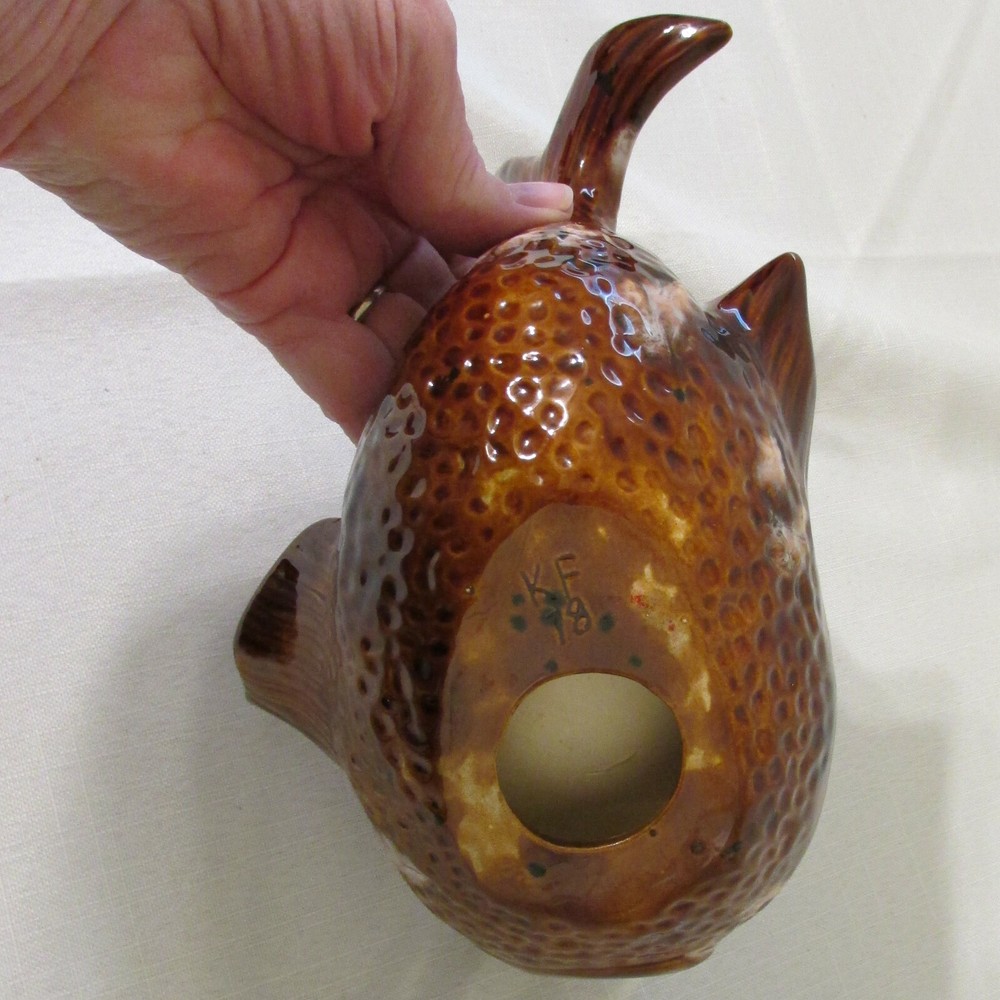 Vintage 1978 Art Studio Handmade Pottery Fish Shaped Bowl Dish Signed KF. This is a charming and very well made bowl. It is signed and dated by the artist KF 78, but I haven’t been able to identify the artist. It measures 9” x 5-1/2” x 7-1/2” tall and is in excellent condition with one surface scratch. Ordering Information Payment Payment is due within 4 days by PayPal. After 4 days, eBay automatically initiates a case to resolve. If there is a problem, please let me know as soon as possible. Shipping I ship packages within one working day which I define as the following open Post Office day (Mon – Fri) after receiving your PayPal payment. Problems/Returns I accept returns within 30 days after receiving your item, as verified by the date of the delivery confirmation. I thoroughly describe my items and take lots of pictures, so please look closely at the listing to be sure of what you are buying. If you have any questions or problems after receiving your item, please contact me. I want you to be happy. Feedback I leave feedback when your transaction is complete. If you are considering leaving a neutral or negative please contact me and let me know - I strive for 5 star feedback from my customers, and would appreciate a chance to fix any problems you have experienced. I respond quickly to your comments. Thank you for looking!