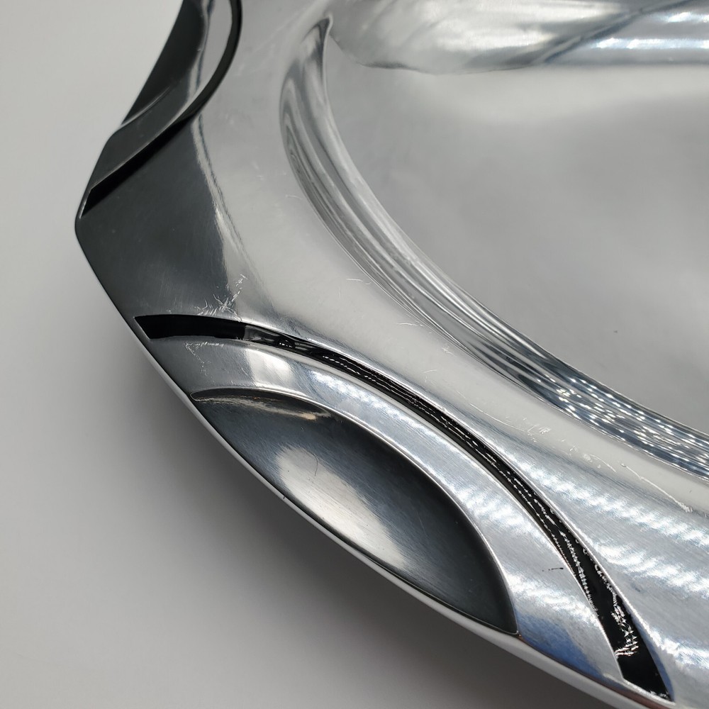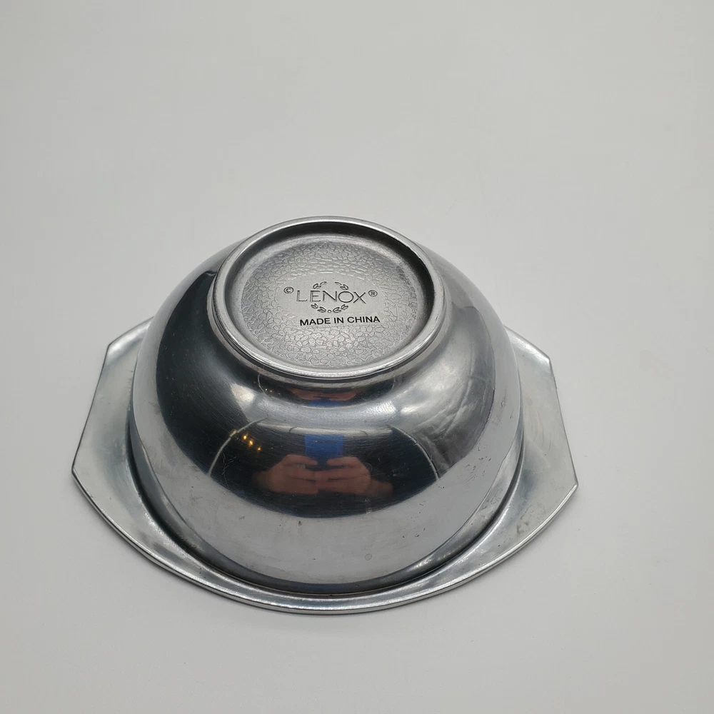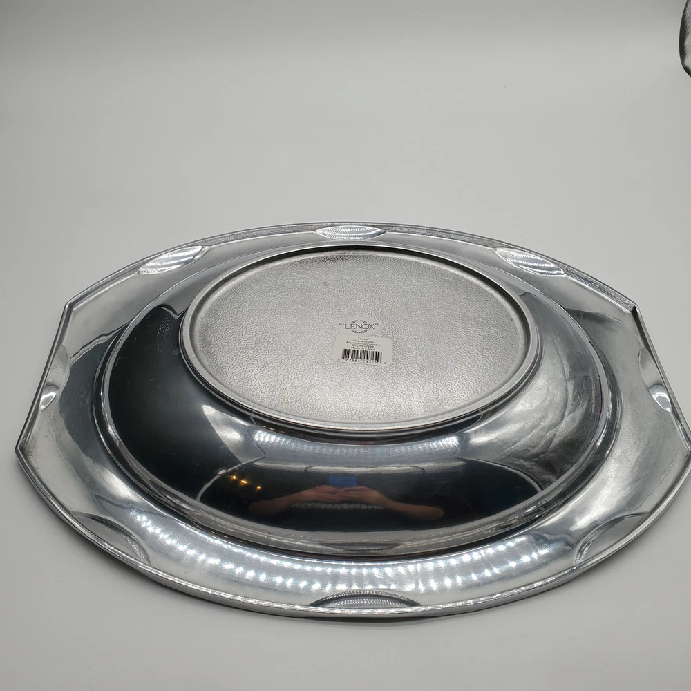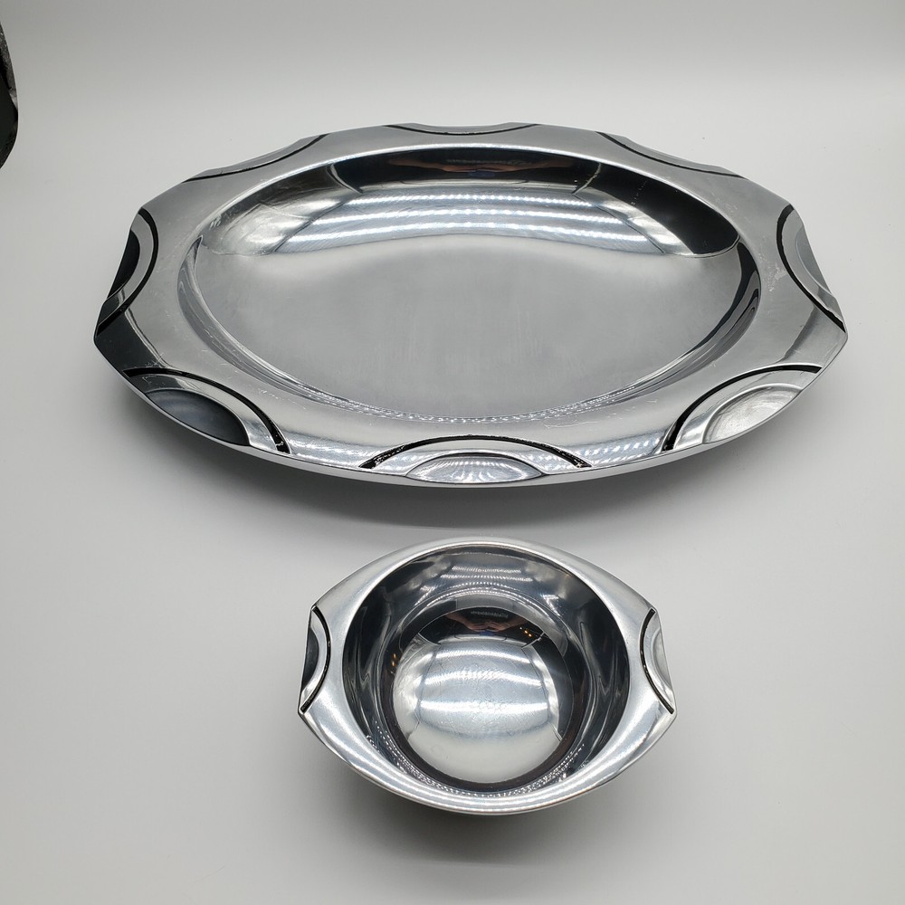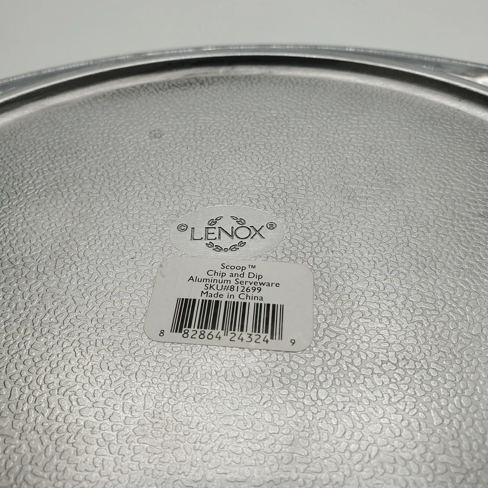 Vintage 1980's Lenox Silver and Black Cast Aluminum Chip and Dip Tray Measures 17.5" x 13.5" and the bowl is 6" round by 2.25" tall....