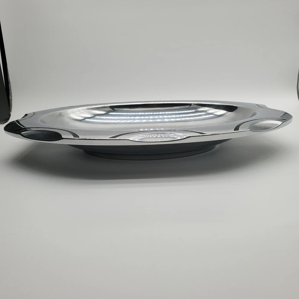 Vintage 1980's Lenox Silver and Black Cast Aluminum Chip and Dip Tray Measures 17.5" x 13.5" and the bowl is 6" round by 2.25" tall.
