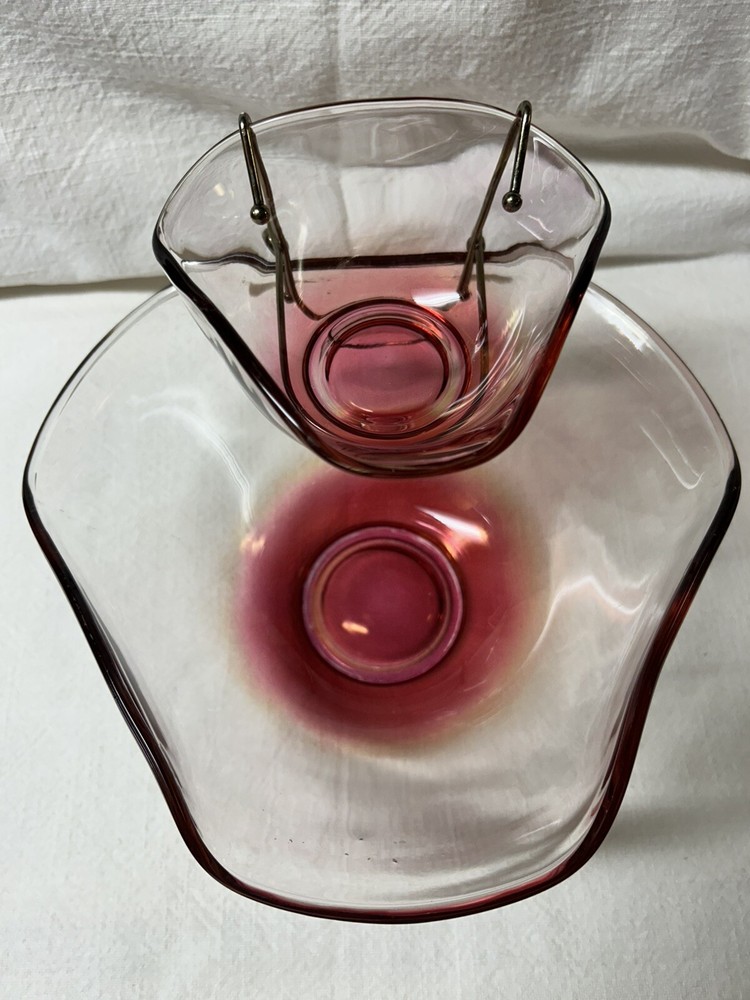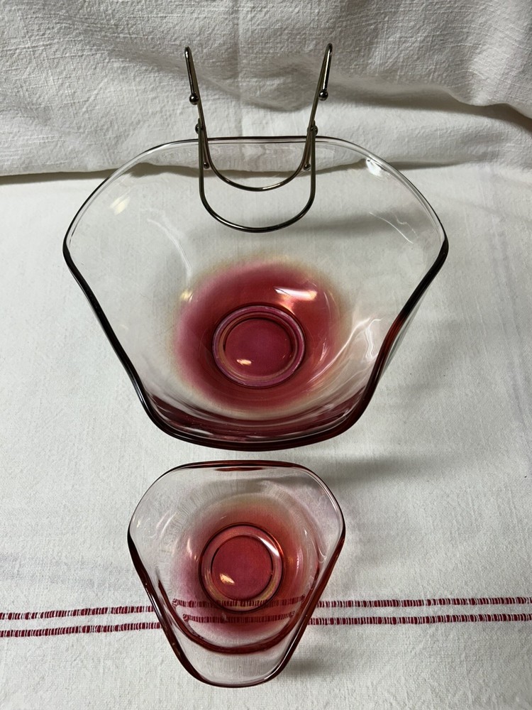 Vintage 3-pc Chip & Dip Large Bowl 5-1/2” Small Bowl 2-1/2” In Excellent Condition...