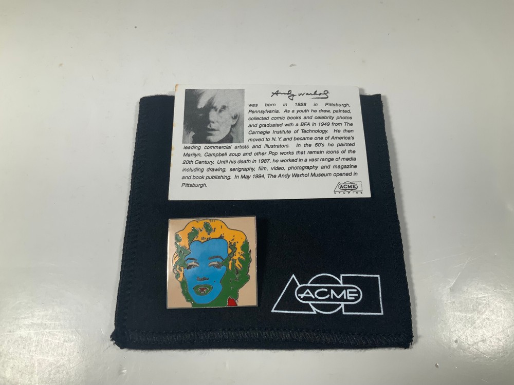 Vintage ACME Studio “Marilyn Green” Cloisonné Brooch by ANDY WARHOL NEW Rare Vintage brooch which is part of a collection of jewelry by Andy Warhol. Made in the 1990s licensed by The ANDY WARHOL Foundation for the Visual Arts. Never been worn, in excellent condition, but the back shows its age. Comes in an original black ACME flannel pouch. About ACME Studio Started in 1985, ACME Studio is an international product design company, producing and marketing writing instruments, and other design objects. Its products are the result of cooperation with the world’s leading architects, designers, artists, foundations, estates and institutions. ACME Studio has a habit of producing limited editions and/or discontinuing products and destroying the molds – this causes items to become very unique and collectible. Check out our eBay storefront for more ACME Studio products! https://www.ebay.com/str/designmafiastore WE COMBINE SHIPPING! Upon payment we will pack a multiple item order to determine actual shipping cost so that we can then 'rebate' the appropriate combined shipping amount from the purchase payment in reasonable time. Any requests from buyer requiring any special packing and/or boxing, product packaging, or anything relating to combined shipping may incur an additional handling fee. Buyer will be notified in advance.